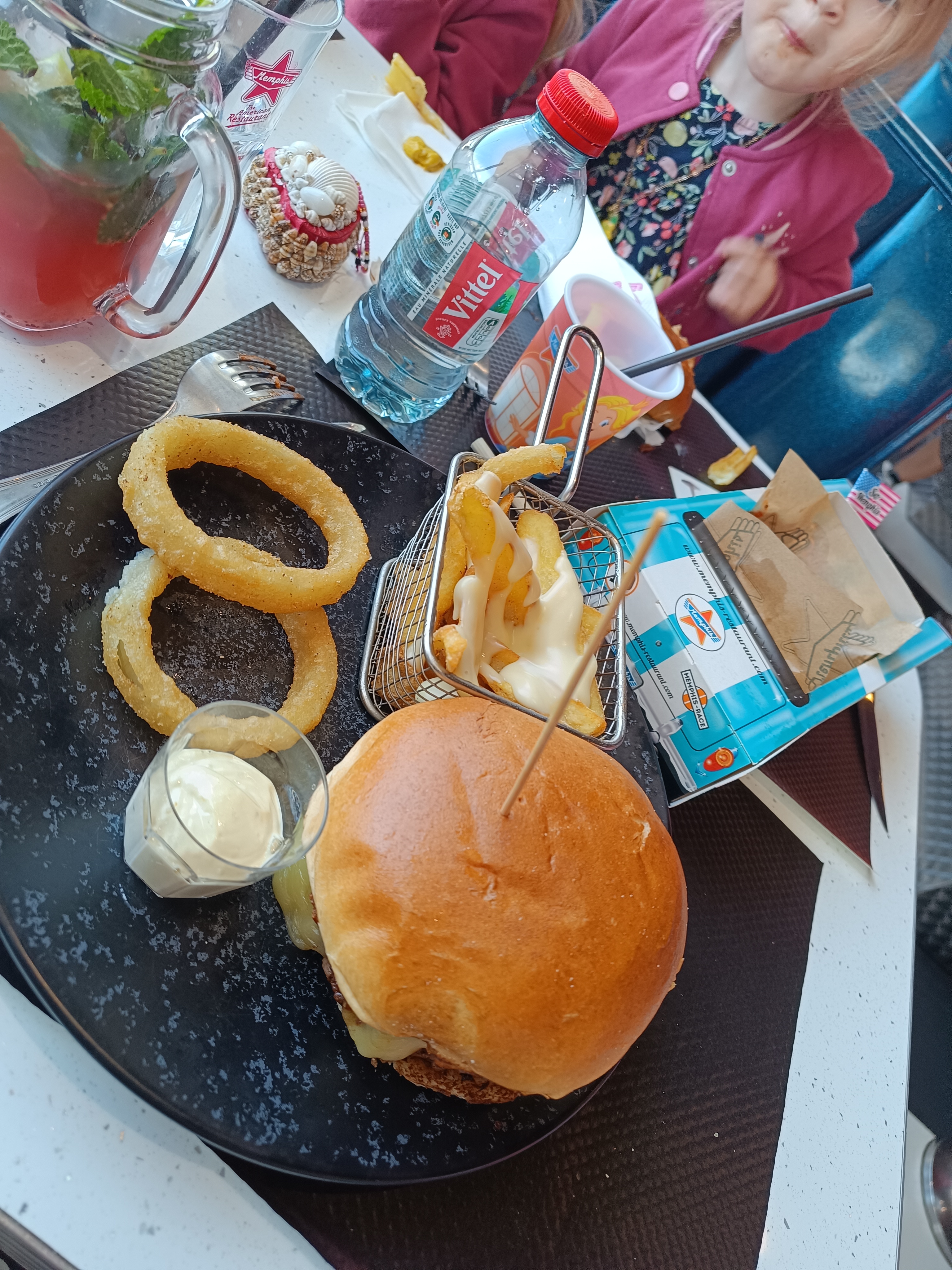 Nous avons passé un excellent moment, très bon déjeuner, les burgers, frites et beignets aux oignons sont très bons, tout comme les spécialités au poulet et les sundaes du dessert. C'est copieux. Ils prennent la peine de se renseigner pour les allergies des clients, c'est cool. Le cadre est très joli et flashy, l'ambiance est excellente, la musique aussi, on se croirait aux USA, ça donne envie de passer commande avec l'accent américain. Baptiste et son équipe sont aux petits soins pour leurs clients. Attention peut-être au café qui semble assez corsé (si j'en crois la réaction de ma maman au moment de goûter 😆). Nous reviendrons avec plaisir.