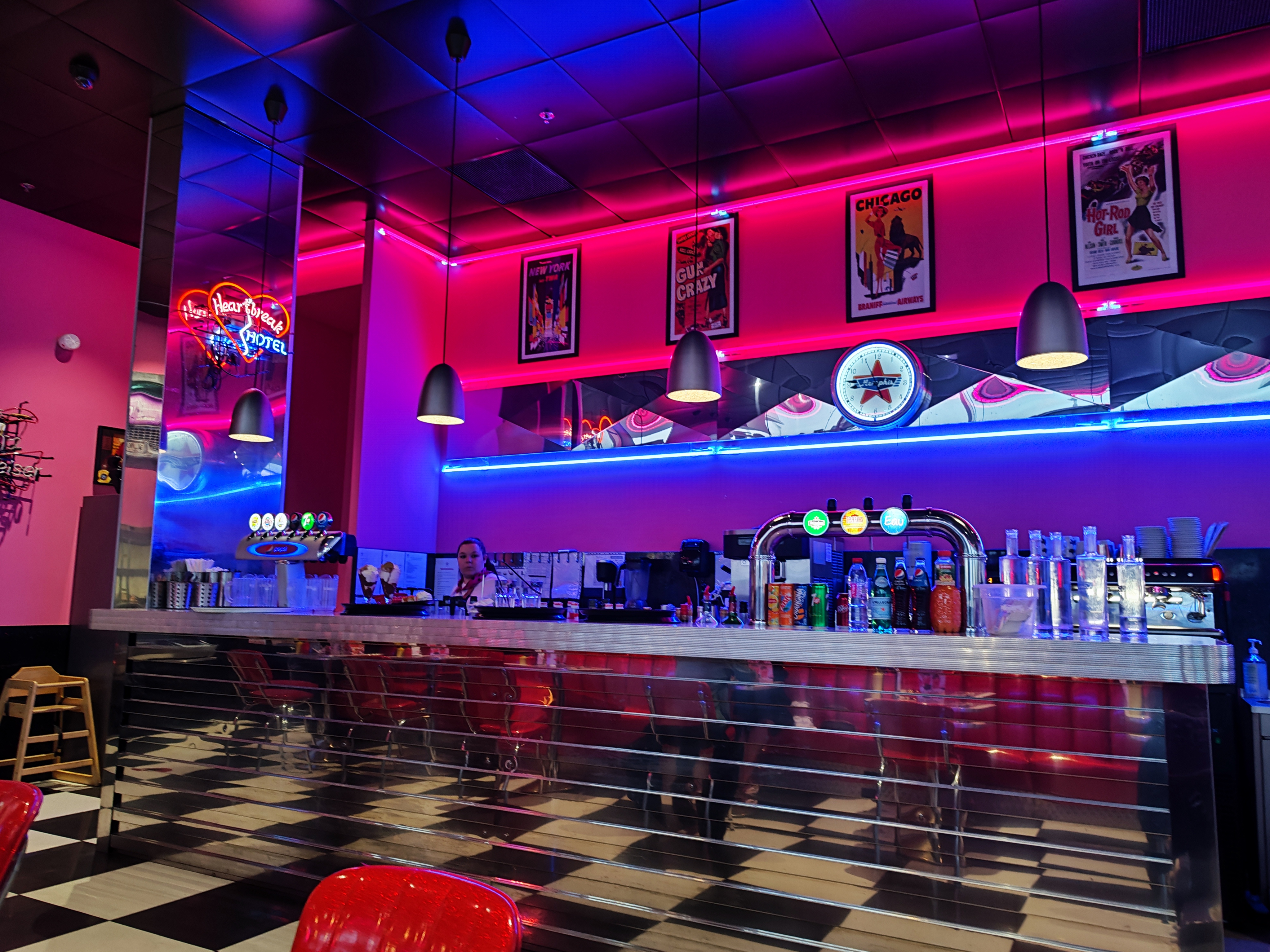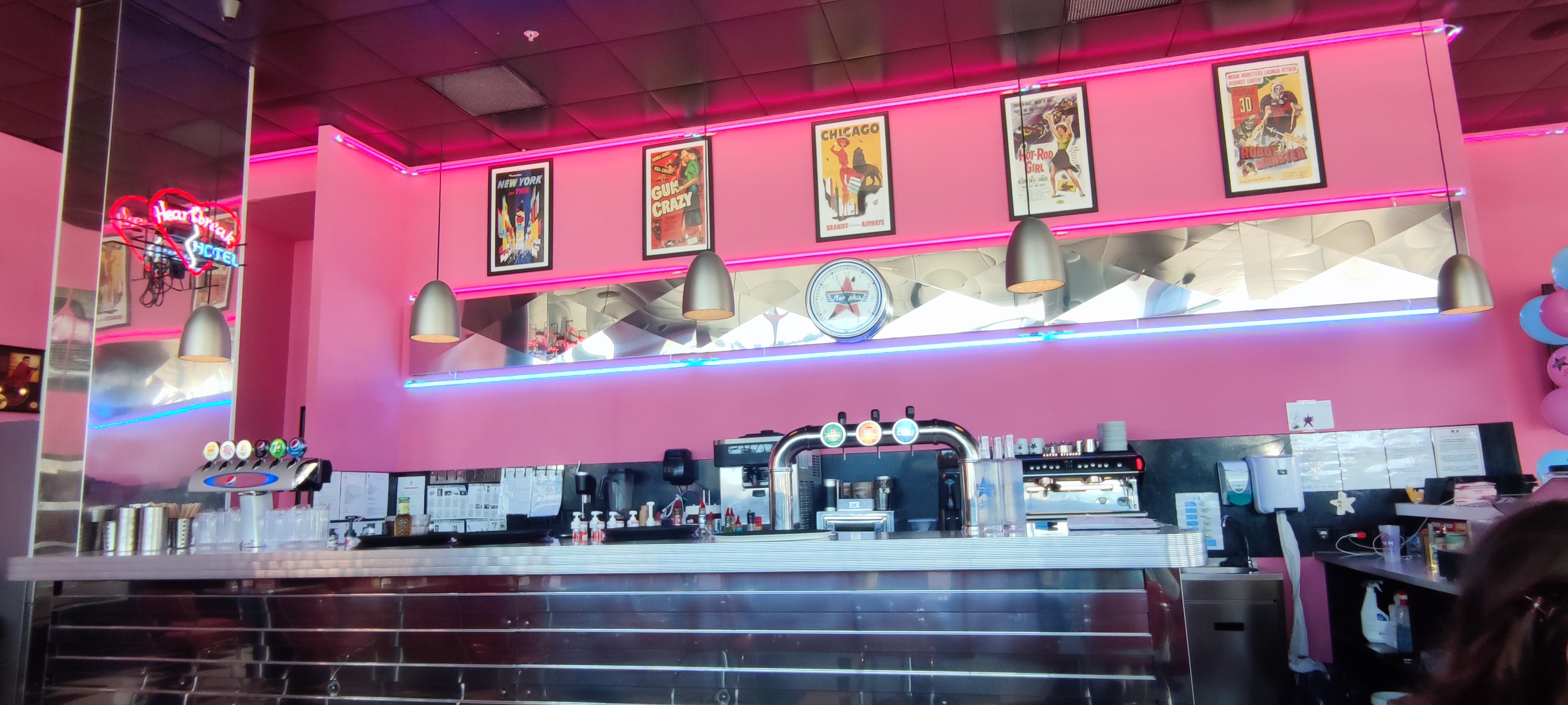 Le lieu est très sympa, nous sommes dans l'Amérique des années 50 que nous avons tant vu dans nos séries et films. Baptiste, le directeur est un personnage atypique qui cadre complètement avec ce dîner. Il est bienveillant avec ses employés et crée une ambiance décontractée. Sa présence, sa manière d'aborder le client reste d'ailleurs la meilleure expérience avec la déco ! La nourriture est comme on l'attend, ni tellement bonne ni mauvaise. Un dîner américain !