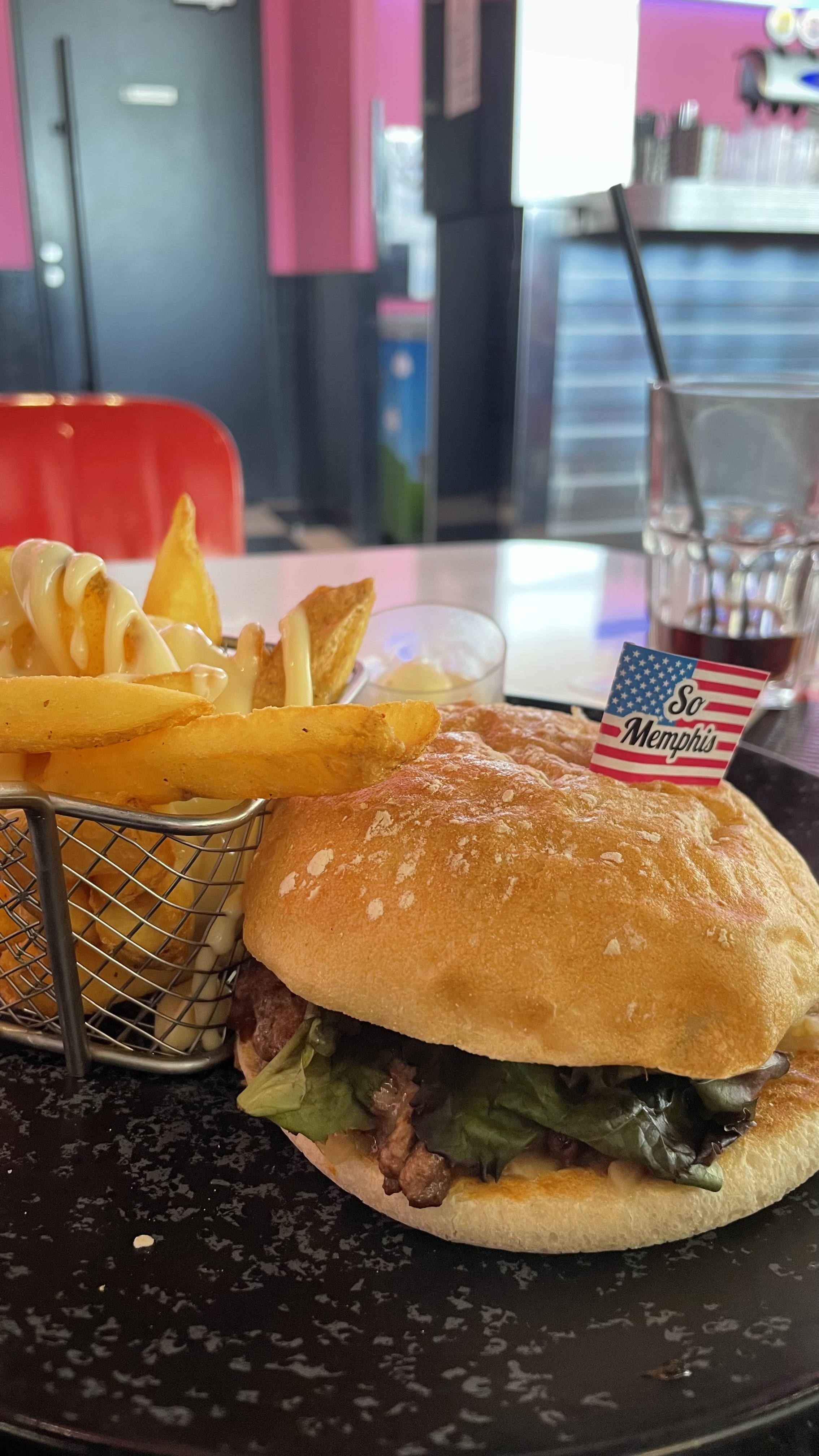 Une véritable immersion aux États-Unis des années 50. La décoration est excellente, très belles couleurs et les banquettes c'est le must! Le menu est une belle compilation des classiques culinaires américains. Baptiste, le responsable du restaurant, est toujours souriant, accueillant et chaleureux. Il connaît son métier et il donne toujours envie de revenir ! Toujours un plaisir et un régal ! Il faut passer par le Memphis ! Recommandation au poil ! 👌🏼