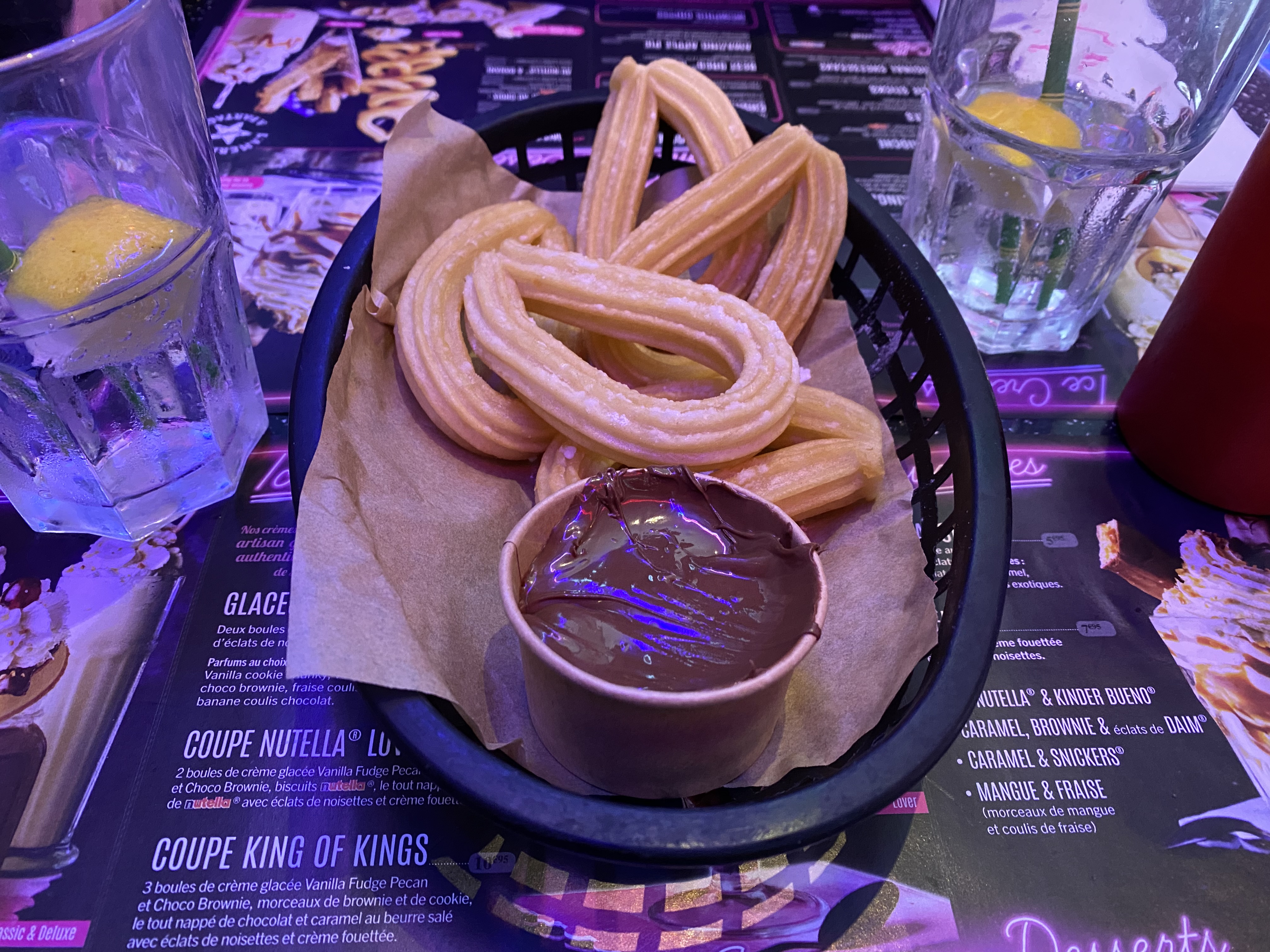 Déjeuner un dimanche midi. On a pris 2 menus à 21,90€. Le burger moutain manquait de cuisson pour la galette de pommes de terre, pas assez croustillante, idem pour les frites; le fromage à peine fondu. Les churros étaient bons. 2 serveurs ce dimanche midi, de l’attente entre le dessert et …les cafés. 25 minutes pour les avoir, merci à la serveuse qui a pris la relève de son collègue et nous a offert les cafés. Décor sympa, service un peu long, plats corrects mais sont moins bons que chez les concurrence.