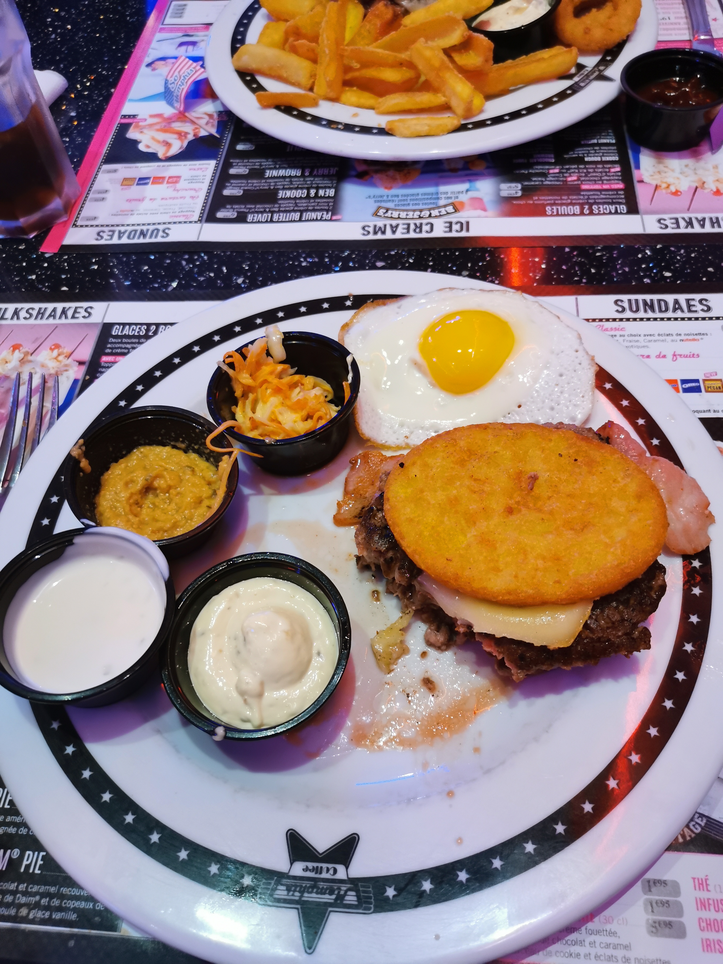 Super restaurant immersif, on se sent véritablement dans les 50's au US ! Il ne manque que les patins à roulettes pour parfaire l'immersion du Dinner ! Très bon repas.