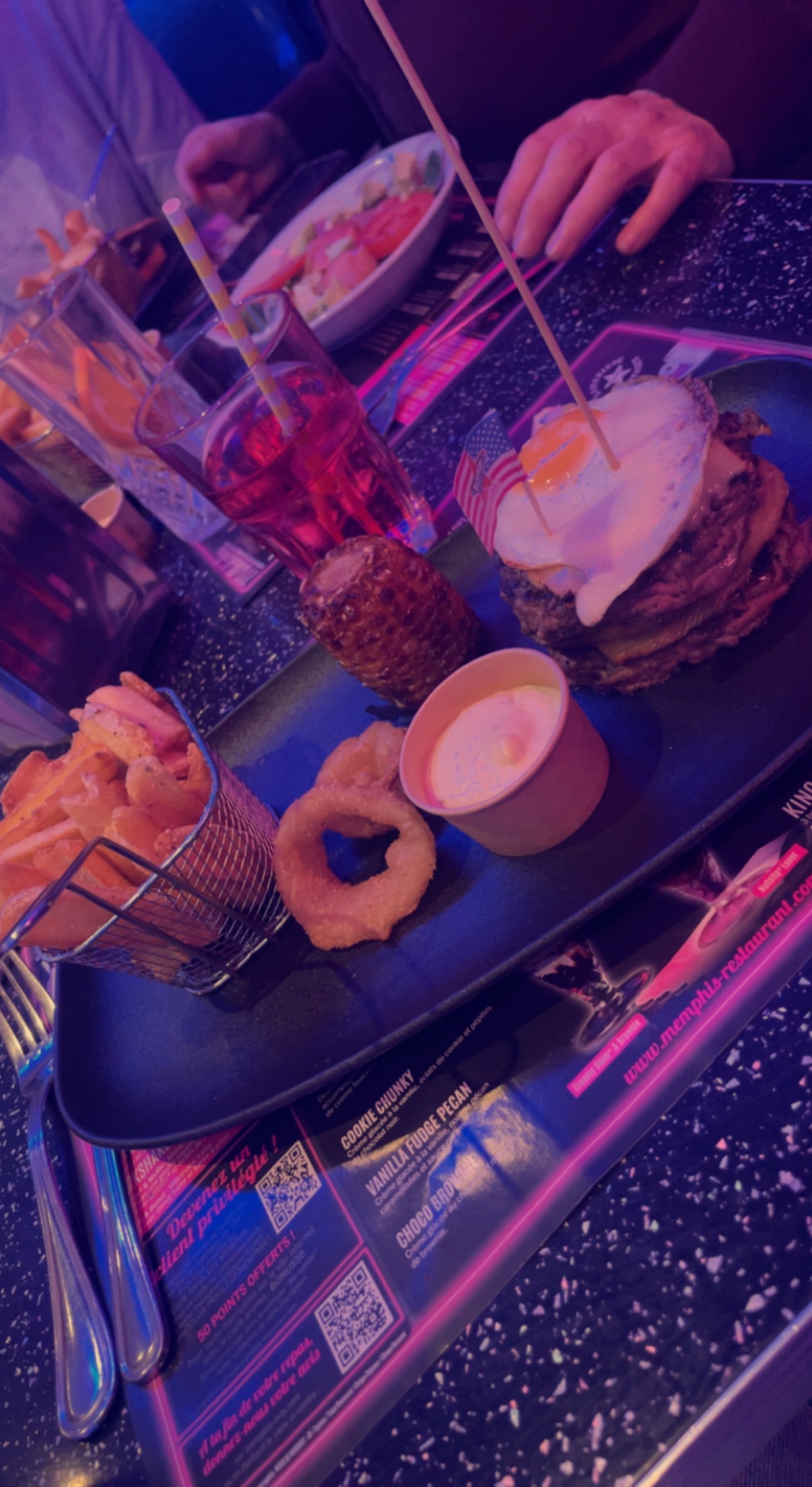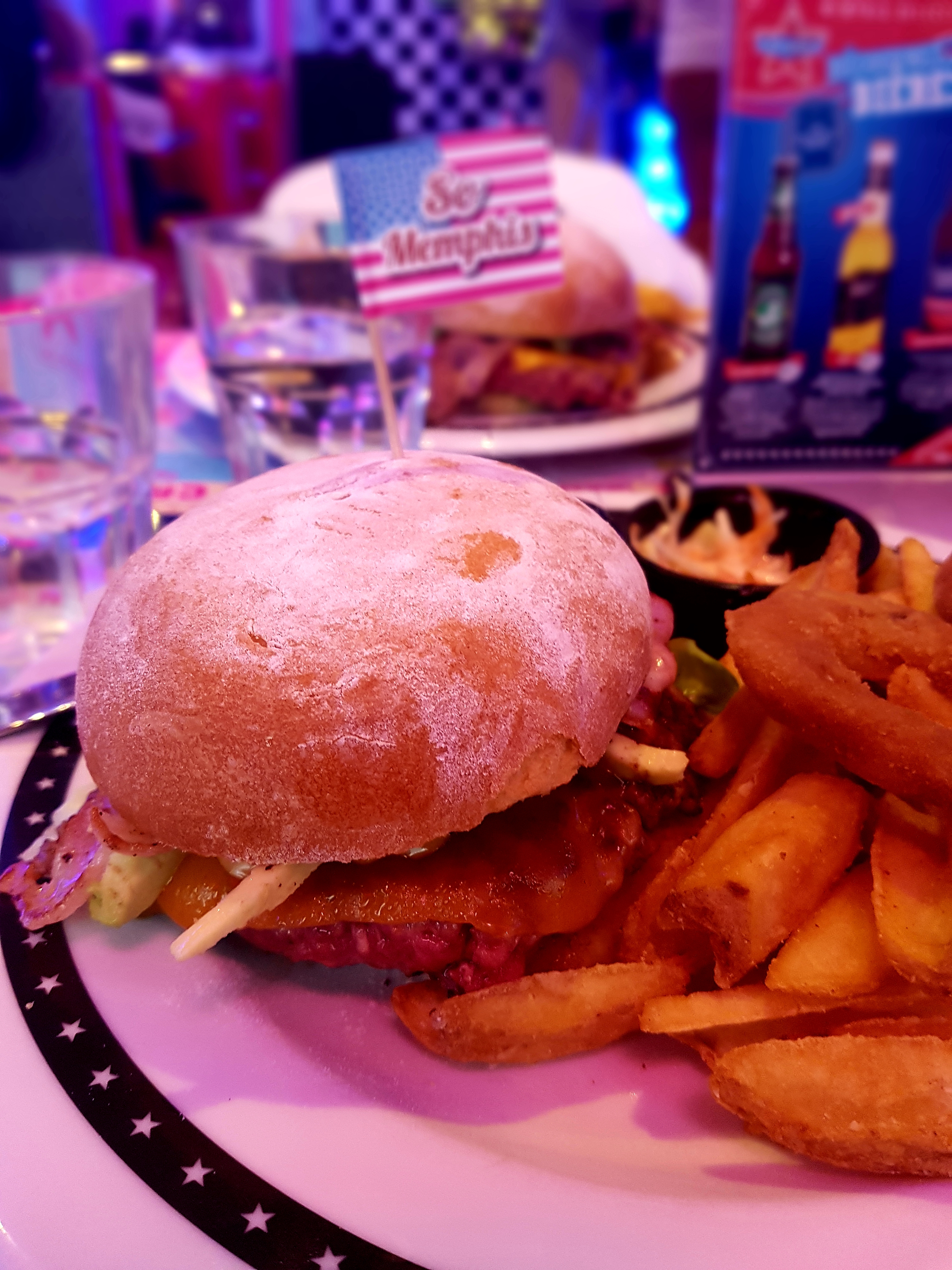 Ambiance US retro sympathique, le service au top rien a dire, les serveurs sont agréable et rapide 🤌🏼👌🏼 (Le burger Crazy Memphis sur la 1er photo et le sundae gratuit sur la deuxième du coup)