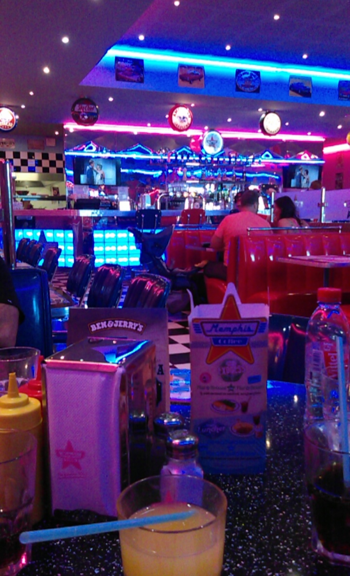 Ils ont tout misé sur la déco mais rien sur l'alimentation. Même l'eau à boire est infecte. Odeur du restaurant qui sent l'eau usagé de serpillière. Présentation des plats catastrophiques. Les plats sont immondes à manger. Aucun effort de fait. Donc si vous y aller vous aller sûrement apprécier juste le côté rétro américain mais rien de plus.
