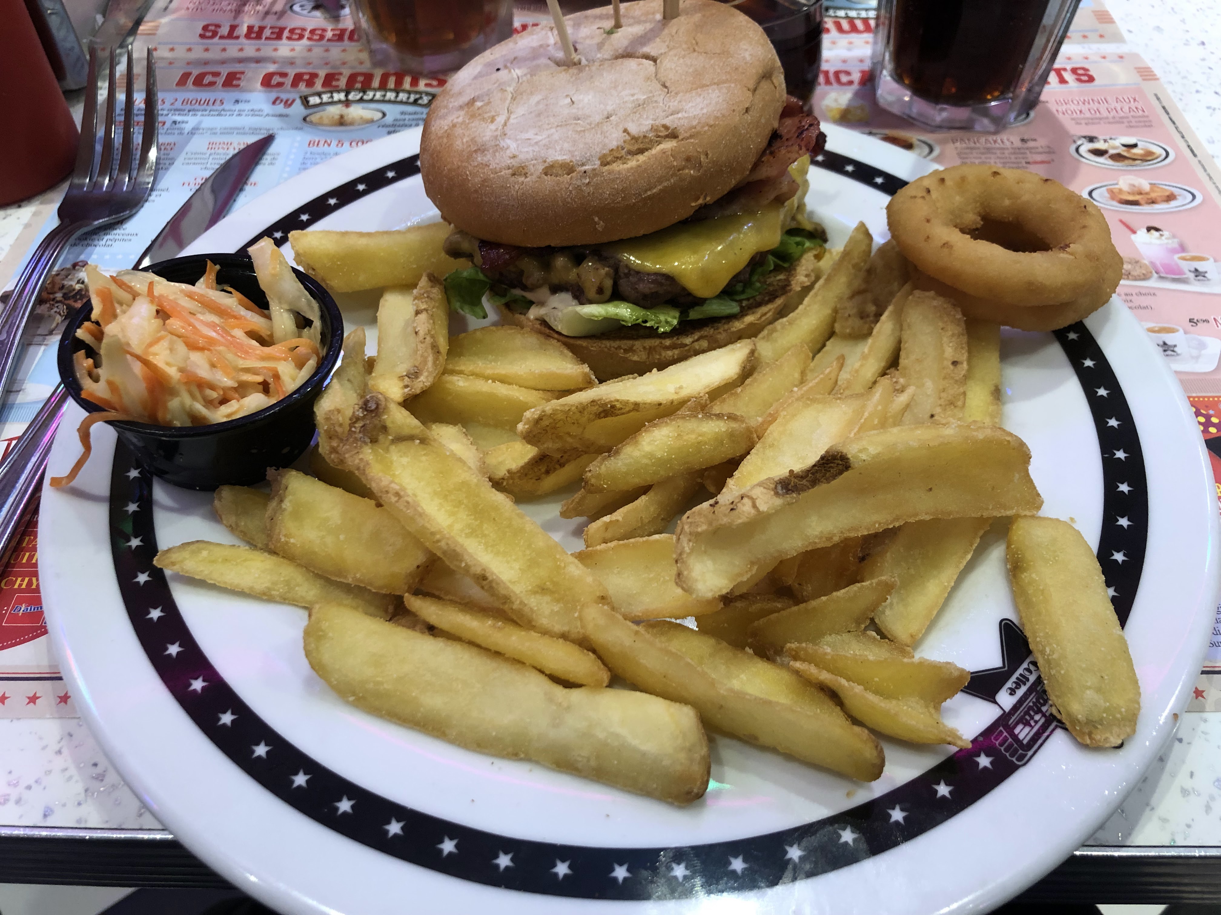 Plats copieux et bons. Le décor est sympa. On se croirait aux states dans les années 80