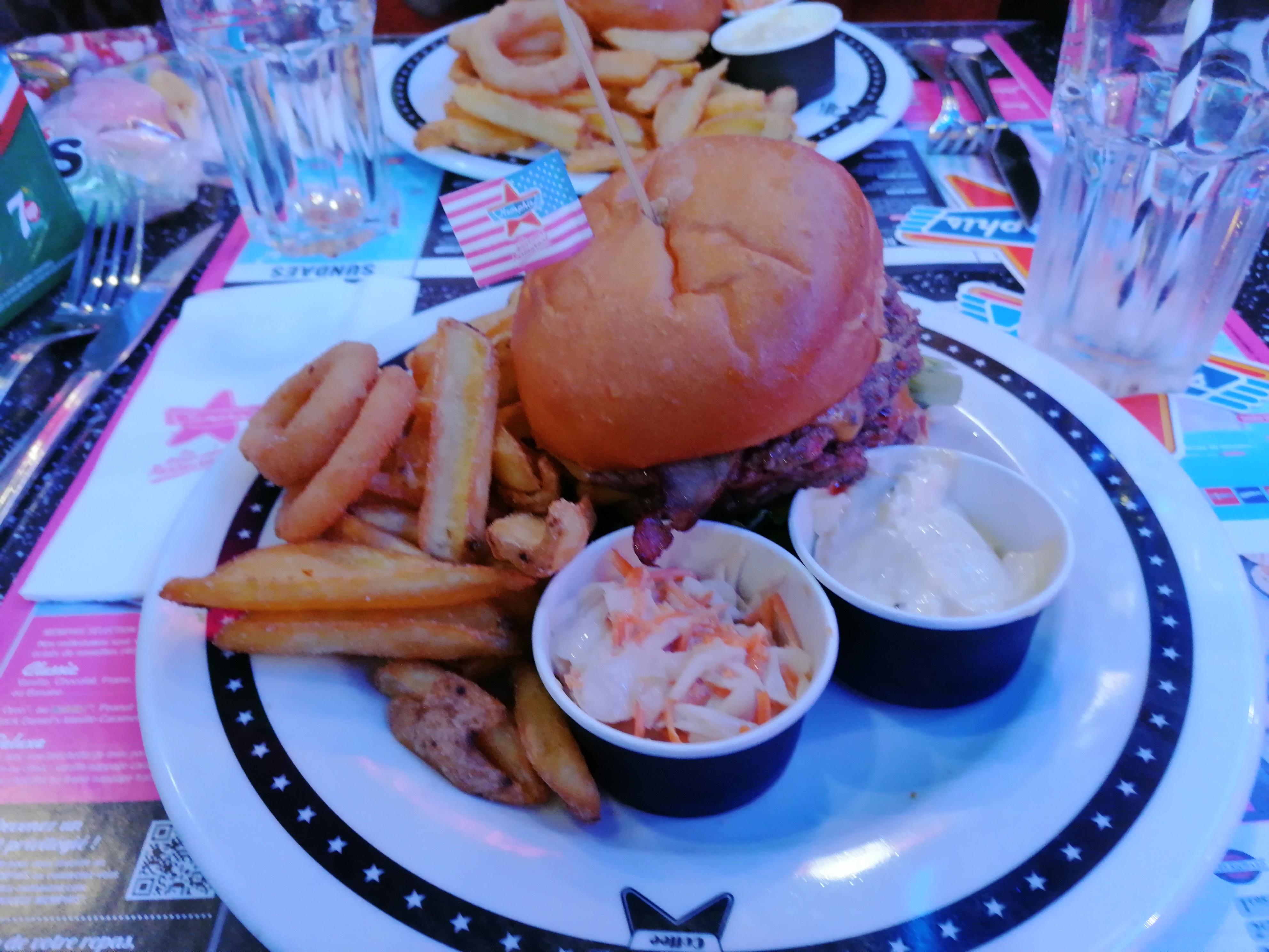 Ce restaurant est vraiment mon préféré. Dès votre entrée vous êtes plongés dans une typique ambiance américaine. De multiples détails dans la décoration valent le coup d'œil. La carte est variée, il y en a pour tous les goûts : burgers en tout genre, hot dogs, desserts, boissons... Tout est excellent ! Le personnel est charmant de manière générale, nous avons toujours été bien accueillis et bien servis. Attention à ne pas arriver trop tard pour le service du soir car le restaurant est souvent plein. Sinon il faudra vous armer de patience en attendant que quelqu'un finisse son repas et libère une table ! Mais l'attente vaut le coup !