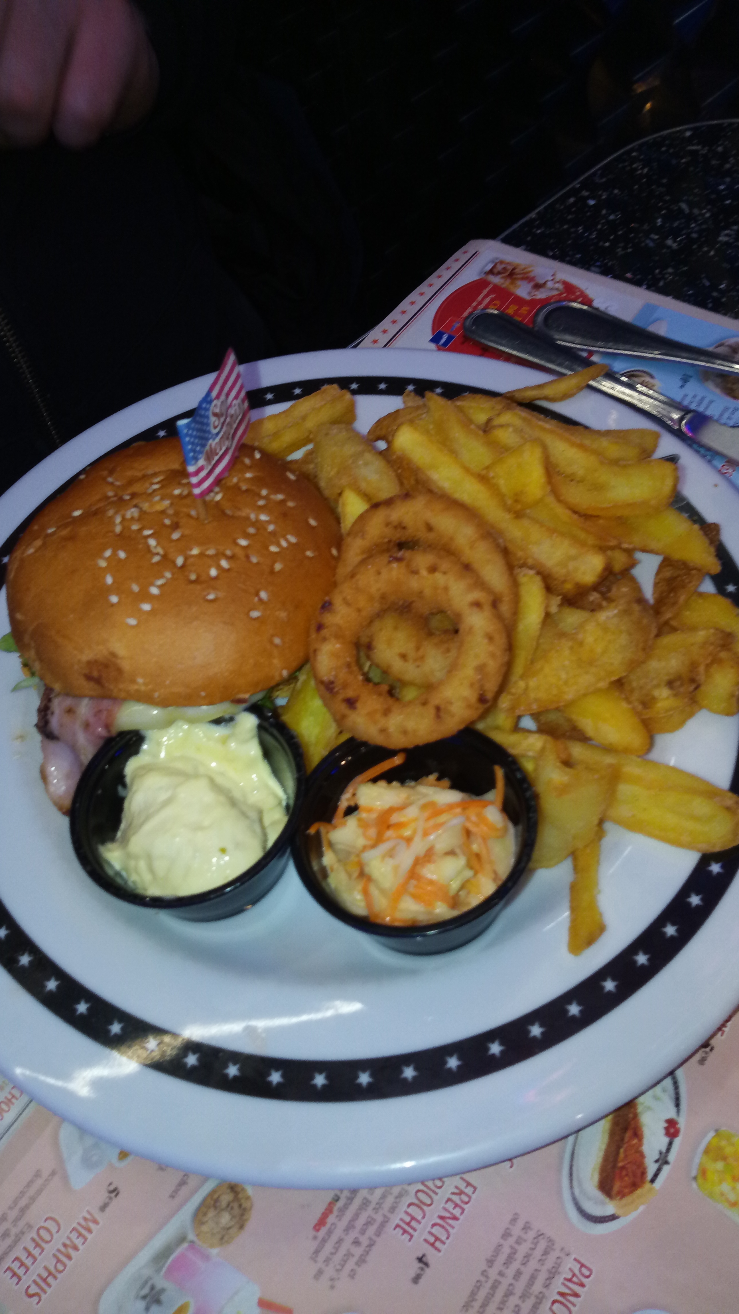 Une première pour moi Repas que dire..... Attente trop longue , le personnel ce prend la tête derrière le bar et le sol trop glissant pour une personne qui utilise une cane Je pense revenir manger dans un menphis S est dommage au début l acceuil était très bien mais l attente déplorable sachant que s était pas du tout complet