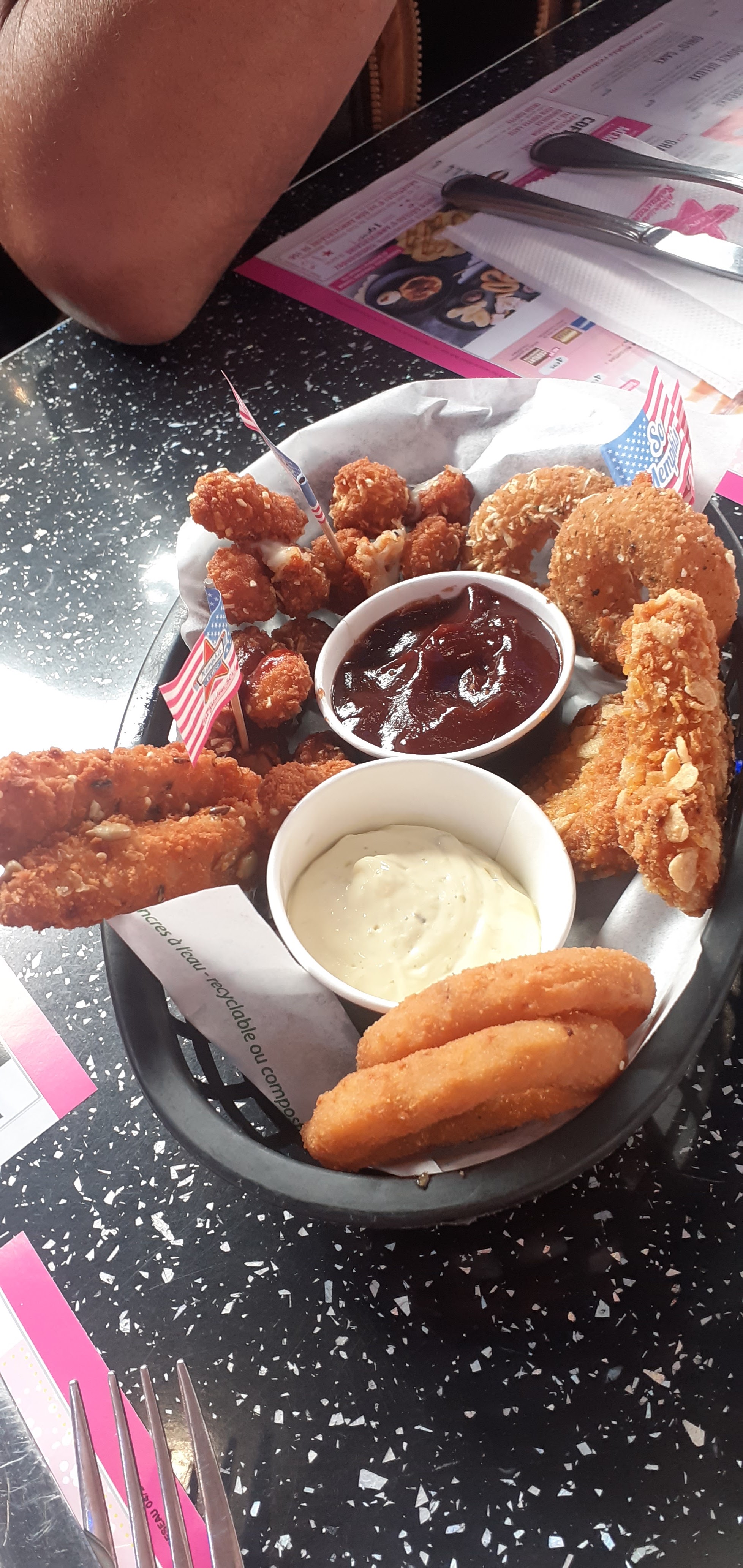 Repas copieux et bon, serveuse très agréable. Les enfants ont également beaucoup aimé. Le restaurant est agréable et très coloré . Ma fille aurait adoré que les serveuses soient en rollers comme la statue du restaurant. 😉