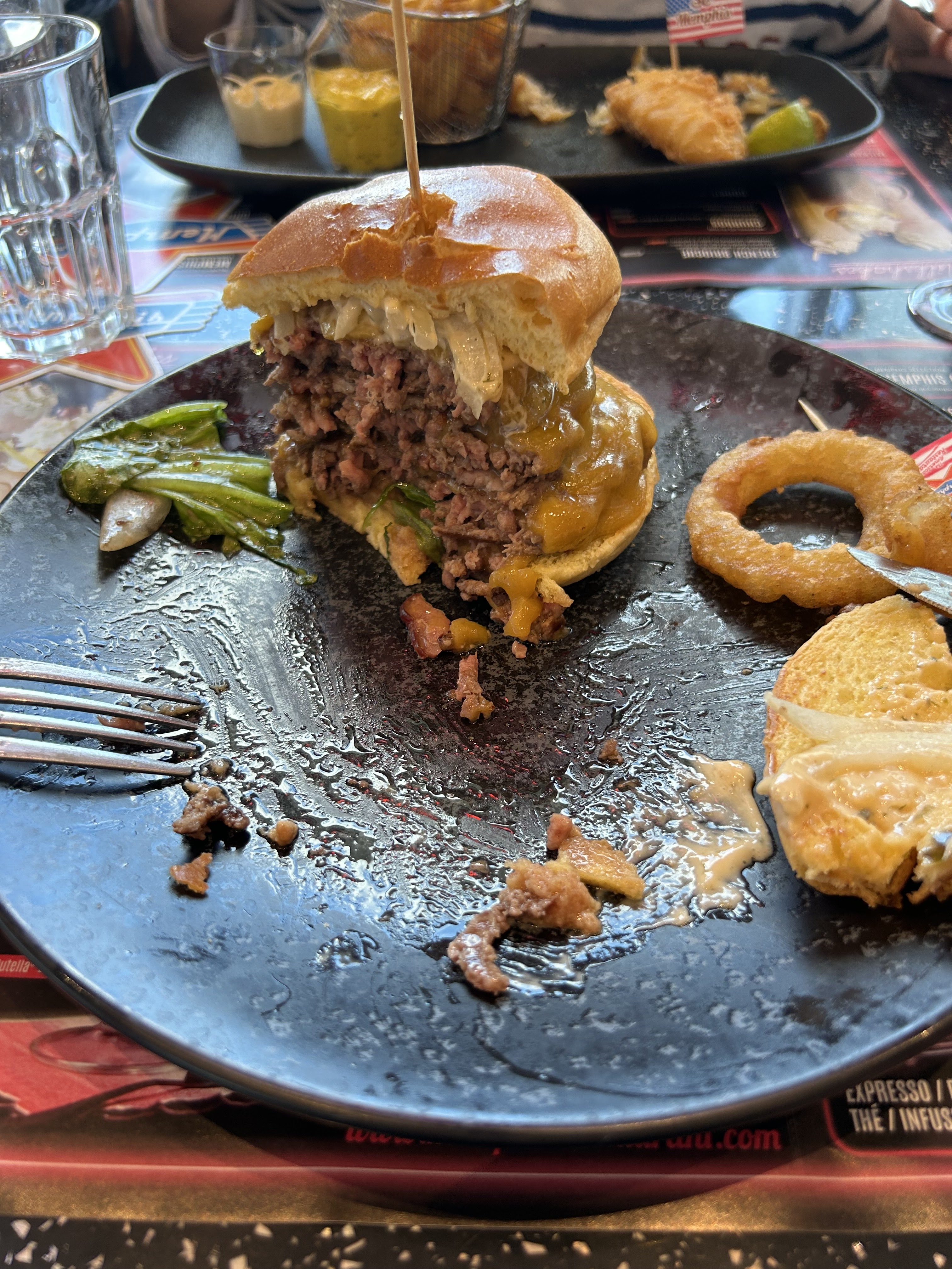 Une première expérience mais sûrement pas la dernière. Ambiance très américaine. Ça plaît aux enfants et aux parents aussi. Je trouvais les tarifs élevés mais finalement on est pas déçu l'assiette pour 8'90€ était très bien garnie j'ai eu du mal à finir et j'ai pas pris de dessert. Personnellement je trouve que les frites sont meilleures ici qu'au Mac Do même les hamburgers des enfants ont été appréciés. Donc à faire.....