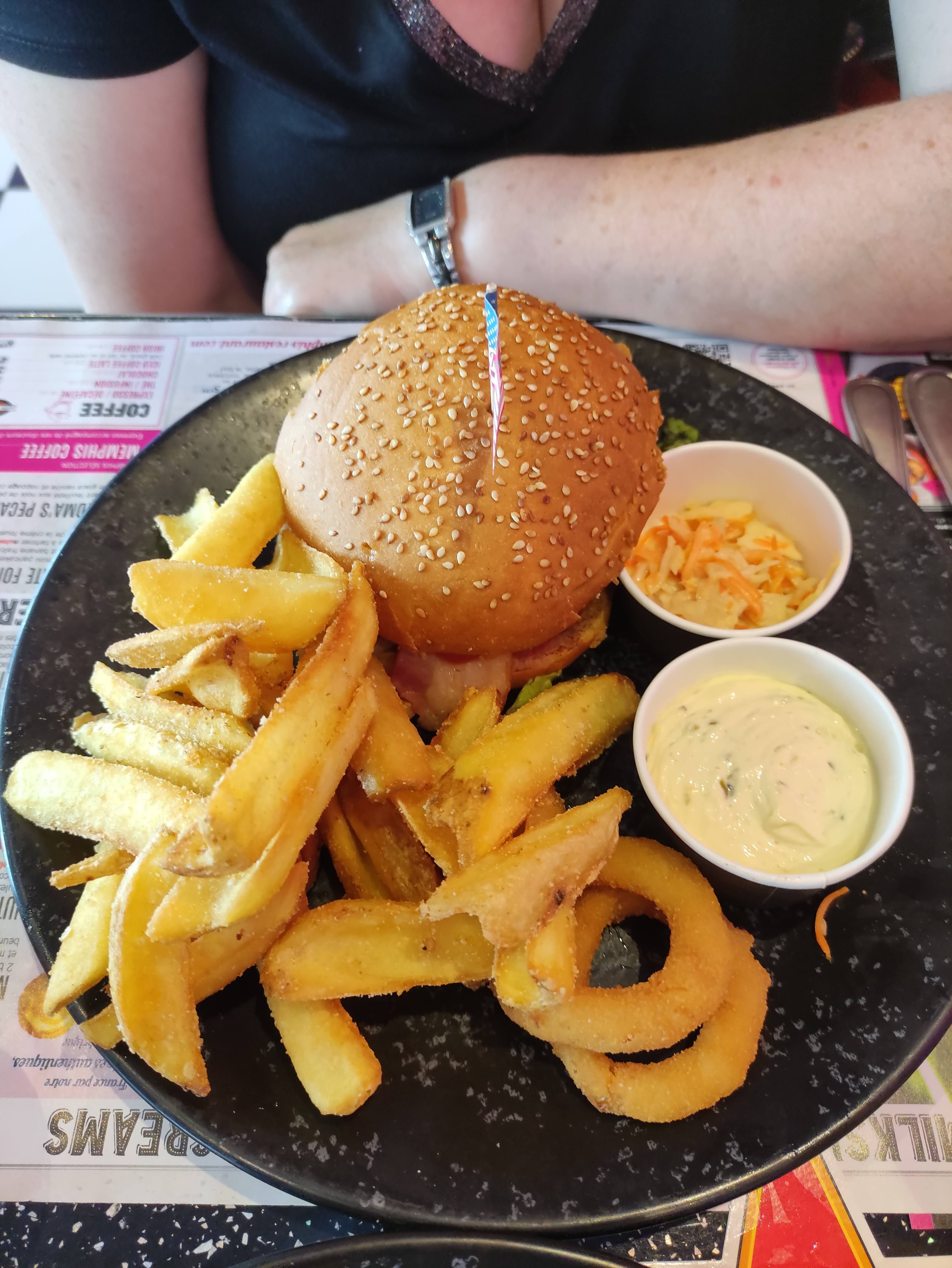 Burger sans goût ! j’ai choisi le sloopy joe mais je ne comprends pas leur concept du sloopy joe. À jamais répéter !! Personnel agressif et non souriant. Un service super slow. Genre demander dés l’arrivée si vous ne voulez pas de mourir de faim.