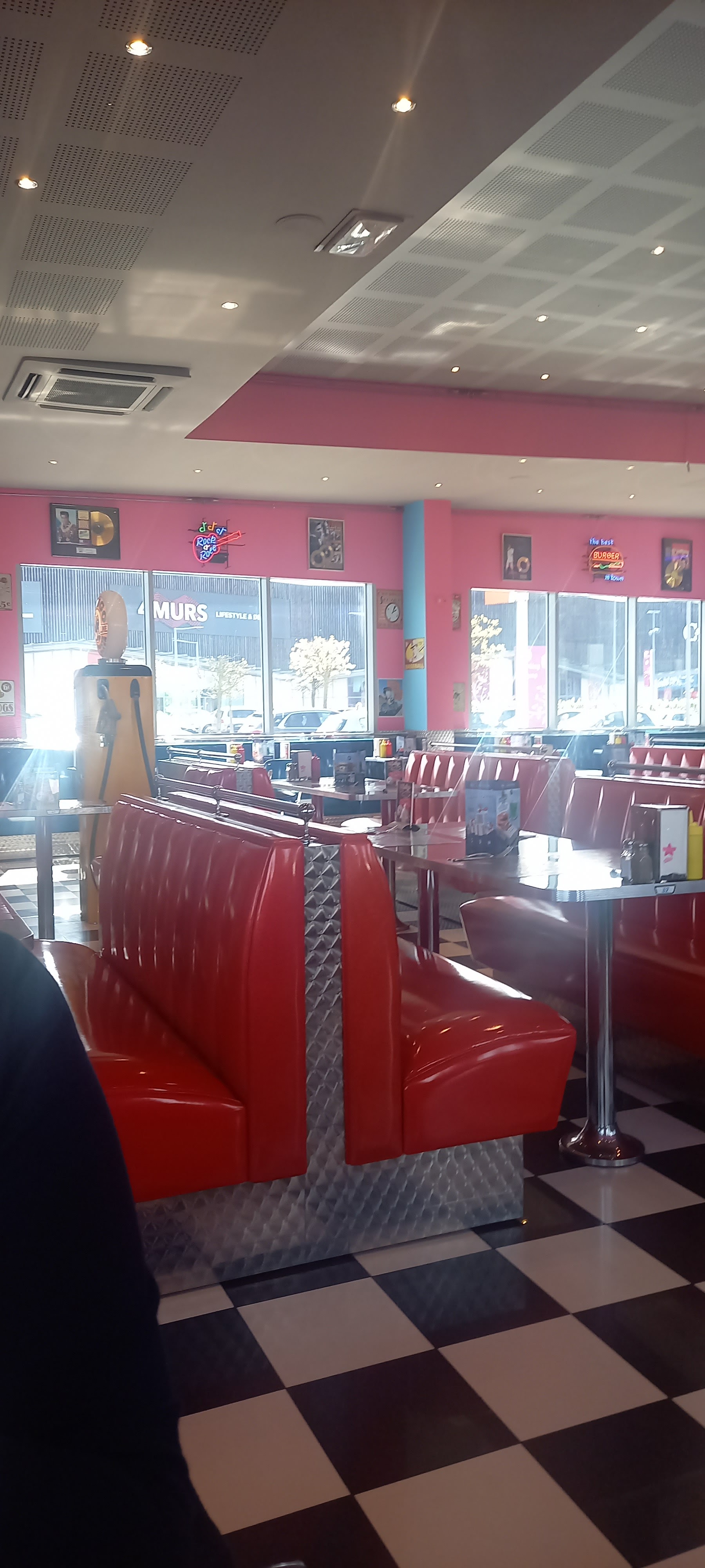 Restaurant américain au style rétro magnifiquement décoré de quoi vous mettre dans l'ambiance avec une très bonne carte le choix est au rendez-vous que ce soit entrées, burgers, assiettes, boissons ou même dessert vous trouverez définitivement votre bonheur . Leur cocktails sont super et très colorés !