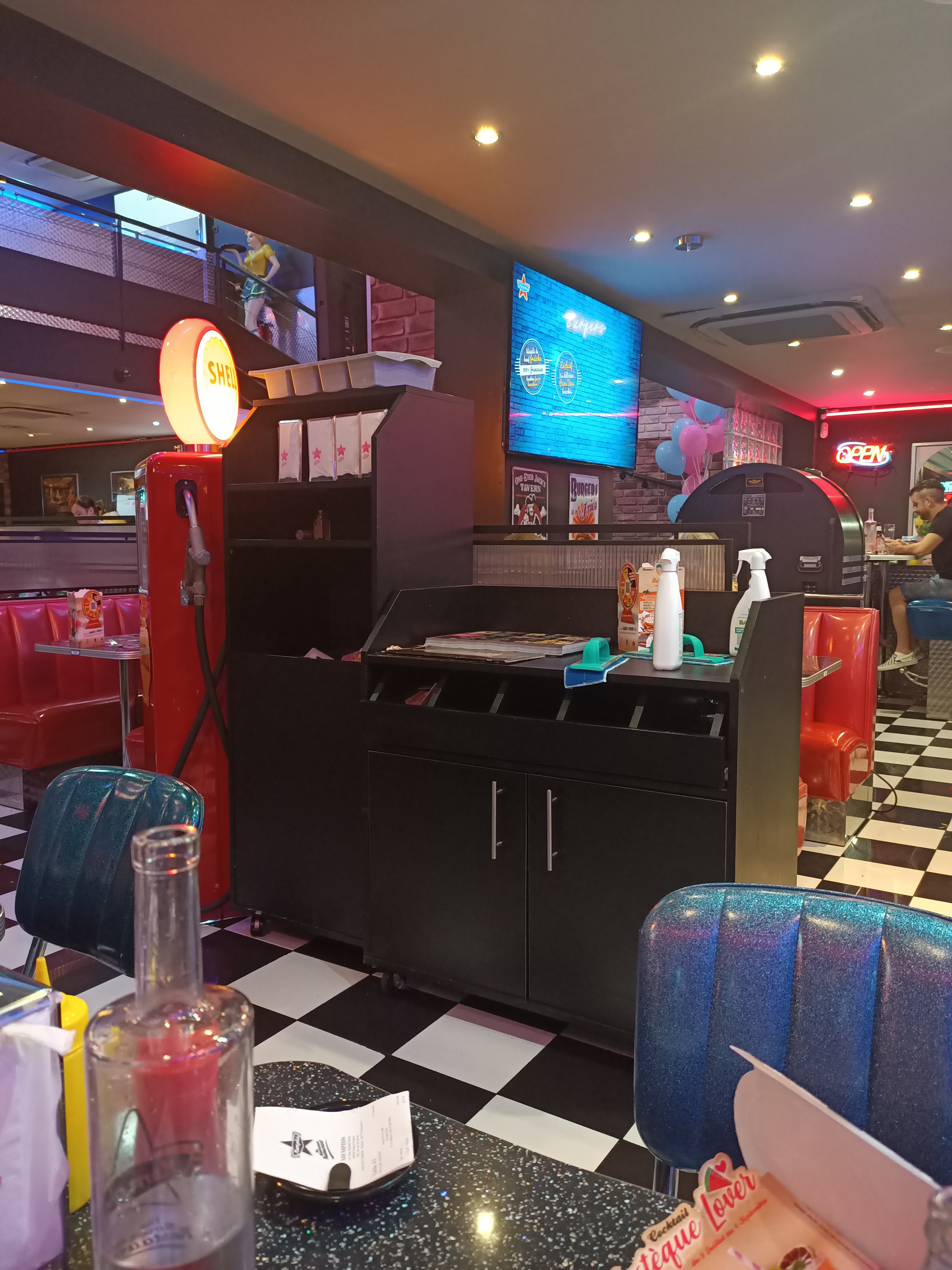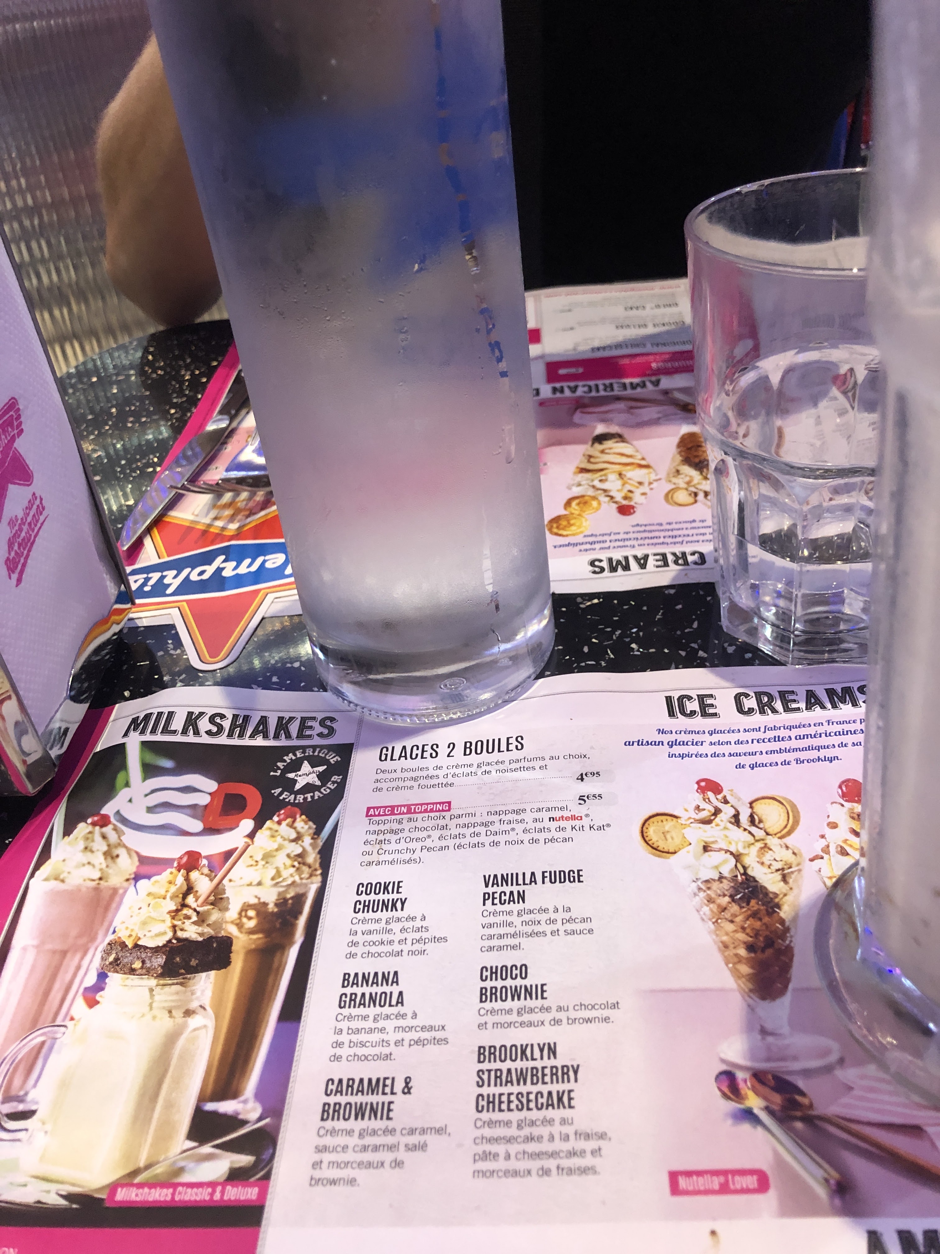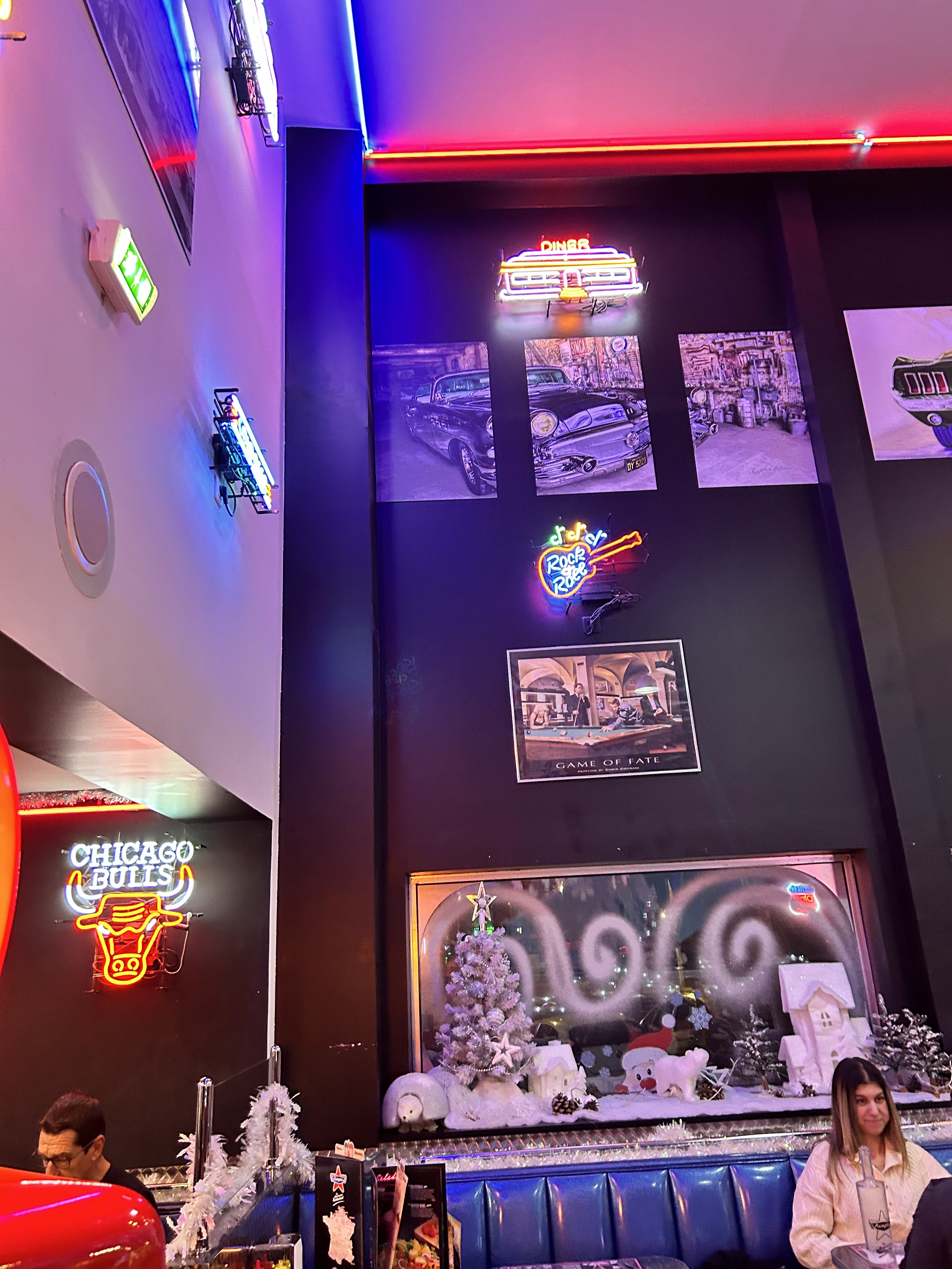 Une ambiance typique américaine, plongé dans l univers Happy days (pour les anciens😅). Serveurs sympas, repas également typiques américains (corn dog, gros hamburgers, steakhouse...), possibilité de boisson à volonté...