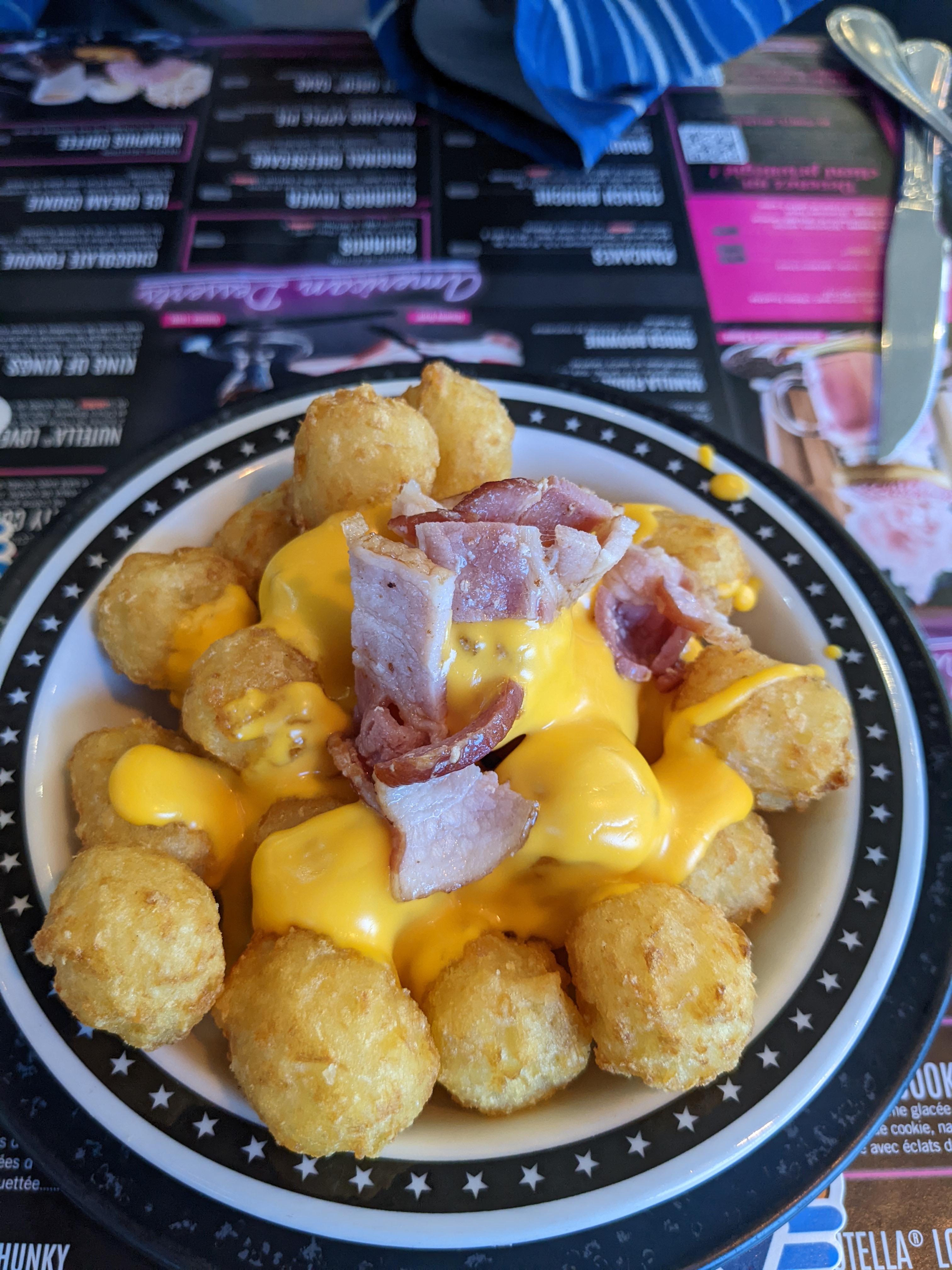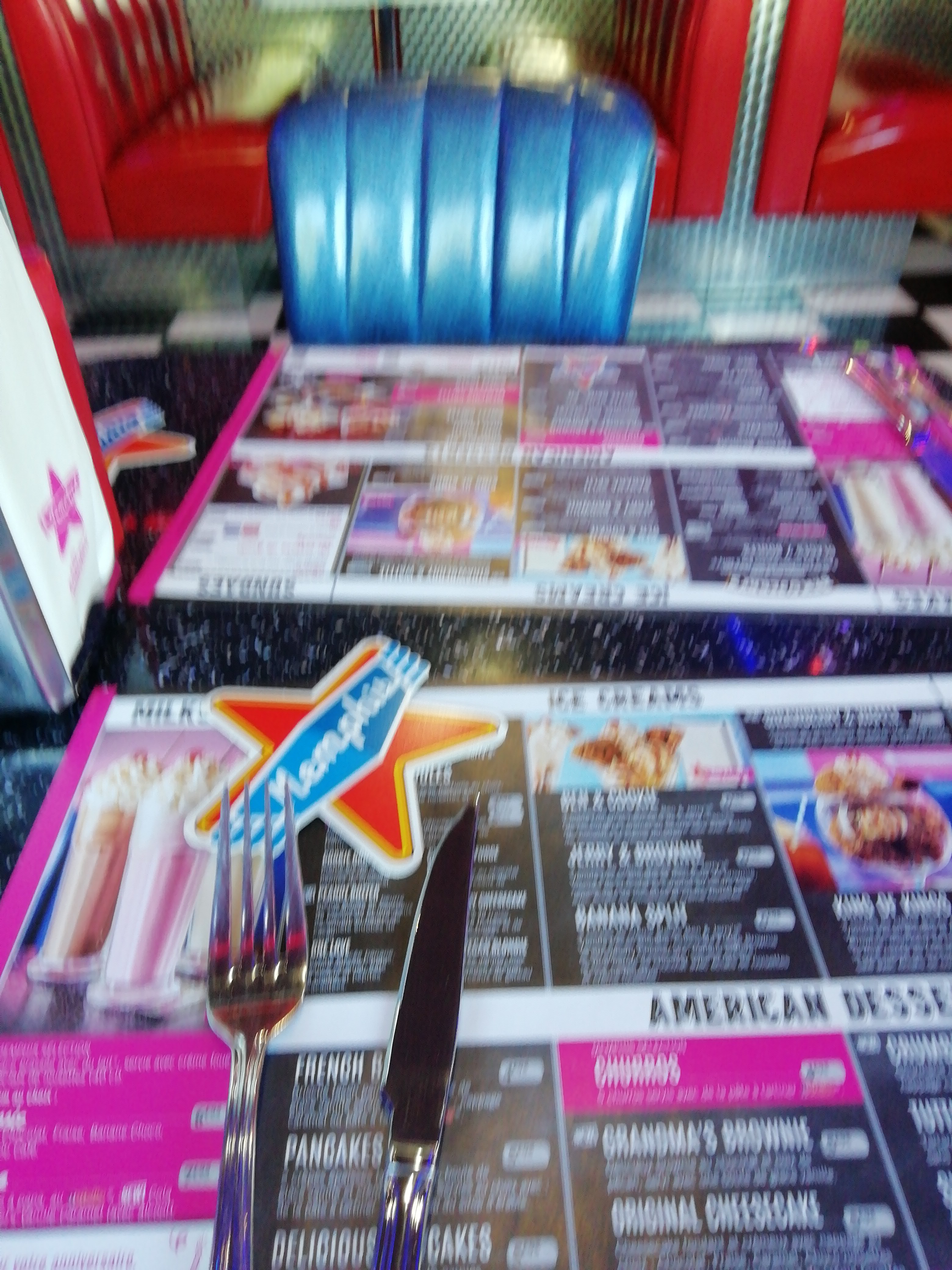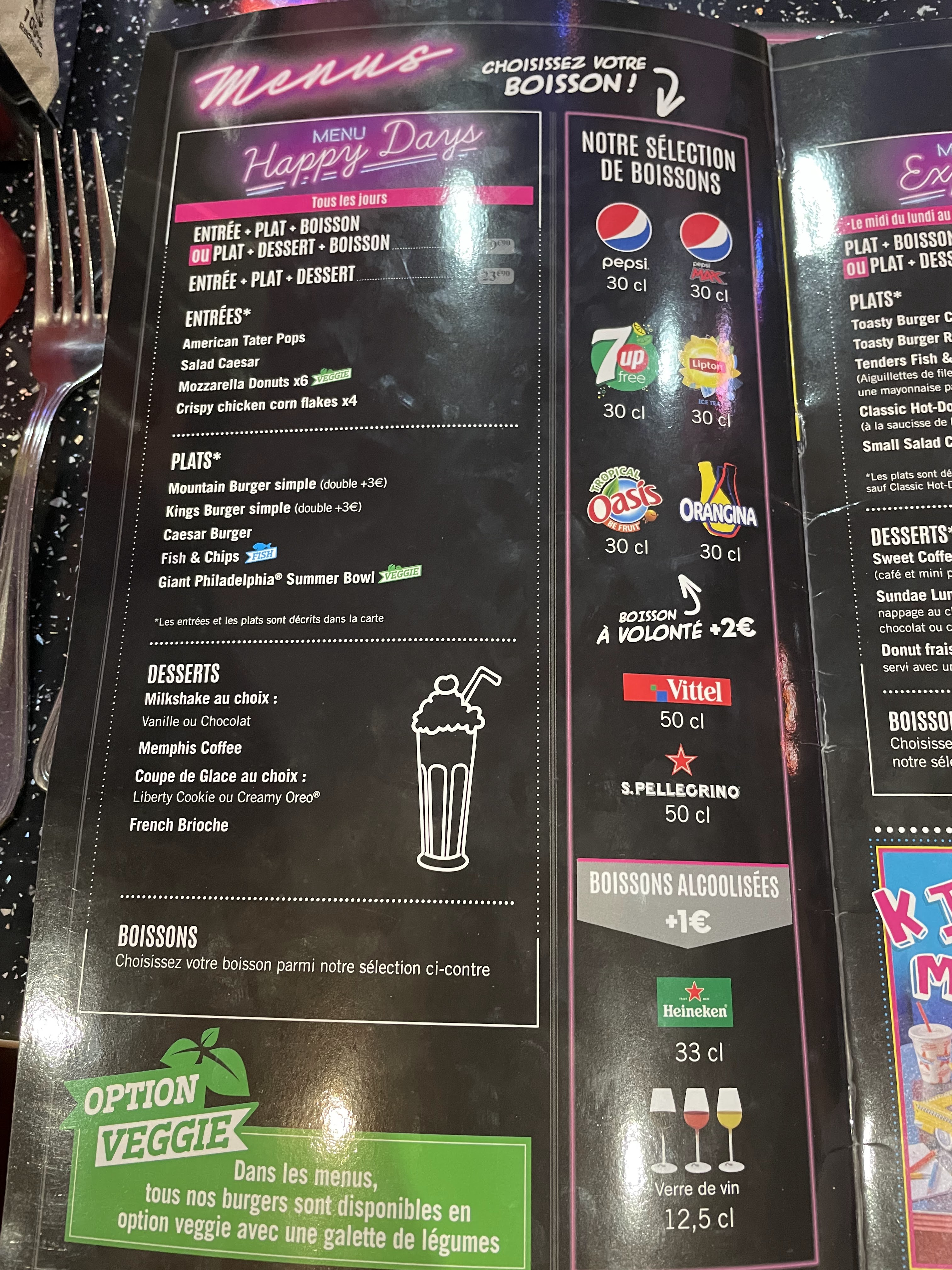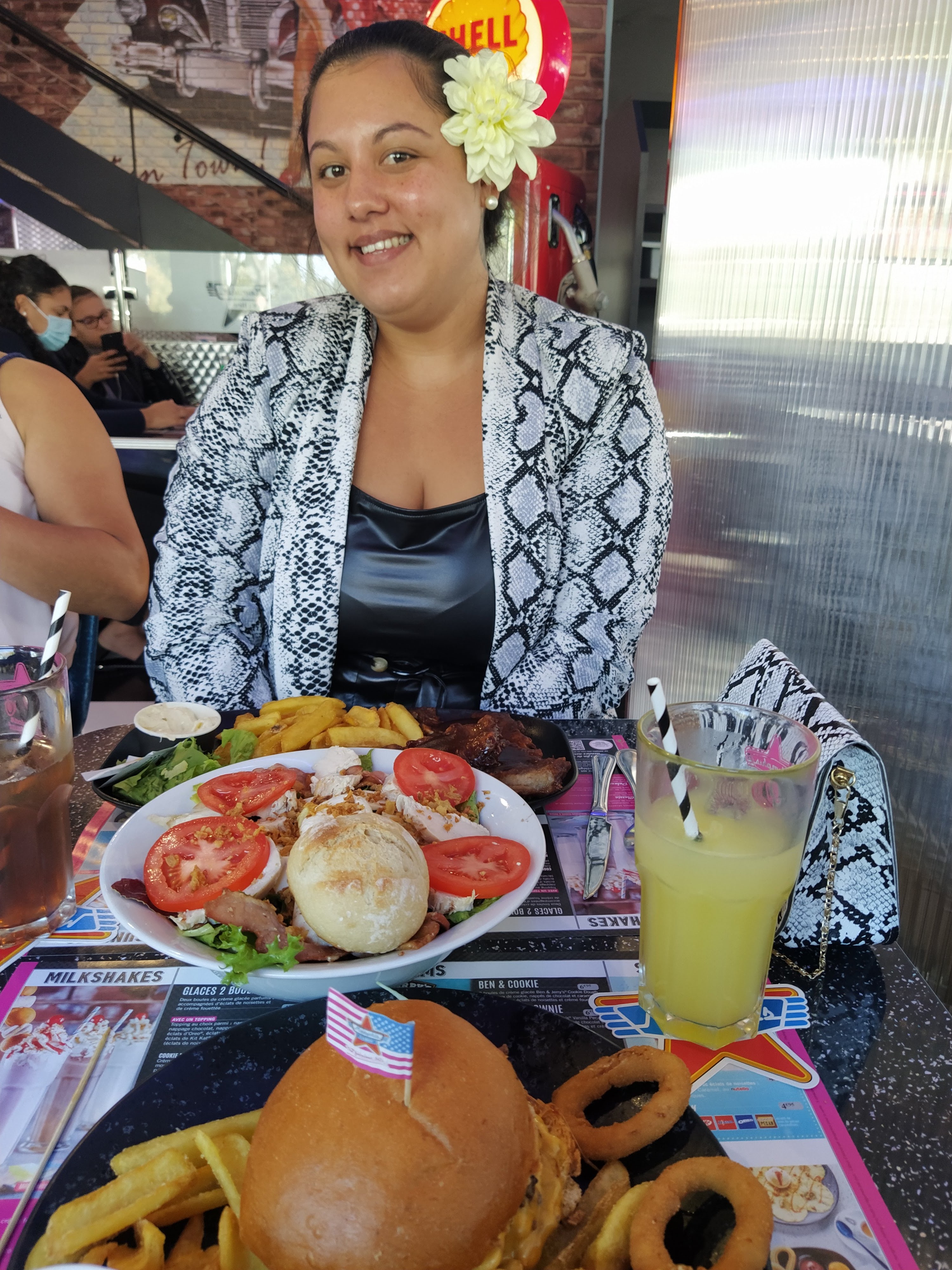 Une ambiance typique américaine, plongé dans l univers Happy days (pour les anciens😅). Serveurs sympas, repas également typiques américains (corn dog, gros hamburgers, steakhouse...), possibilité de boisson à volonté...