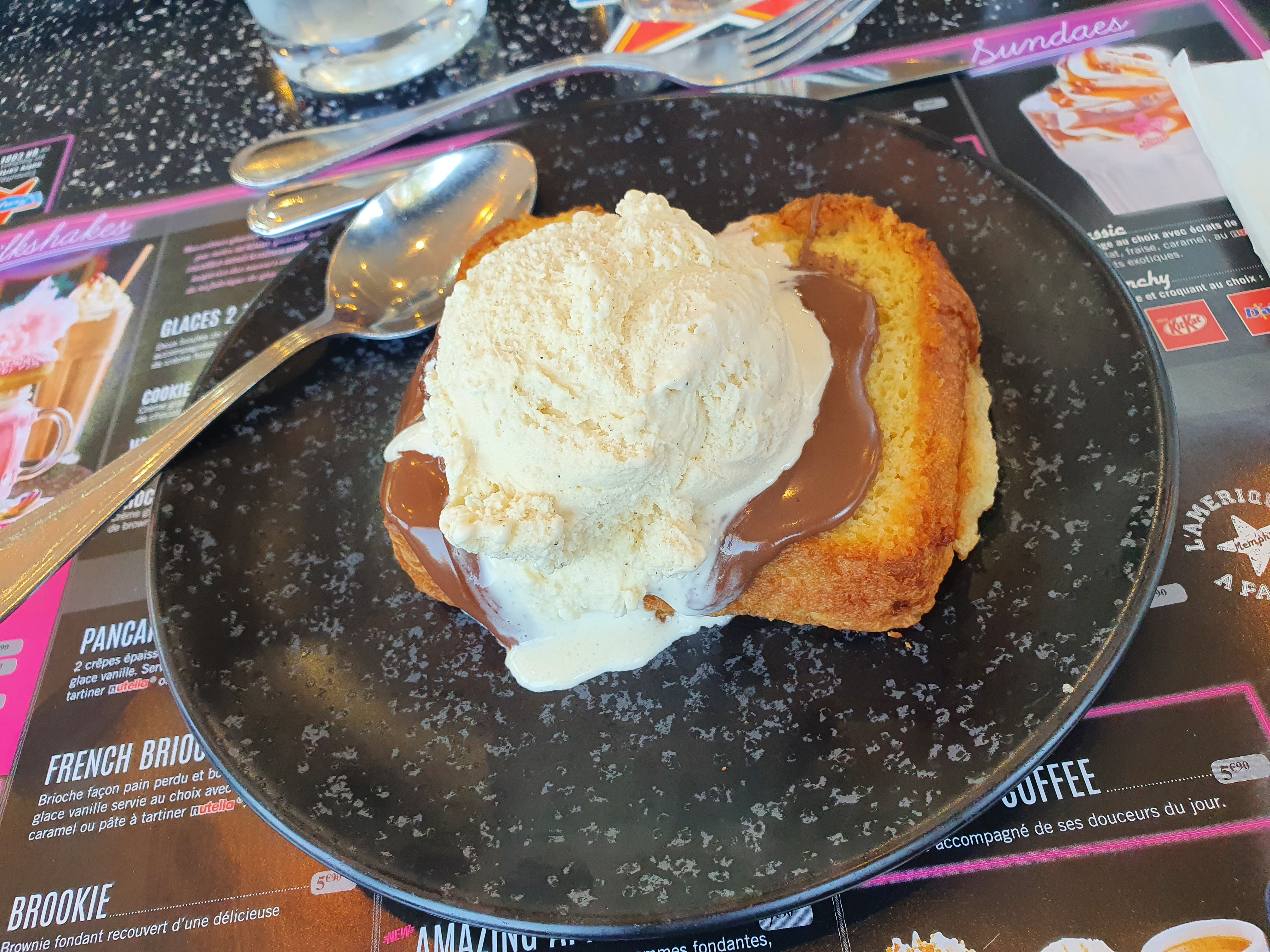 Trop bruyant. Les glaces sont servies fondus. Le sundae caramel snickers à 7.95e ne vaut vraiment pas son prix, il n'est pas bon... heureusement il y a eu un geste commercial donc une étoile de plus