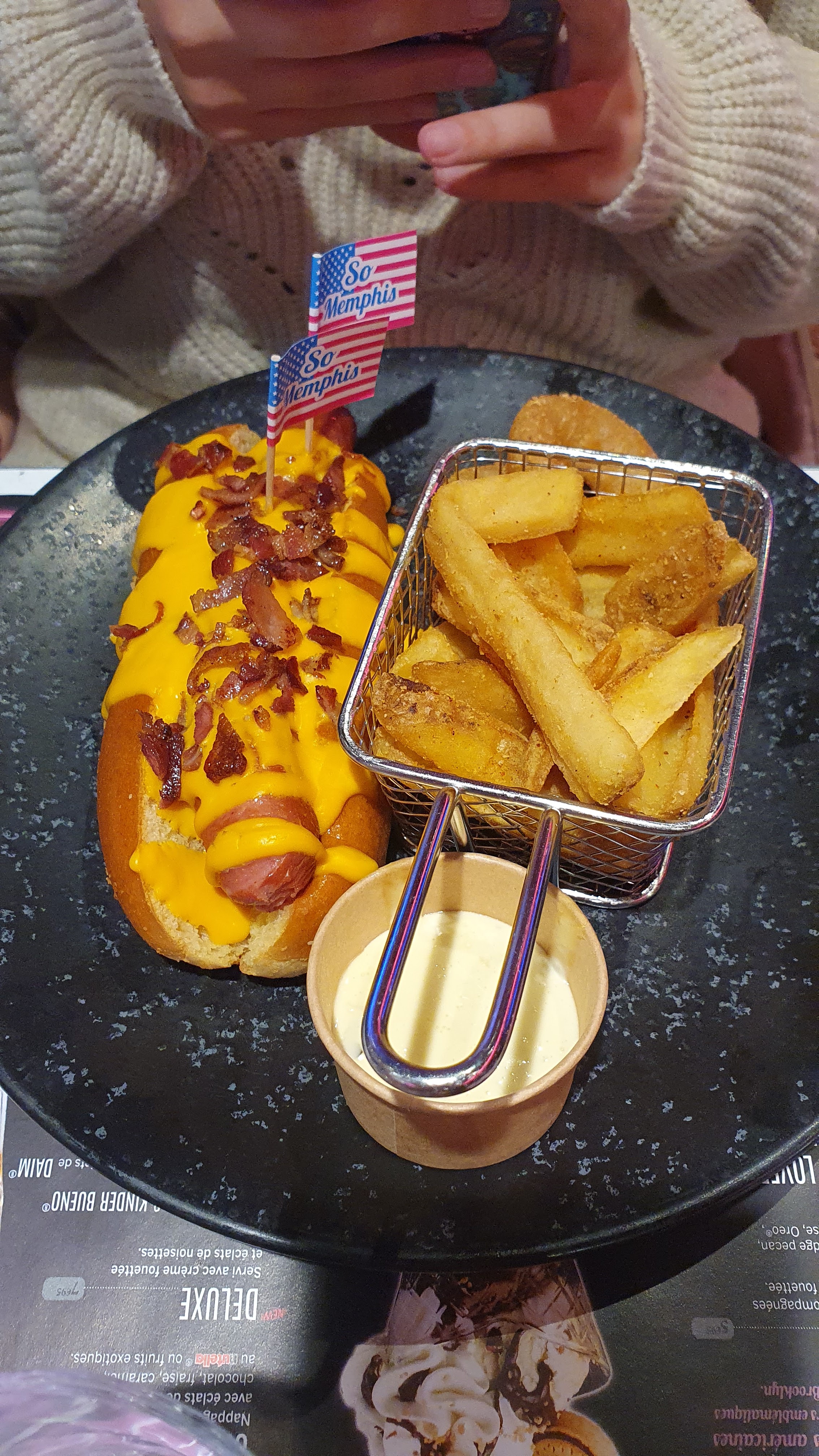 Bonsoir, quel Super moment passé au Memphis restaurant . Que ce soit de la propreté, de l’établissement à la qualité de tout ce que nous avons mangé. Cette expérience a été une très bonne surprise pour nous. Mets tout particulièrement merci à la serveuse Adeline qui nous a fait vivre une expérience inoubliable. Nous avons vraiment voyagé en Amérique hihhha Joli Jumper