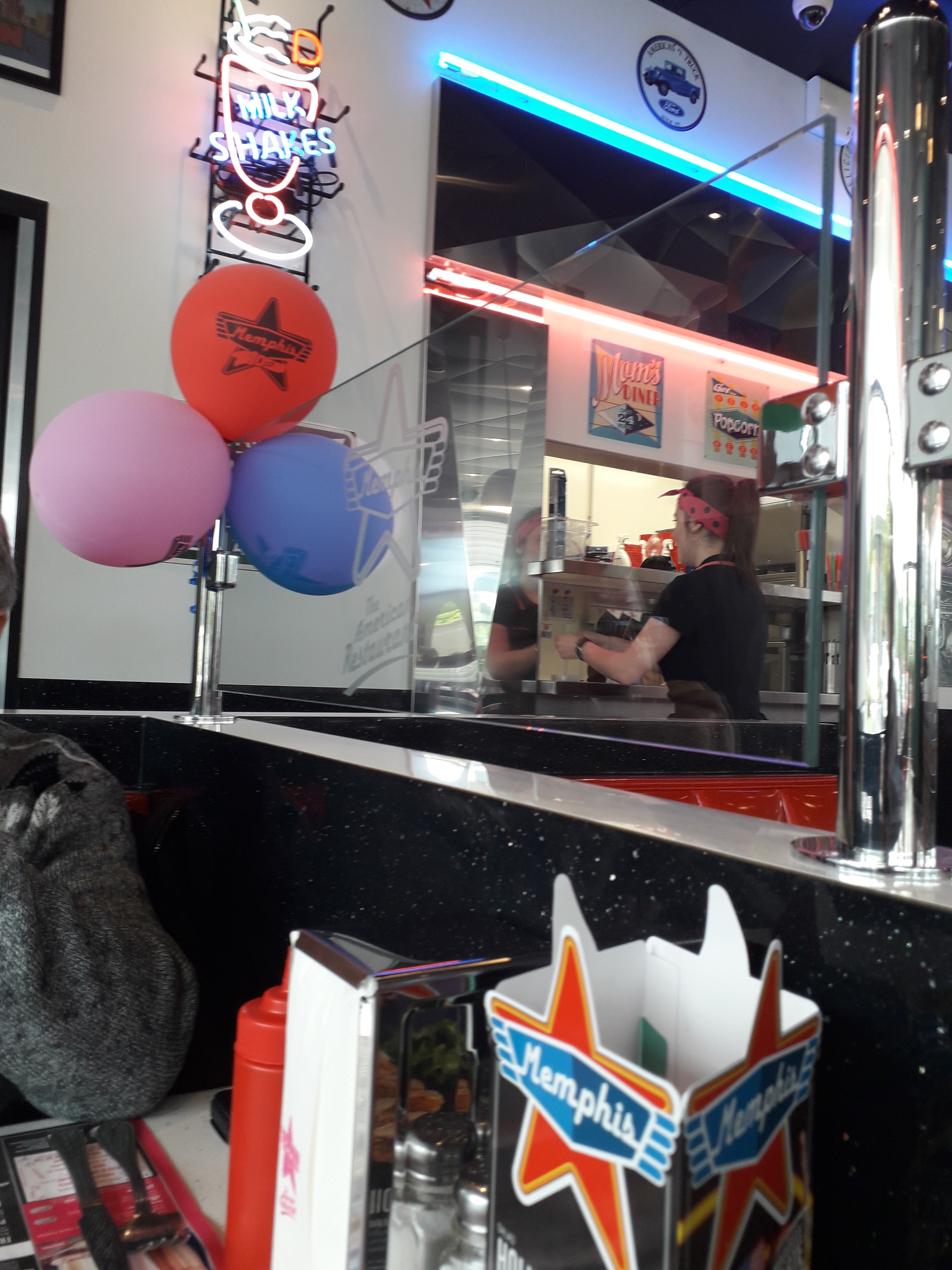 Joli décor américain vintage, accueil sympathique et souriant, service rapide, plats excellents, prix corrects, que du positif 😊