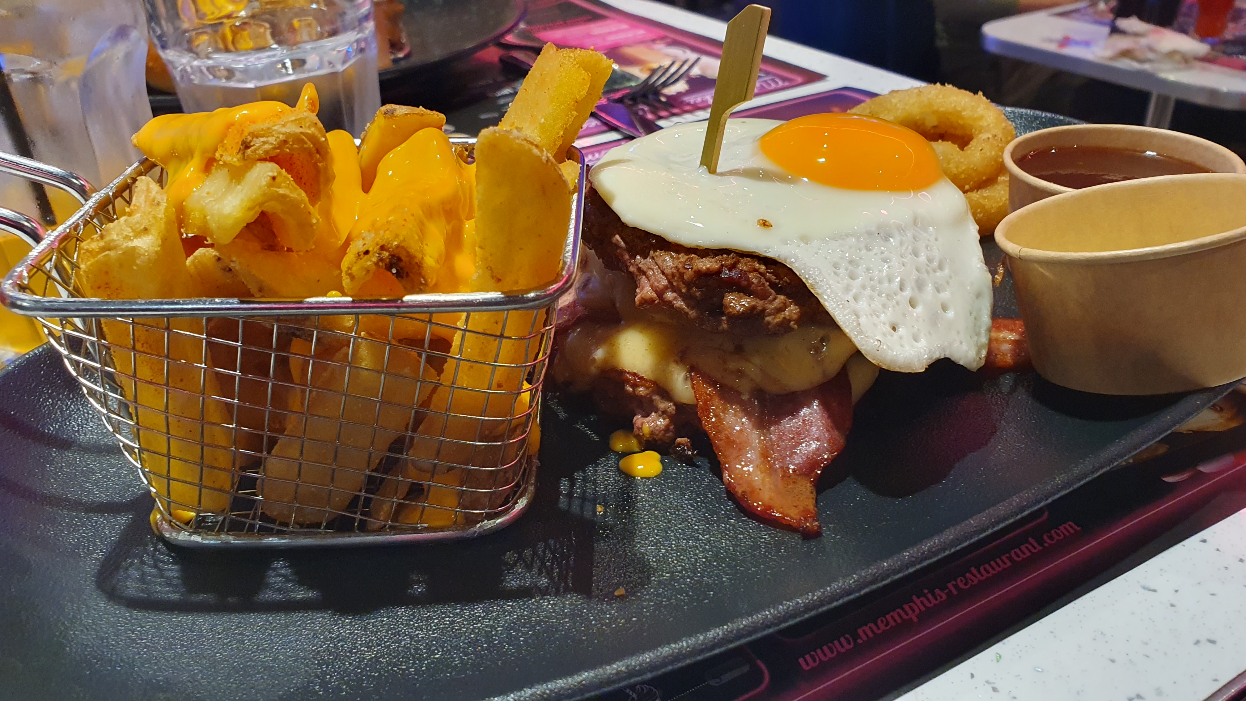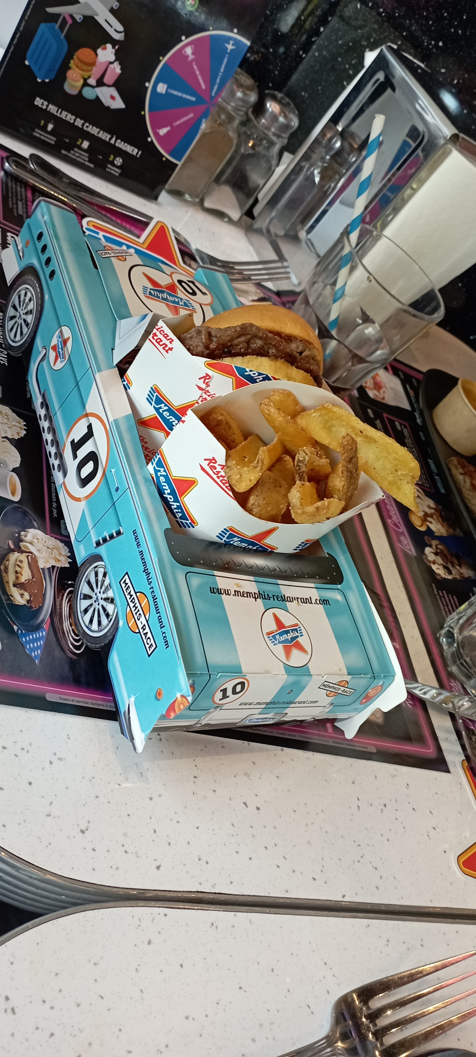 Nous sommes allés au memphis un dimanche soir. Nous avons été bien reçus, en arrivant. Nous avons été prévenus de l'attente concernant les commandes (1 heure). Nous avons commandés des starters pour patienter. Heureusement qu'ils sont servis rapidement. Concernant les plats, c'est basique et un peu cher pour ce que c'est. Dans l'ensemble, nous avons attendu 1h20 pour avoir nos burgers. Ce qui est quand même très long. Pour finir notre repas, nous avons choisi une glace, celle-ci n'était pas conforme à la photo (très peu remplis). Néanmoins c'est compréhensible, ce n'est que le début. En revanche, très belle déco atypique et très bonne équipe de serveur.