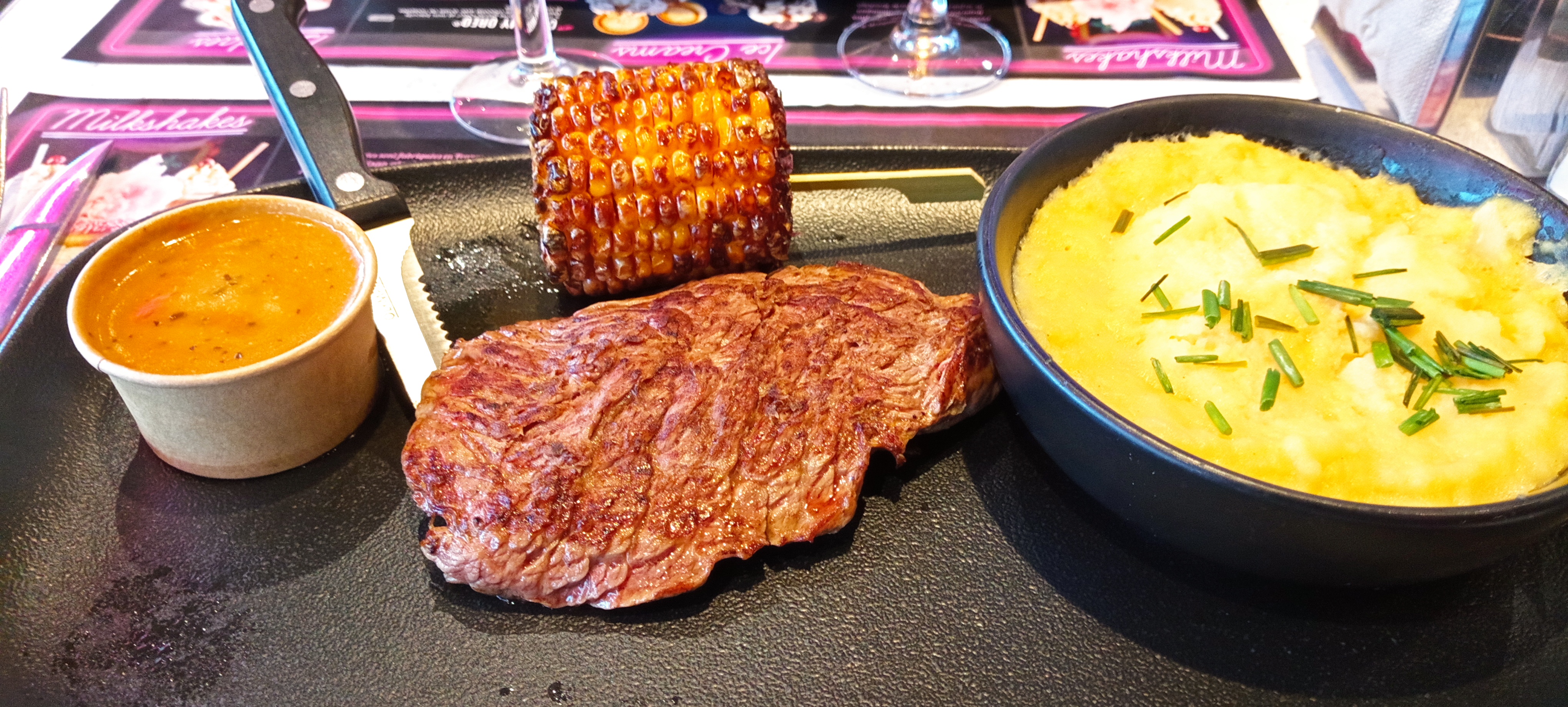 Décor et ambiance très sympa, copieux, personnel très agréable et souriant. Petit bémol sur les cuissons, sauce au bleu peu goûteuse..