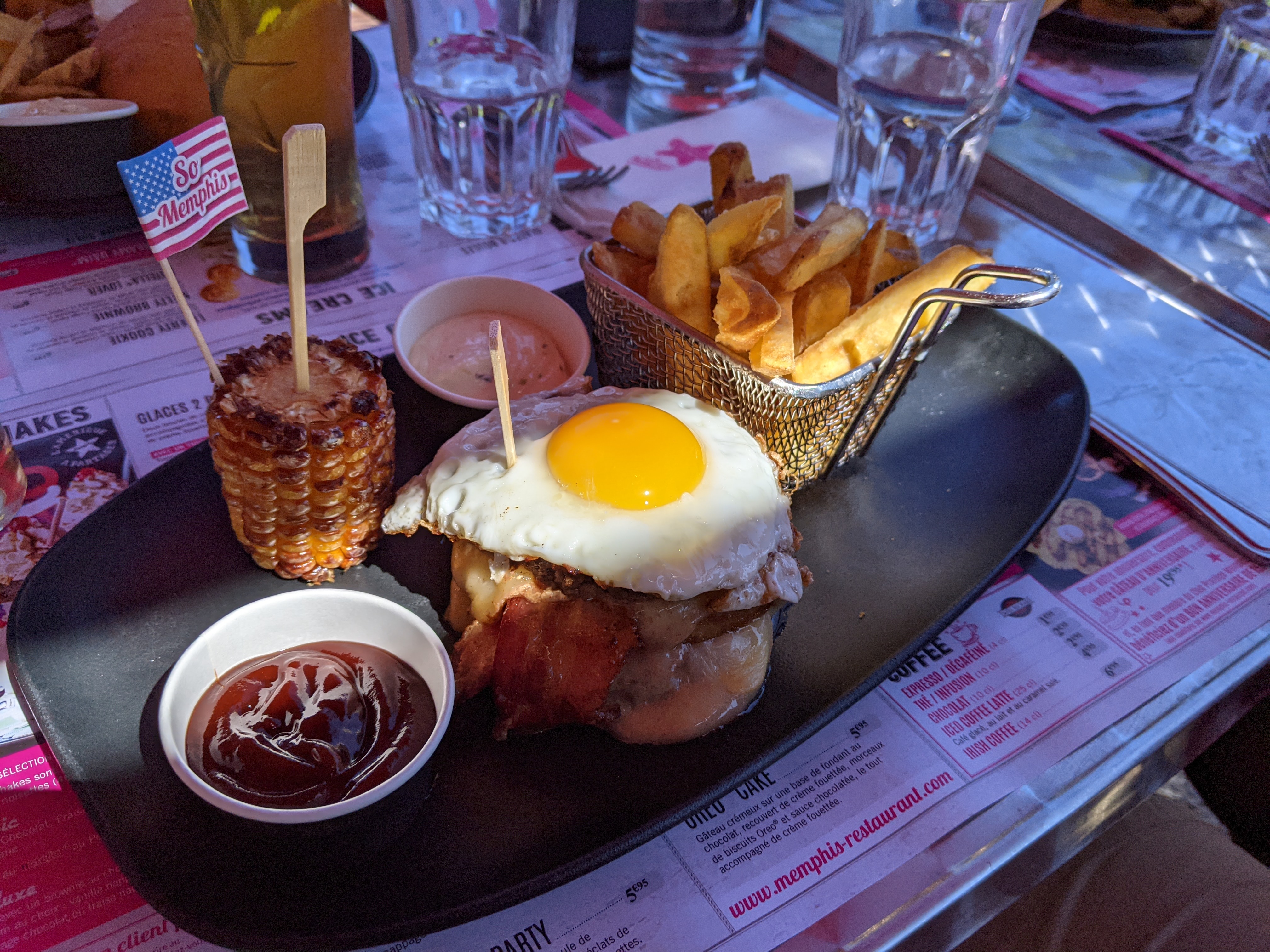 1ère fois au Memphis. Le cadre est top et fidèle au USA. Les plats sont variés et copieux.. Petit appétit s abstenir.. Les gourmands seront ravis!! Pour 5, 2adultes 3 enfants l addition est un chouilla élevé. Nous ne reviendrons que pour les grandes occasions ;)