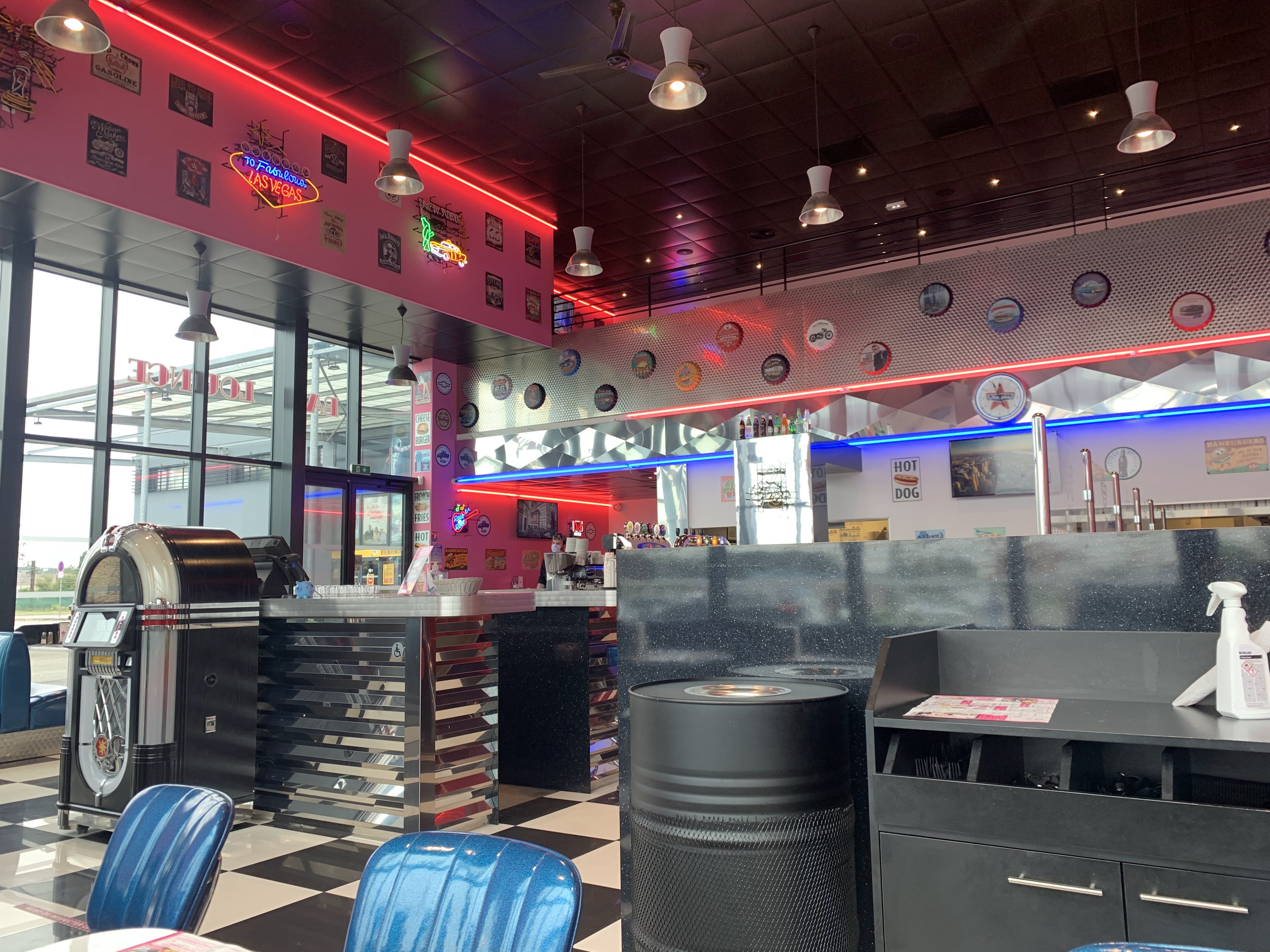 Bonjour ! Lieu assez sympa et fidèle dans sa décoration/thème Amérique des années 50/60. C'etait une première pour moi. L'attente fut relativement longue au comptoir pour un café. A la décharge de l'employée elle devait gérer seule pas mal de commandes/paiements. Je ne met que 3 étoiles justement parce que c'était une première donc pas jugements trop hâtif. Bonne soirée 😉