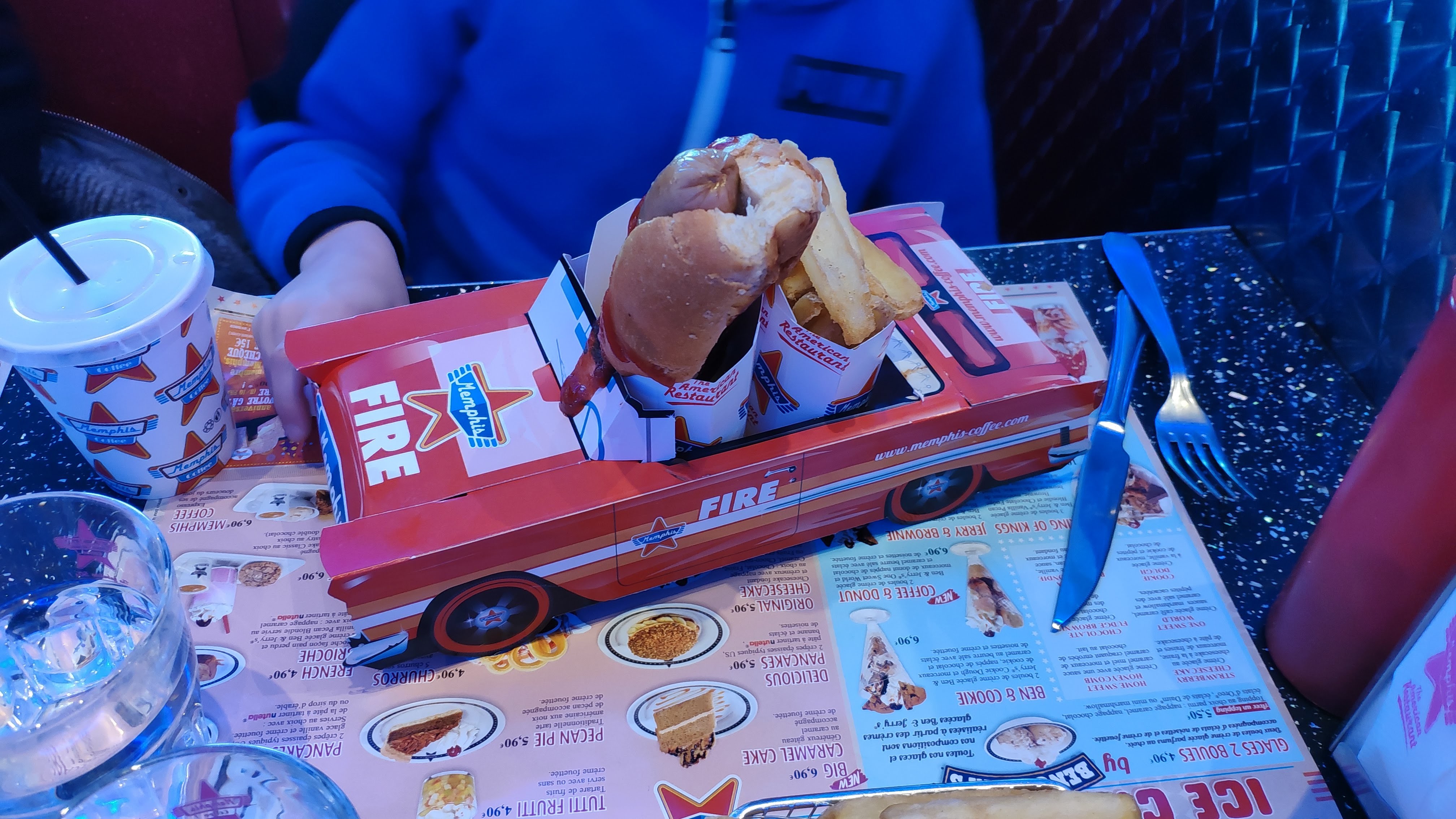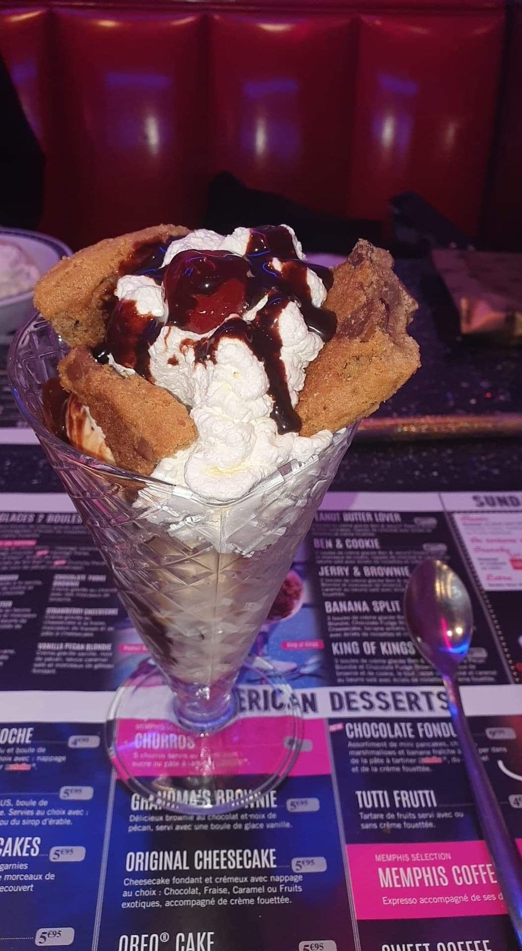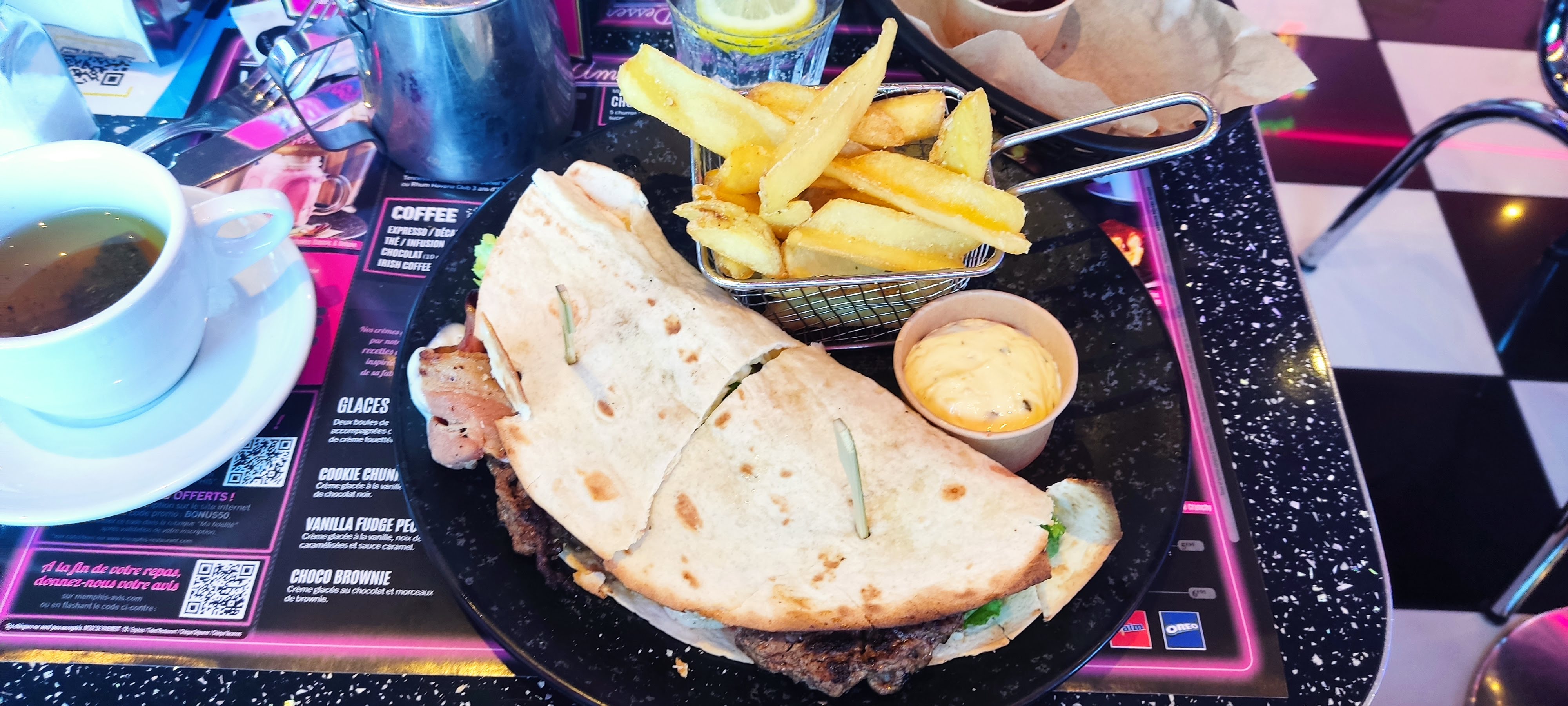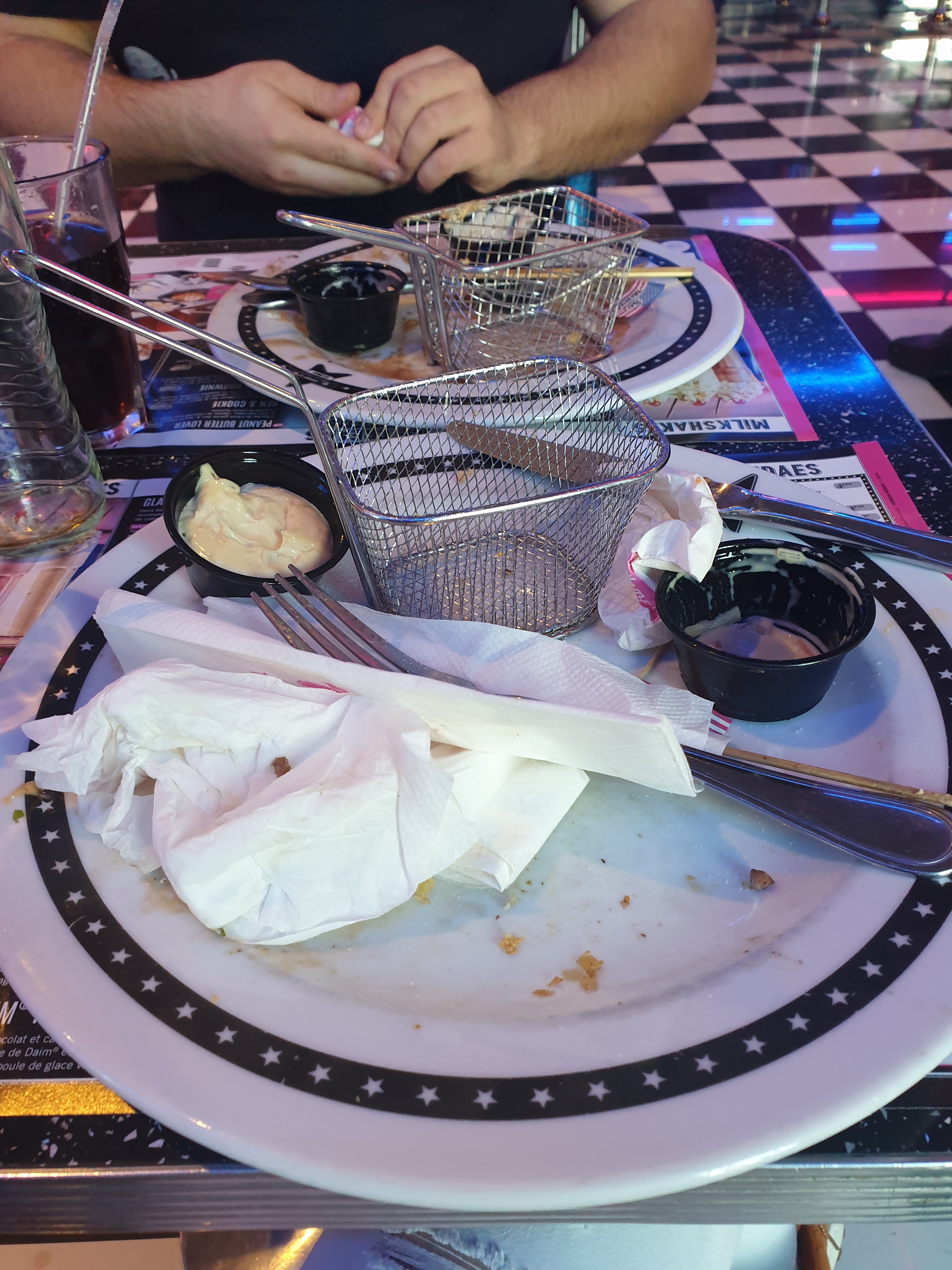 Tout s’est bien passé la serveuse s’est adapté à mes demandes alimentaires pour enlever certains ingrédients sur mon plat et dessert nourriture très bonne style diner américain deco sympa seul point qui m’a pas plus je prend boisson à volonté on a l’impression qu’il font exprès a mettre longtemps pour les amener pour pas qu’on en redemande alors que c’est à volonté surtout que j’avais demander bien bien à l’avance et plusieurs fois. Sinon on reviendra merci au barman qui nous a encaisser pour sa bonne humeur on reviendra