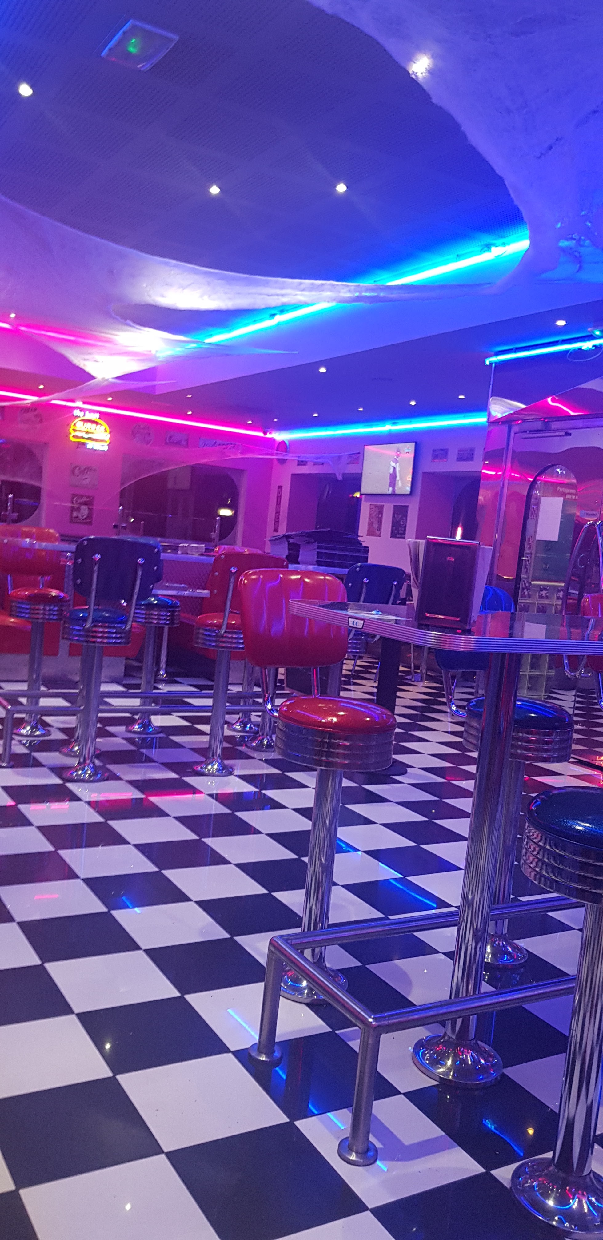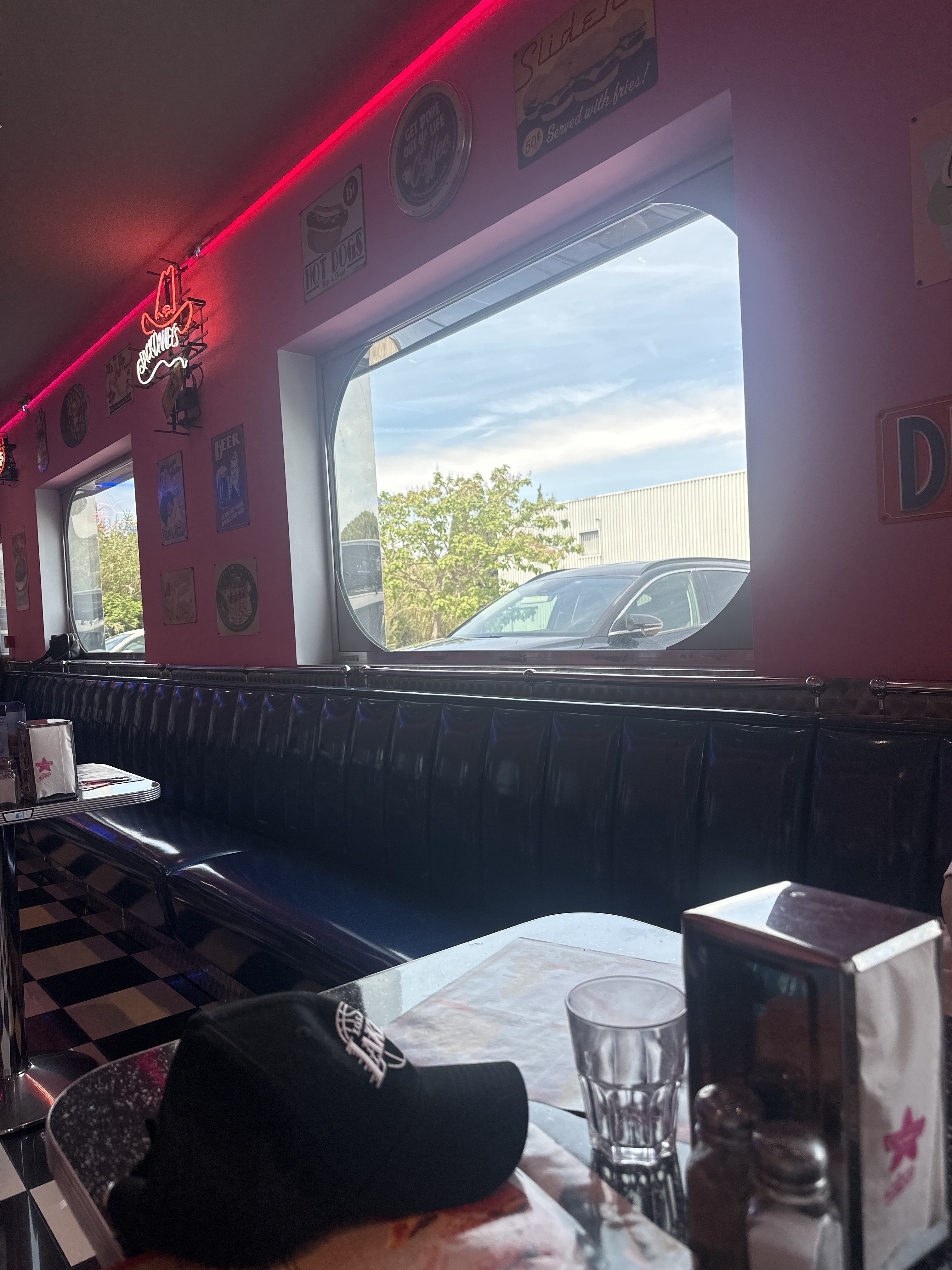 Le lieu est sympa. Ambiance dîneur américain année 50 Pin up on a l'impression d'être dans une série tv c'est amusant !