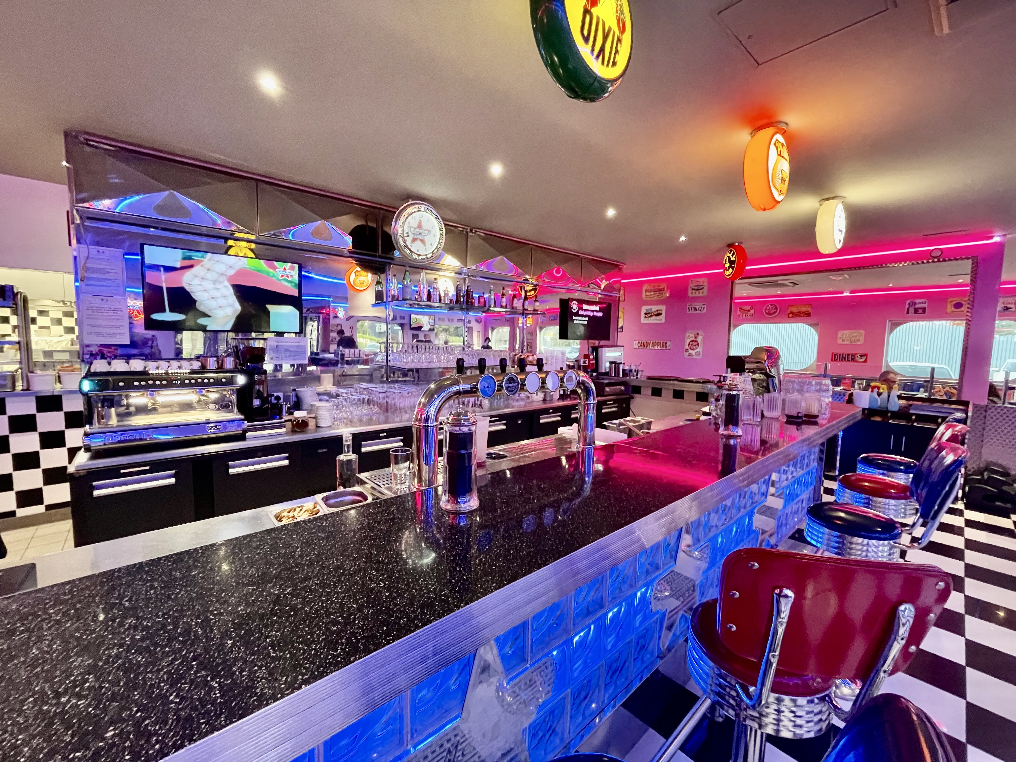 Excellente ambiance US des années 60, décors du sol au plafond en passant par les murs aux couleurs sixtie's. Serveurs et serveuses super agréable, souriant. La cuisine est bonne et généreuse. Une excellente découverte. 👍