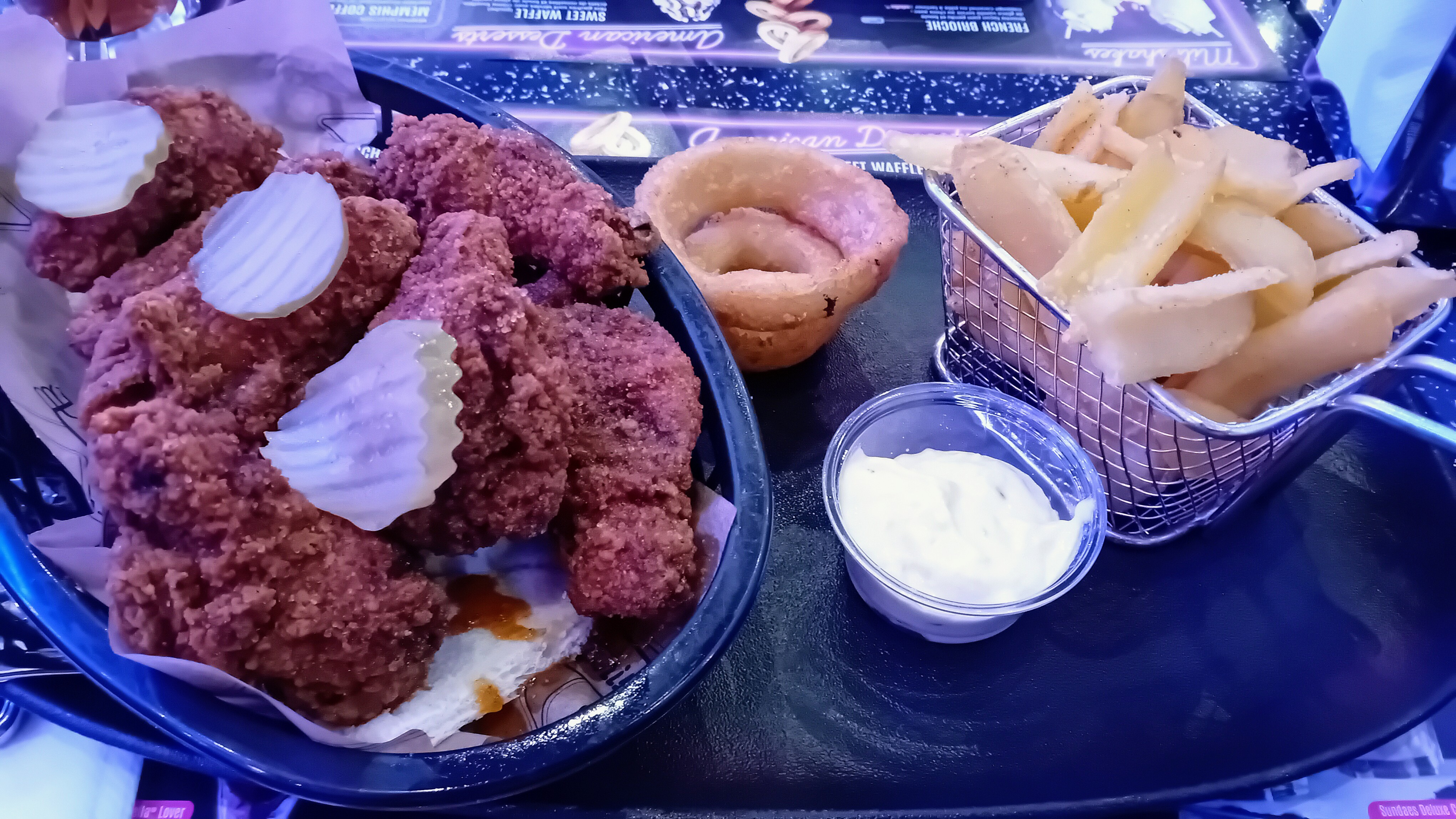 L'accueil, le personnel, au top. Côté cuisine, vraiment excellent. J'ai commandé un Mix tenders & wings ainsi que le dessert milkshake OREO un régal, avec une option boisson à volonté non négligeable. L'ambiance US des années 70 change et rend cette expérience beaucoup plus dépaysante que tous les fast-food des environs. N'hésitez surtout pas à y faire une pause si vous êtes vers la GARDE, nous recommandons ce restaurant, et nous reviendrons ☺️👍🏽