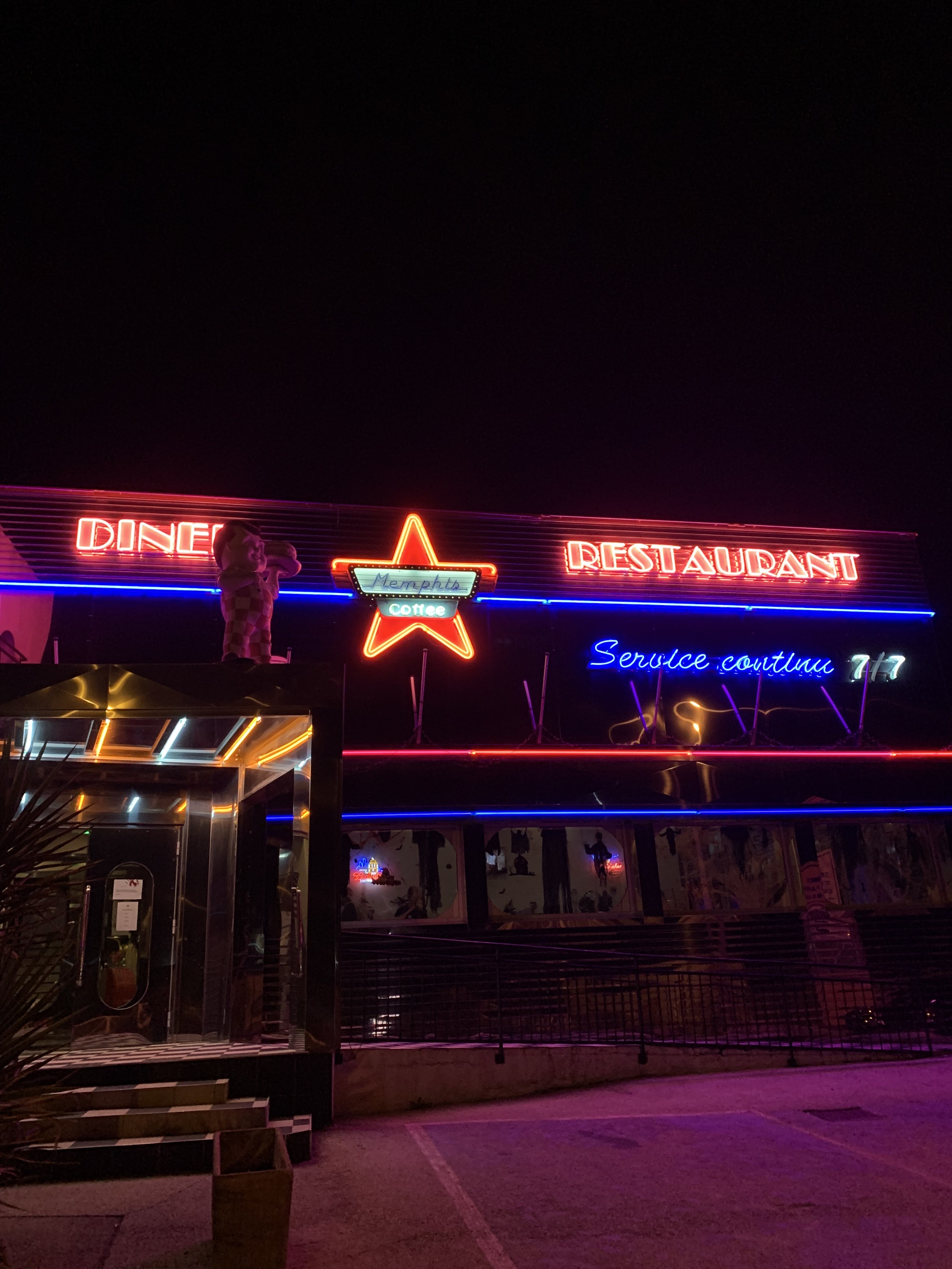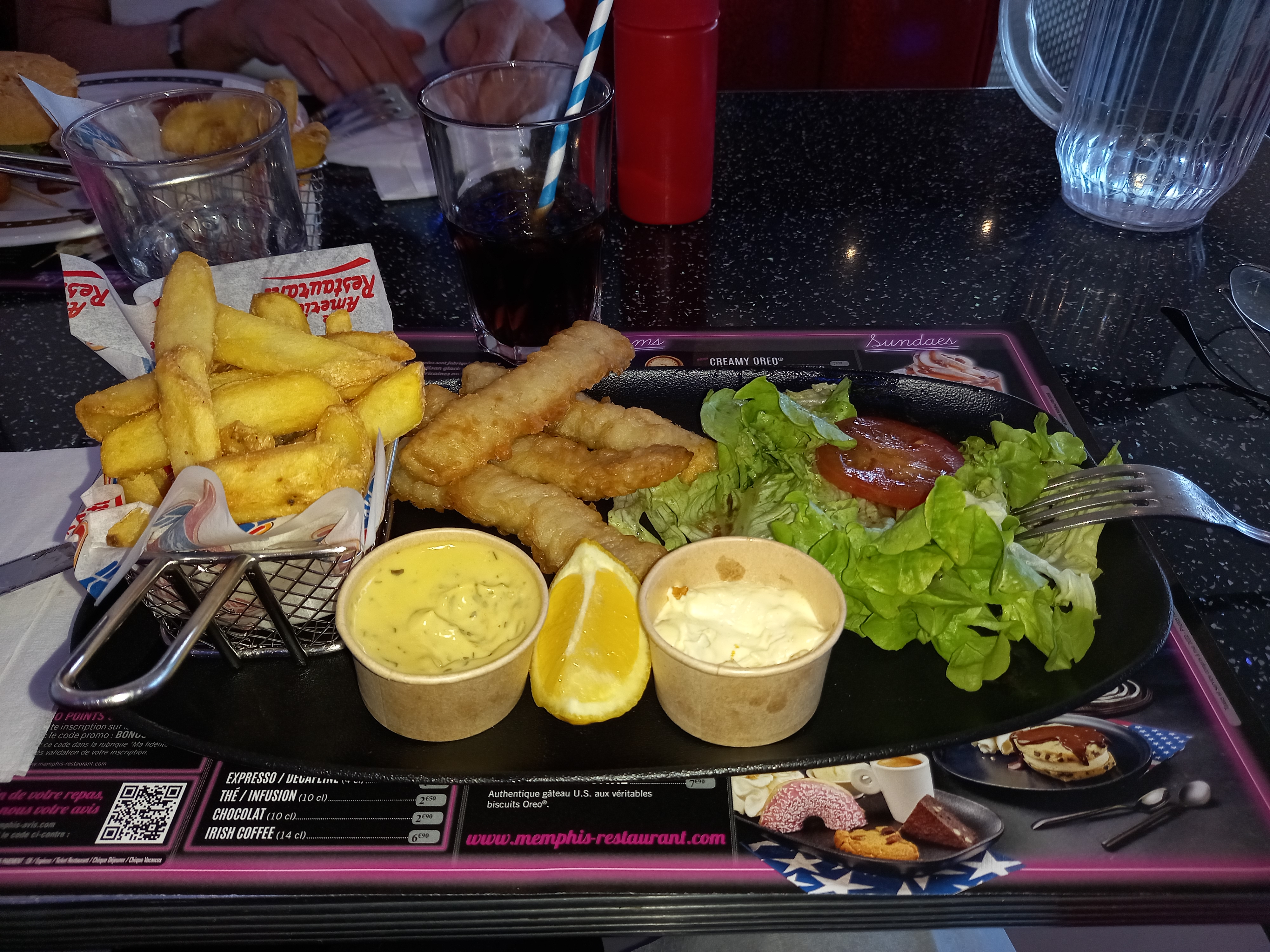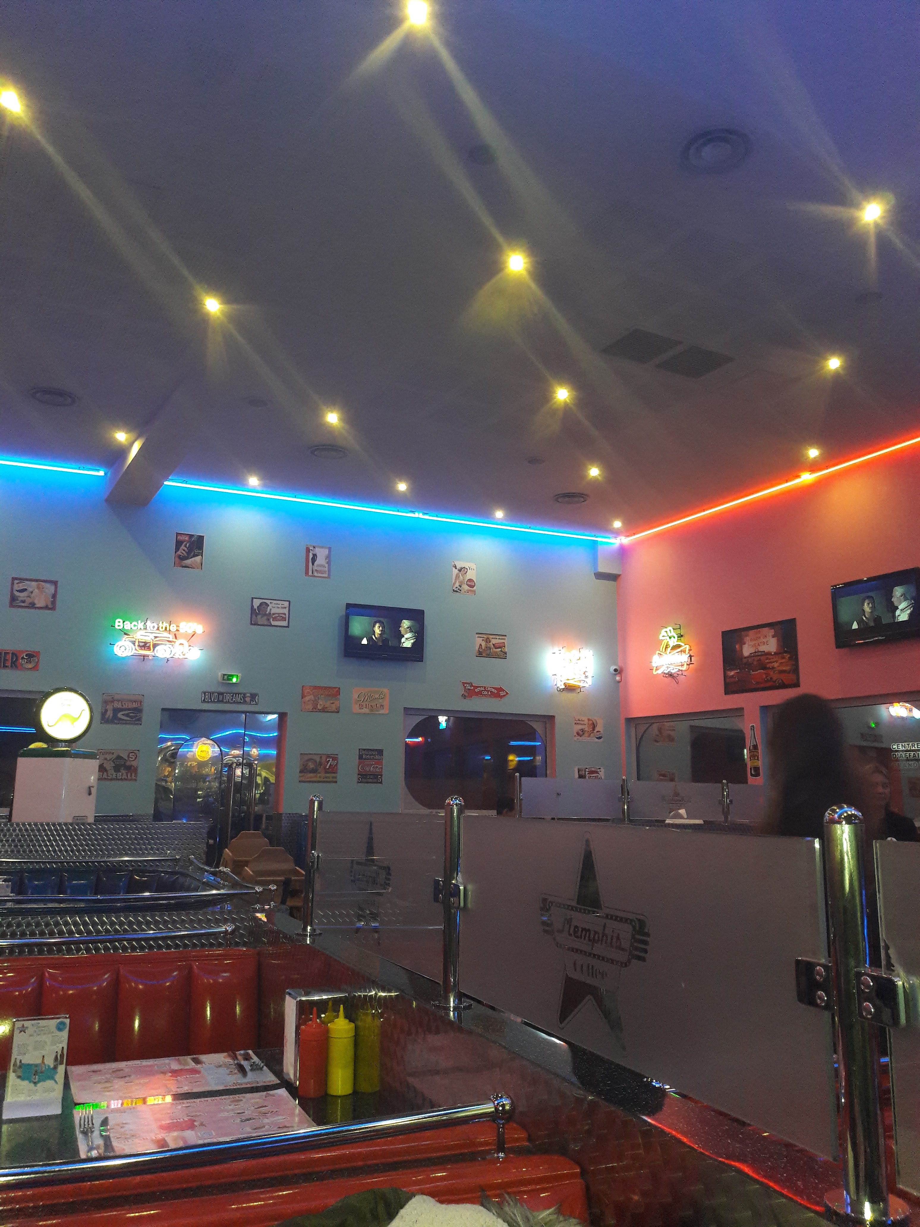 Super restau vintage et américain. Menus copieux et cuisine honnête. Mini bémol sur les desserts du Memphis café le cookie et le brownie sont moyens. Boissons à volonté possible menu enfant bien servi et original (servi dans une voiture) serveur aimable et réactif.