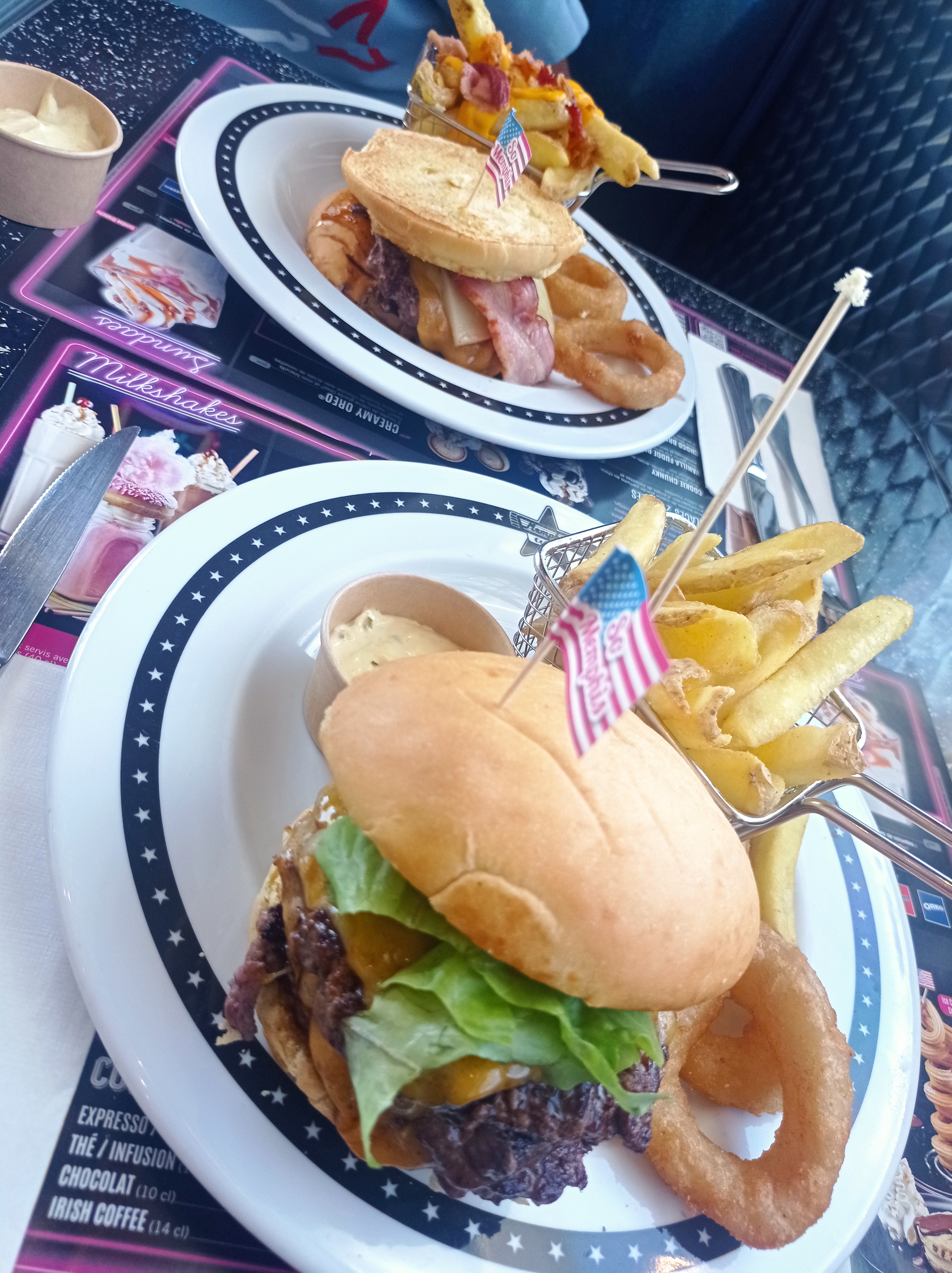 Accueil au top comme d'habitude avec un groupe de voiture américaines. Patrons toujours partant pour mettre en avant les voitures devant le restaurant pour rajouter une petite animation. Cuisine au top jamais déçu! Service impeccable! Hot Chicken burger cheddar and bacon tout simplement excellent (simple et efficace, sauce 'e pique au final pas tant que ça donc privilégier la plus piquante si vous aimez ça)