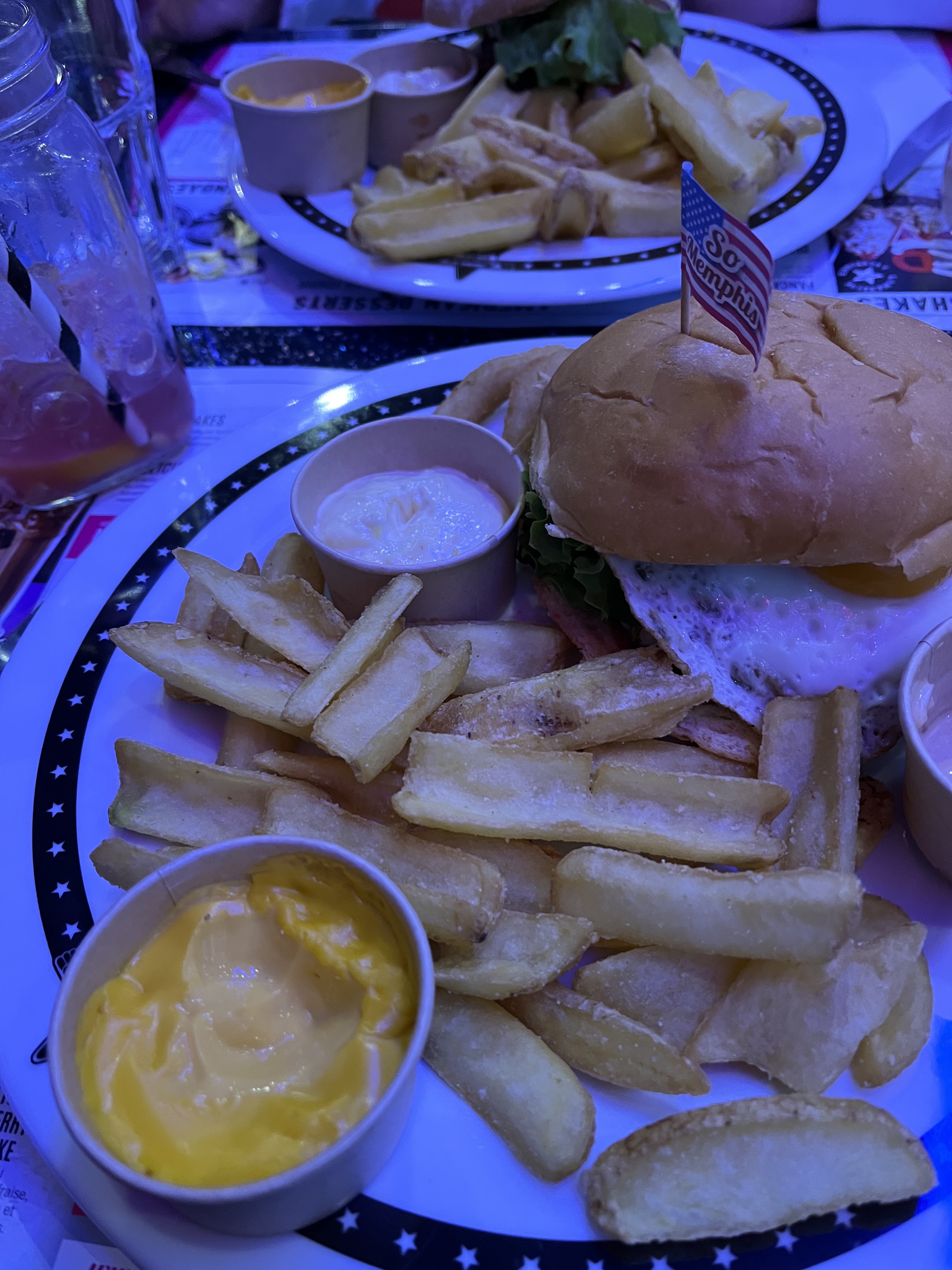 Je suis un habitué du restaurant depuis longtemps et g tjrs plaisir à y aller...mais la...lundi 26 juin on dîne avec ma femme,elle prend le Burger guacamole,chèvre....on ne mange pas la même chose sauf le milk shake au cactus ki a un gout de paic citron...4h après ds la nuit elle est malade,fièvre,nausees,douleurs abdos...intoxication alimentaire ...mardi couchée,malade...vue aux urgences, scanner au vu des douleurs et bilan,c bien une intox avec infection de l'intestin grele( ileite aigue)...traitement antibios et tout le tintouin....nous n'irons plus au memphis....plus confiance...manque d'hygiène du personnel ,coup de chaud sur les aliments, produit périmé???? On ne saura pas,Des analyses sont tjrs en cours pour déterminer la bacterie..