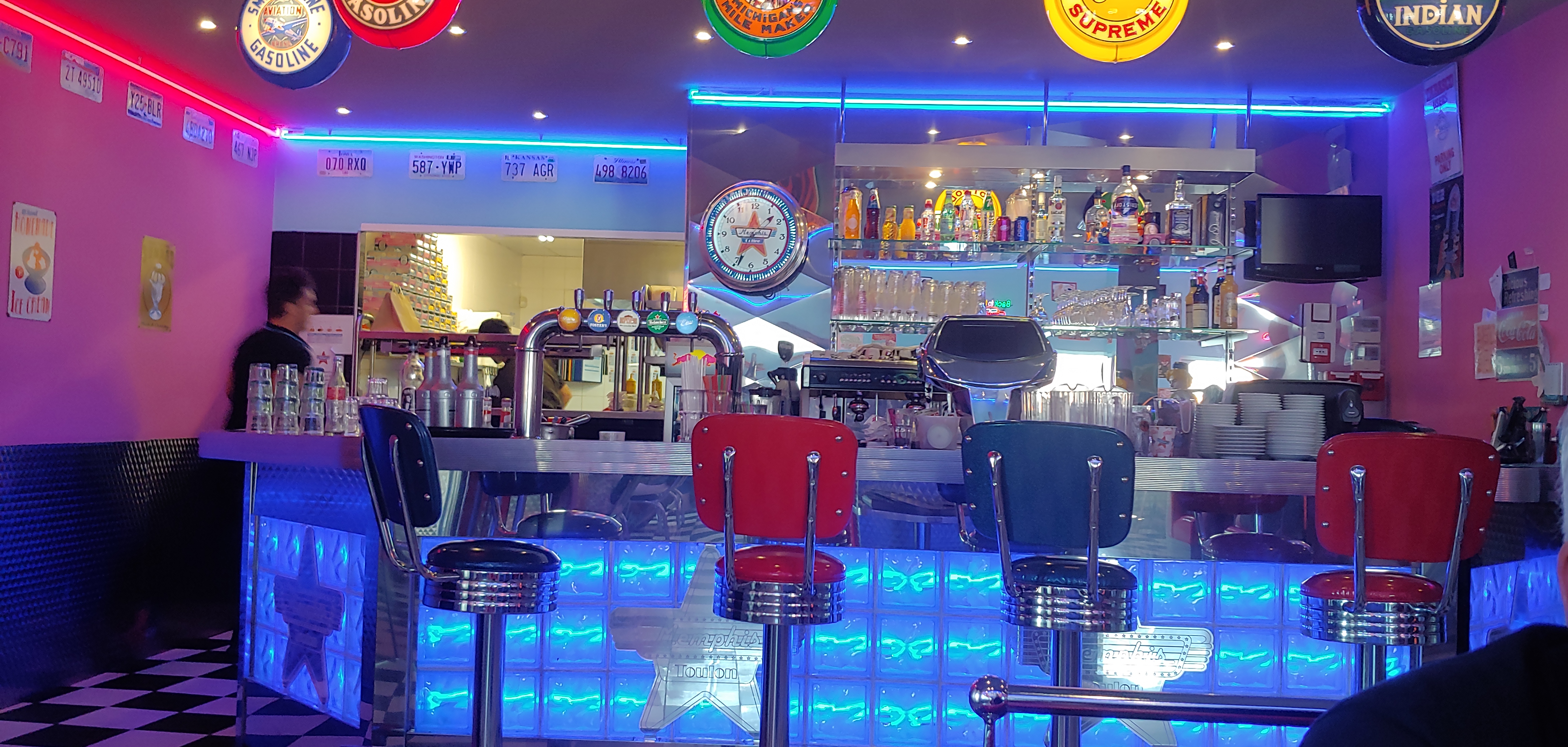 Accueil parfait! Tout le monde est souriant! C'est très agréable! Le décor est typiquement us et retro ! Vinyle et cadre photos d'Elvis ! Service hyper rapide! Mojito très bon la juste dose de rhum ! Je n'ai pas aimé la cuisson du pain tigre autrement tout le monde c'est régalé! Je recommande malgré l'addition un peu élevé!