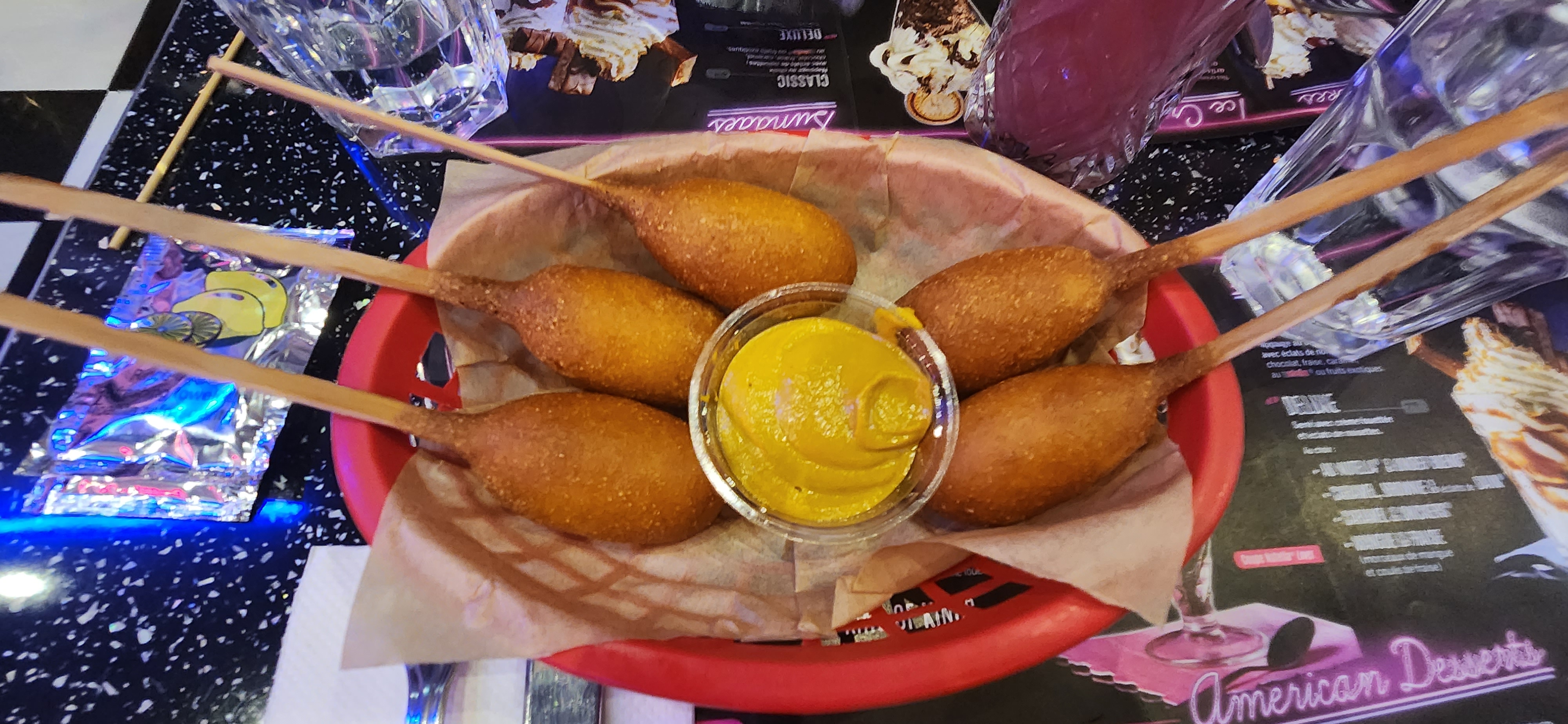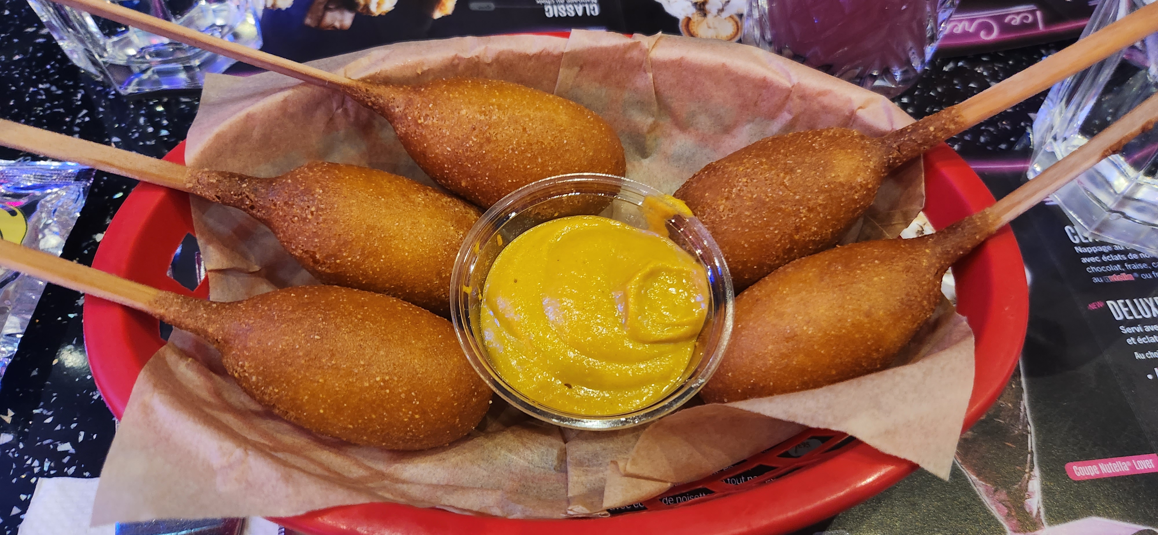 C'était pour un déjeuner d'anniversaire. Les hot-dogs et Burgers sont bons. Le steak est tendre dommage que l'accompagnement était fade sans compter que le coleslaw n'était pas aussi bon qu'au paravent. Pas mal de choix de fritures pour les enfants. Le serveur accueillant et sympathique. Nous avons pris le grand panaché de fritures 20 pièces à partager + les boules de patates. Nous étions 5, nous avons eu 2 minis pots sauces barbecue et crème pour accompagner ces 20. J'ai demandé 2 mini sauce supplémentaires car pas assez pour 4. On m'a demandé 2 euro de plus pour les 2 minis sauces. Nous avons payé presque 130€ pour le déjeuner un petit geste commercial serait pas mal vu la taille des pots. Pas commerçant comme pratique.