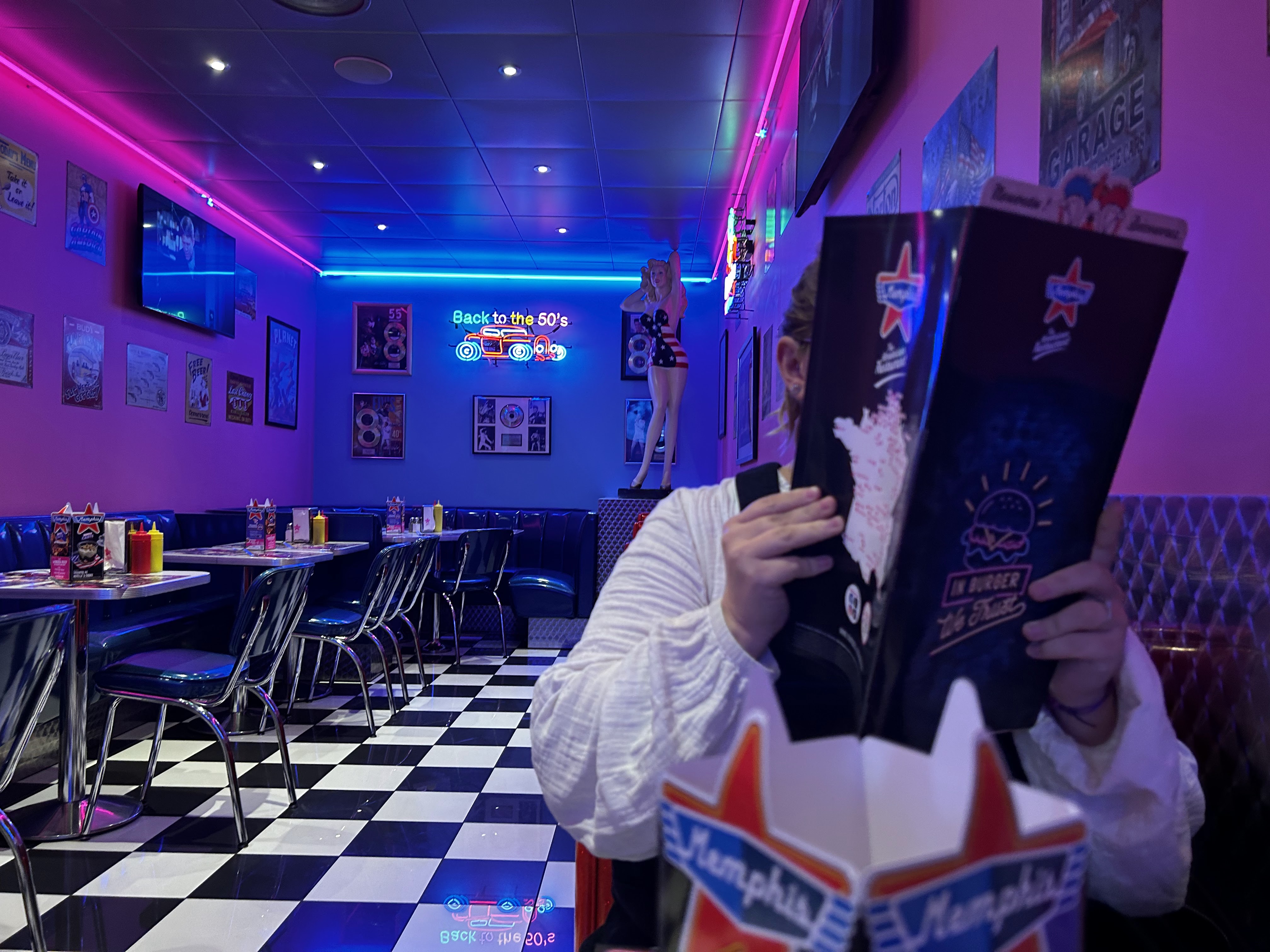 J'y suis allée avec mon papa, première fois que je mange dans un restaurant américain vintage. J'ai adoré , on se croit trop en Amérique ! Les menus ont tous l'air appétissants et les desserts également ! Les serveuses sont agréables. Je suis sortit le ventre bien remplit et les étoiles pleins les yeux.