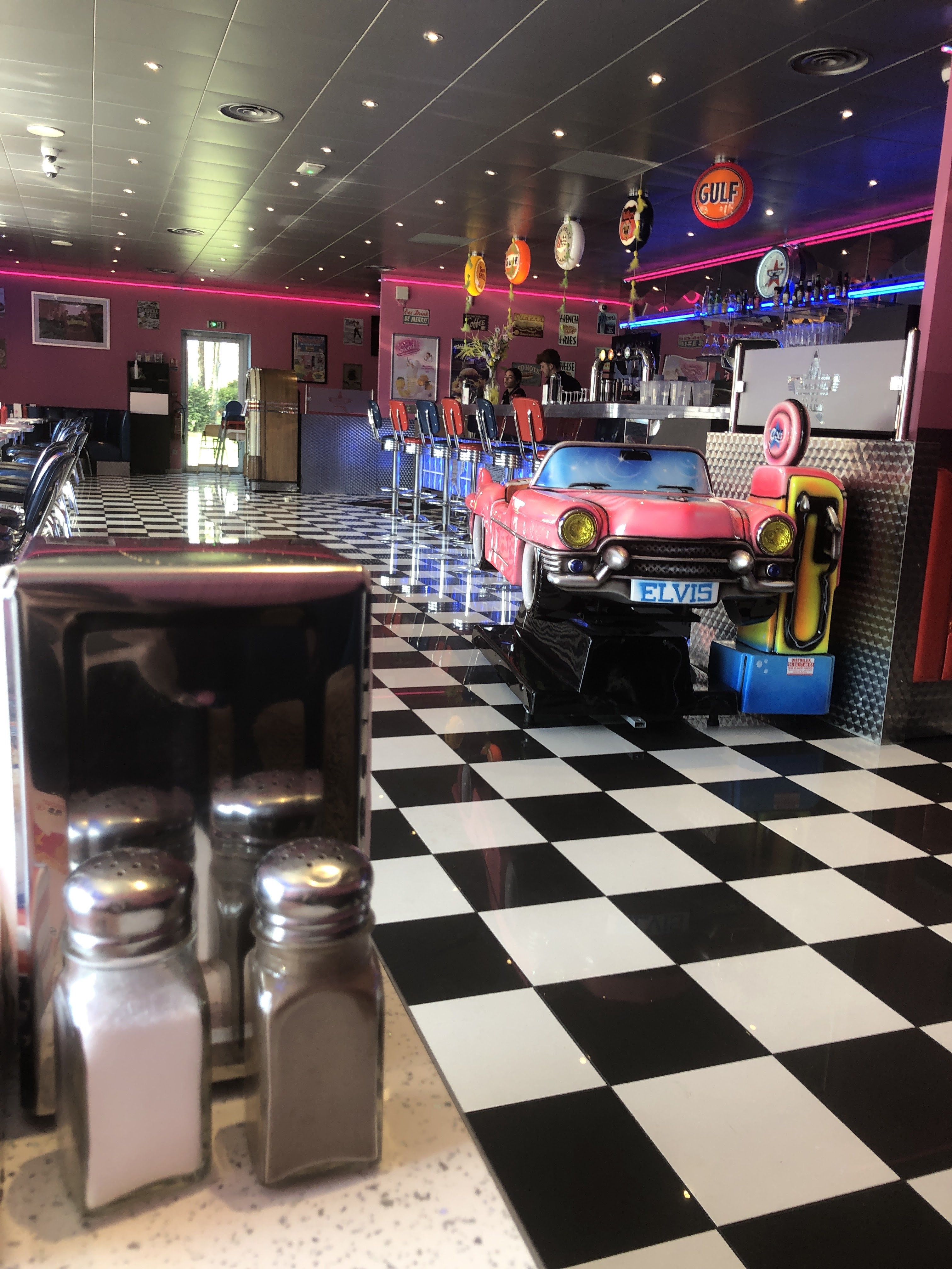 Endroit calme et agréable on retrouve l'ambiance des années 50, la décoration est en adéquation avec le restaurant prise de commande rapide et service efficace.