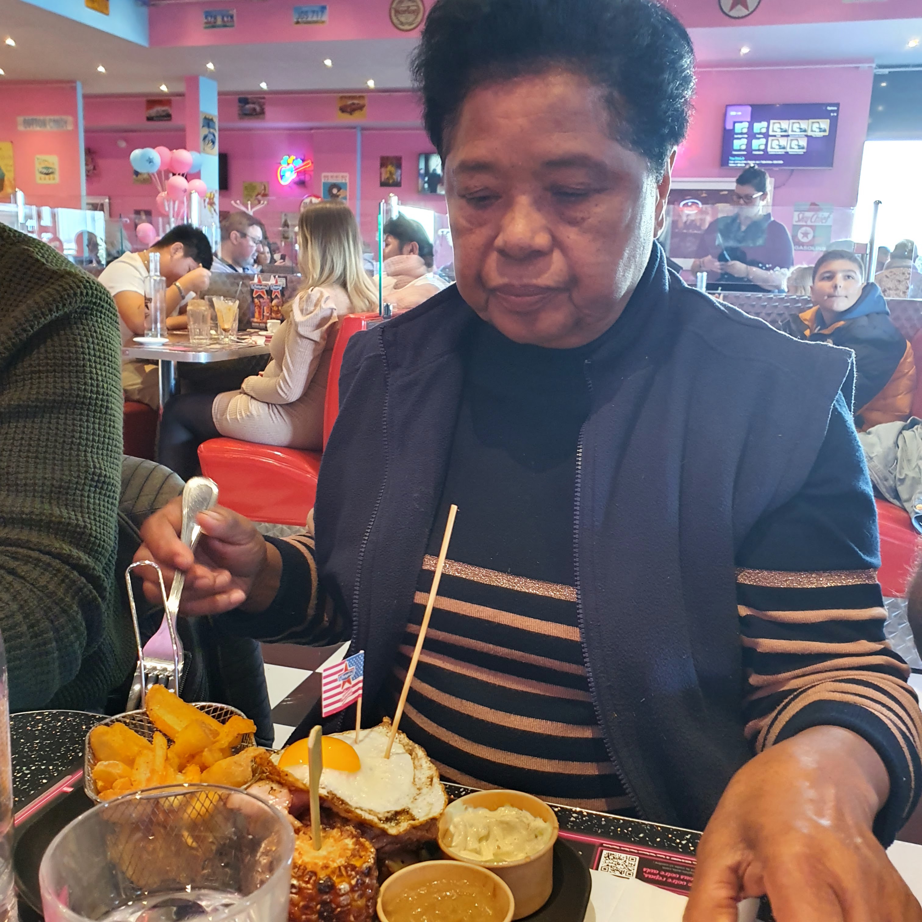 Ambiance dinner américain, super cadre qui fait voyager, plat très bon et personnels accueillant. Je recommande fortement