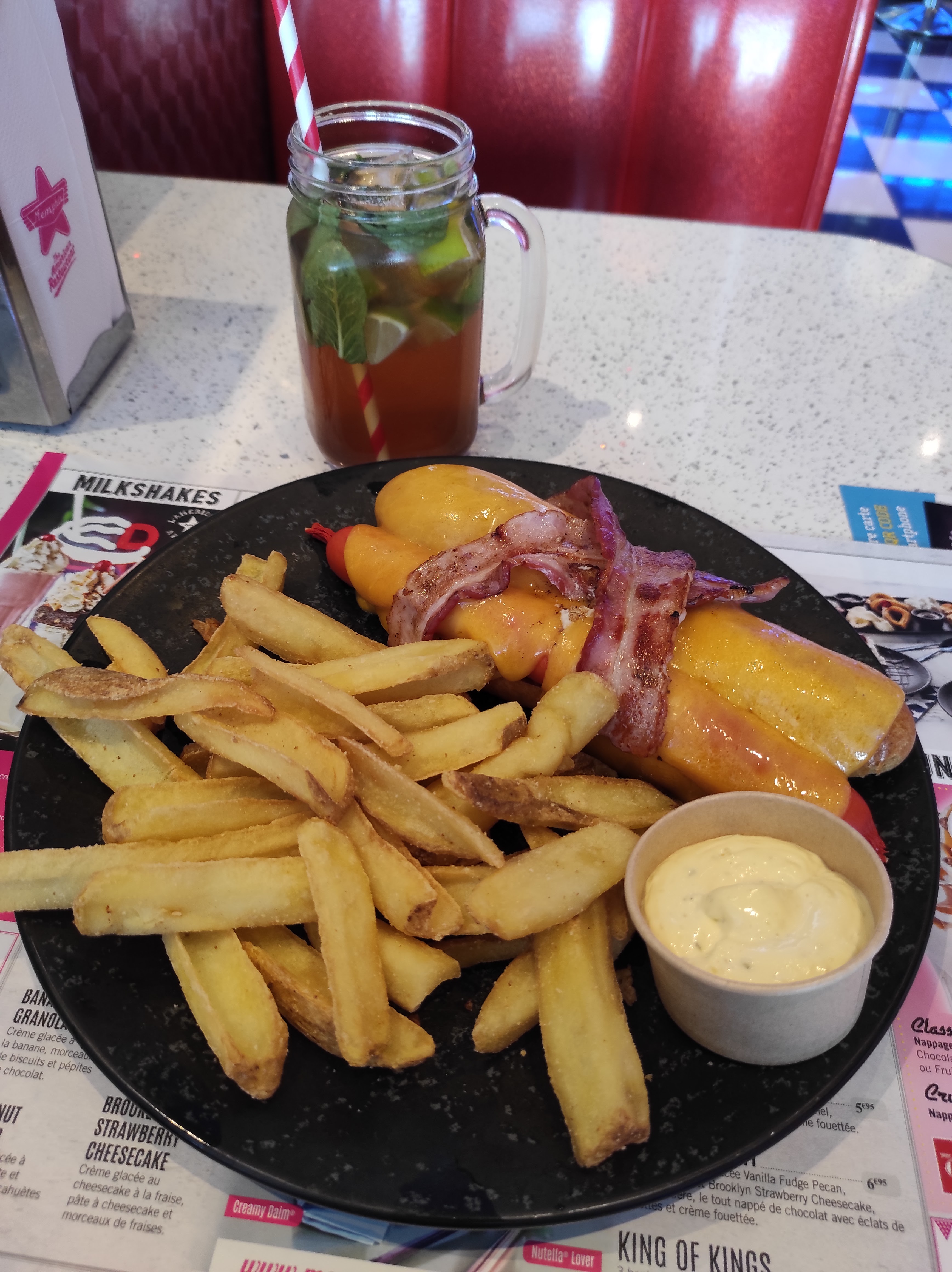 Les enfants adorent et nous aussi. Certe ce n'est pas de la grande cuisine mais c'est toujours super bien tenu les bergers super bon,le service au top. Les enfants sont servis rapidement et a chaque fois j'ai l'impression de faire un bon dans des séries télé américaine de l'époque 😅 a faire si on veut manger un super berger ou les meilleurs hot dog 😅