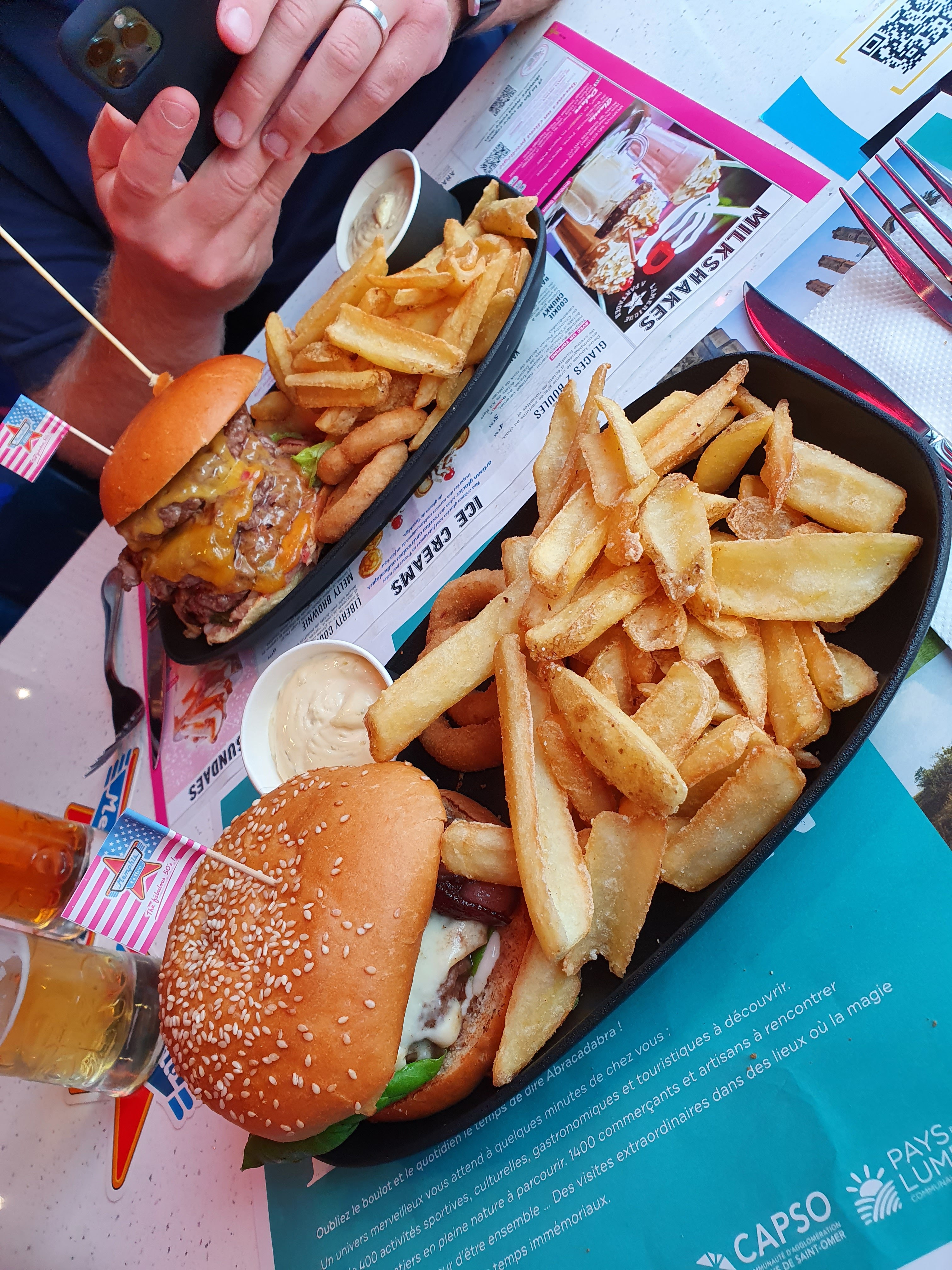 Ça change a st omer ! Petit retour dans les années 60 aux states ! Très bon hamburgers, belle carte des desserts , personnel agréable et bonnes formules repas. Je recommande. Peut être un peux long.