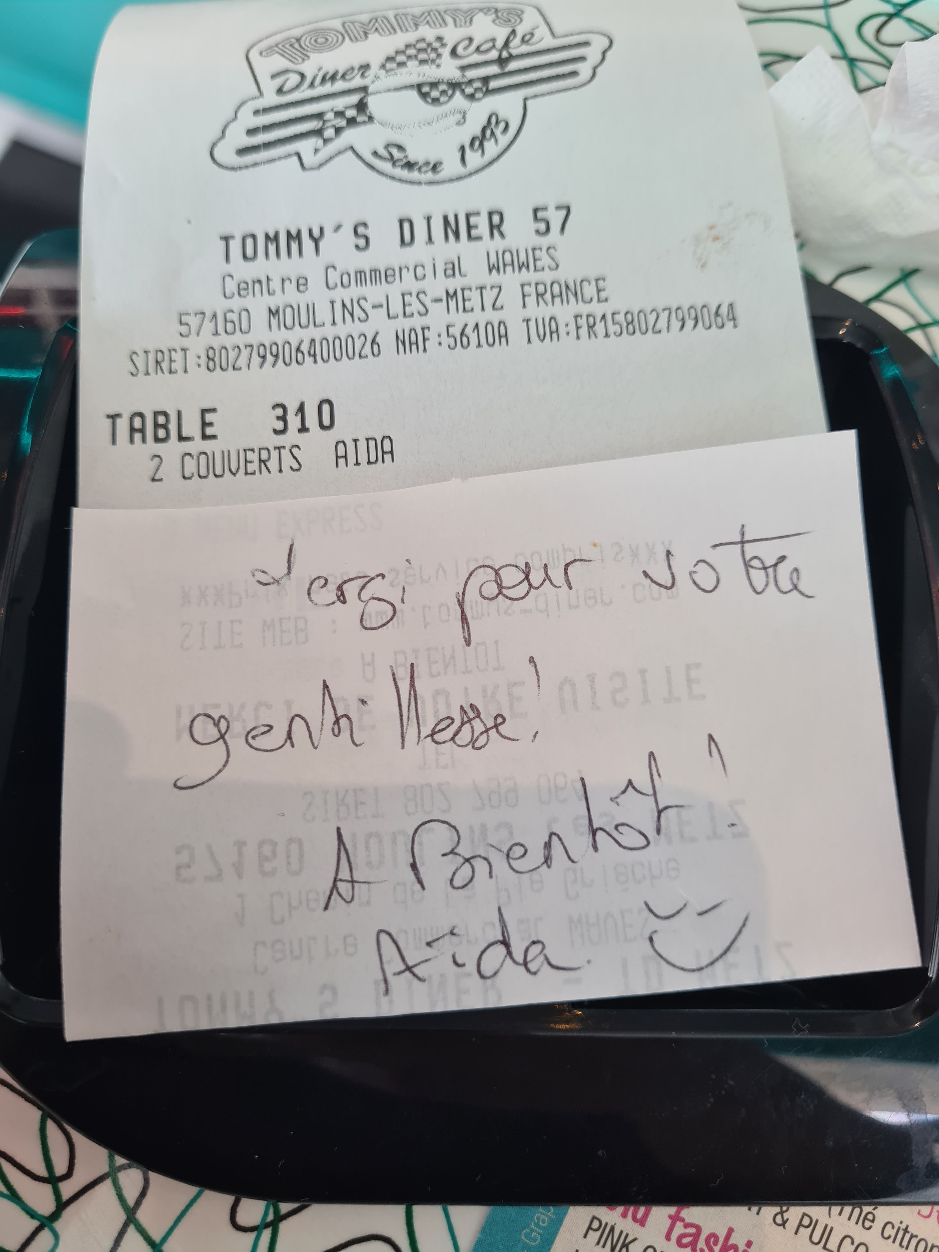 Nous avons était reçu et servi par Aida, personne très accueillante et souriante, service rapide très bon rapport qualité prix. Et petite attention sur le ticket. Merci à bientôt, au plaisir 😉