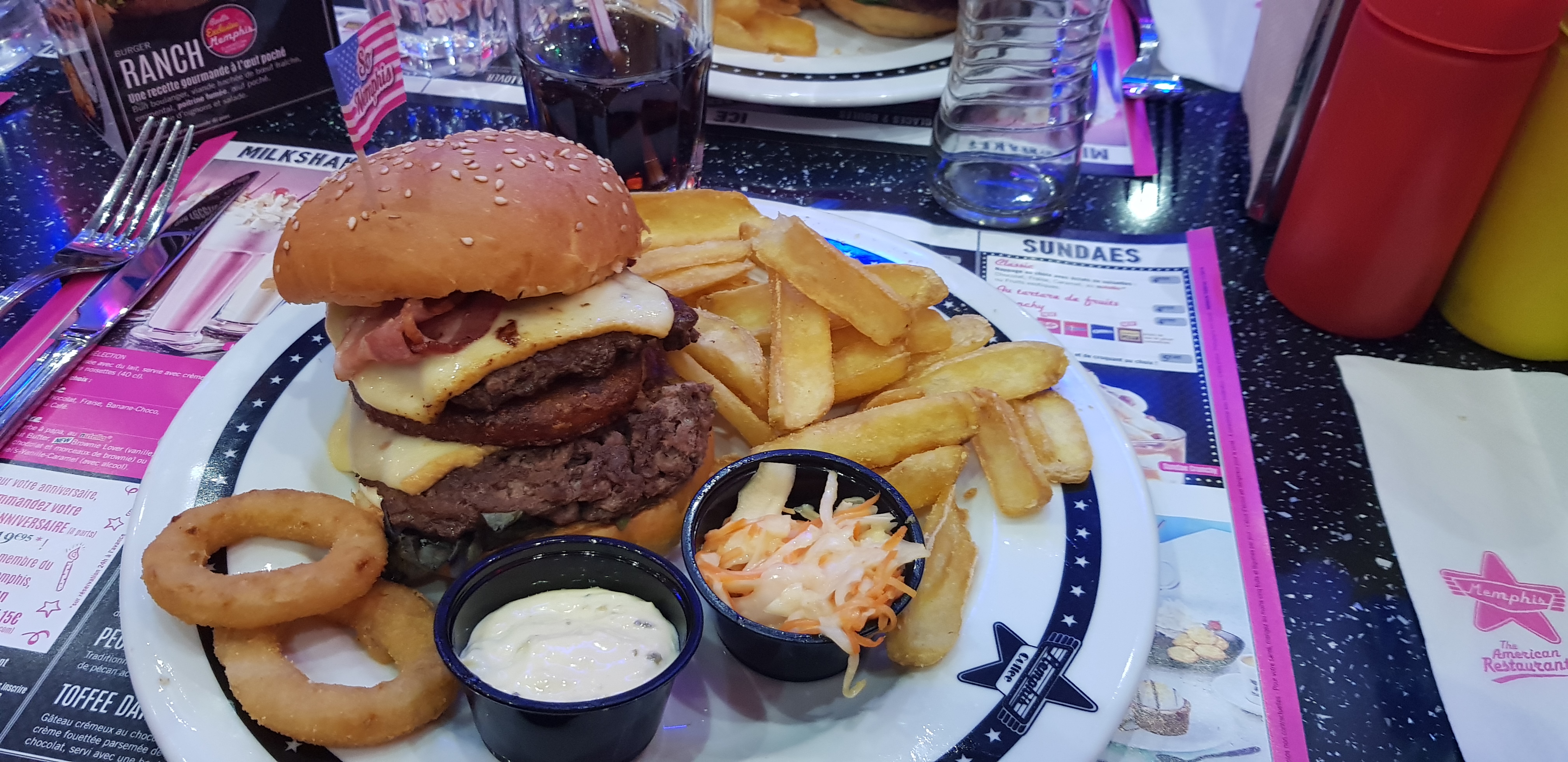 Repas de qualité , du choix , c'était super bon !! Et que dire du service , même avec du monde , le service était rapide et parfait Et la sauce Memphis une tuerie !!! Le décor à l'américaine pas mal du tout !
