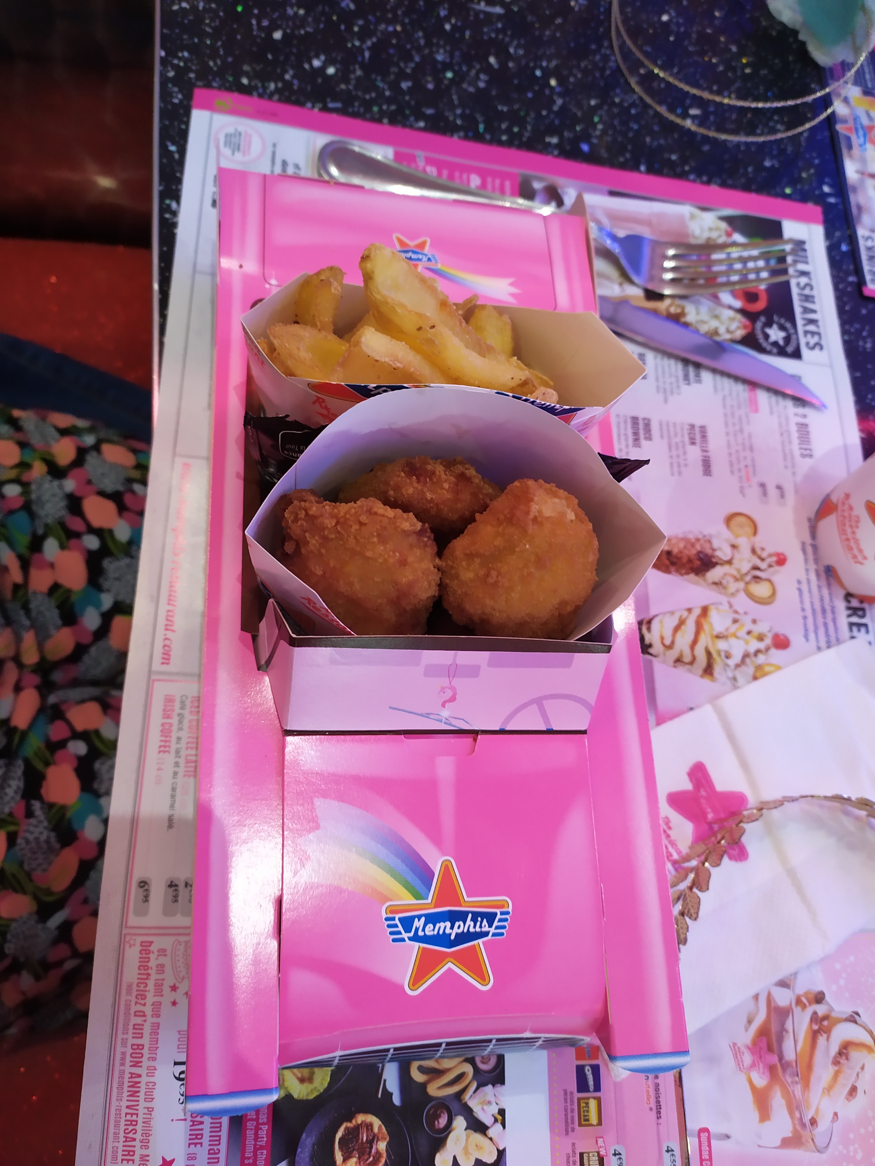 Que du positif rapport qualité prix avec leur formule adéquate et bien servi. Menu enfants généreux. L'ambiance avec les banquette des années 60/70, les néons, la déco murale et le magnifique juke box mis à votre disposition et gratis. Rien à voir avec un Mc do ou autre concurrent.