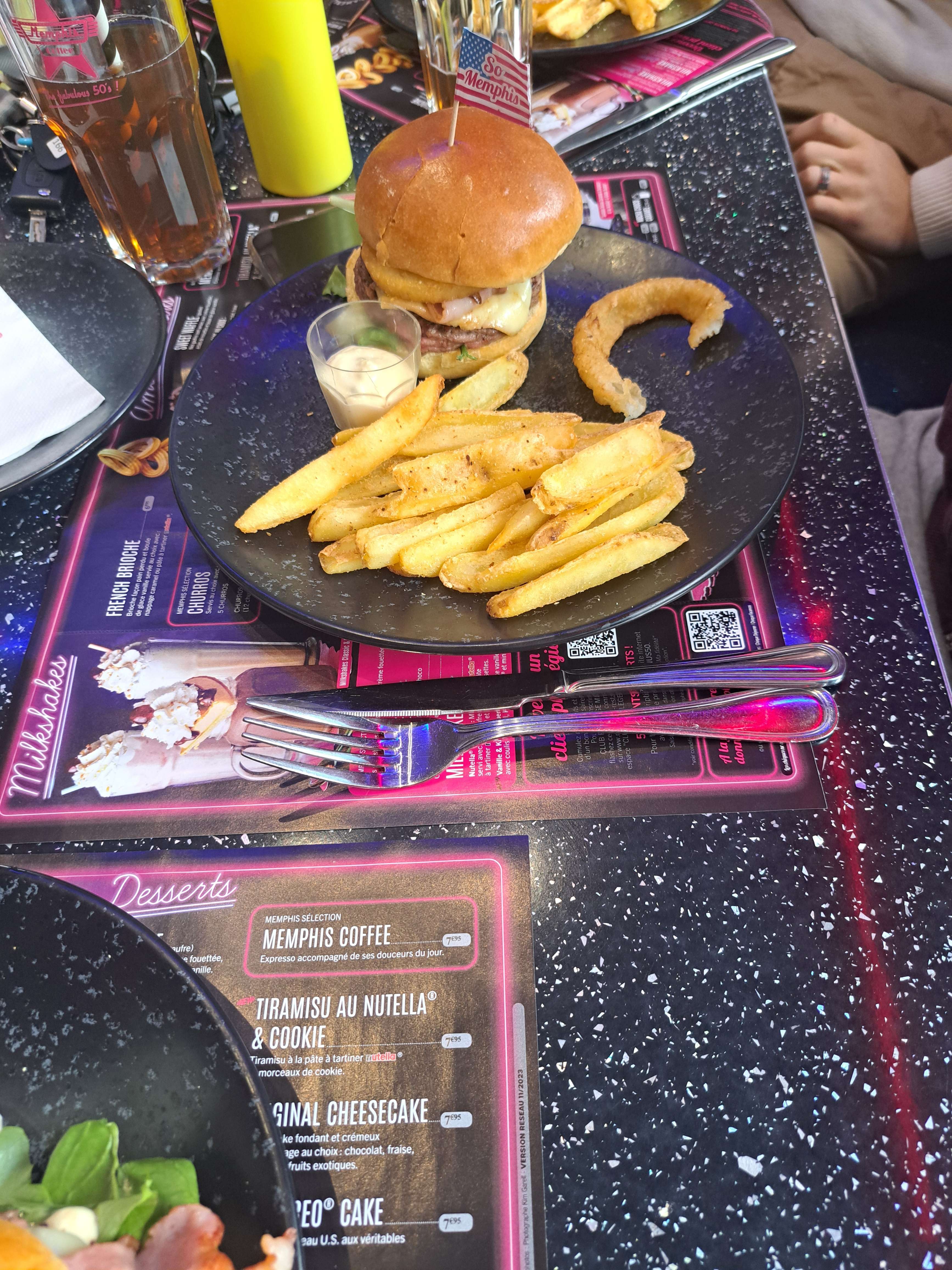 1ère expérience chez Memphis ! Le Burger était très bon, rien à redire Mais le service est long, Dommage, pourtant nous l'avions spécifié car le temps du déjeuner était compté. A améliorer !