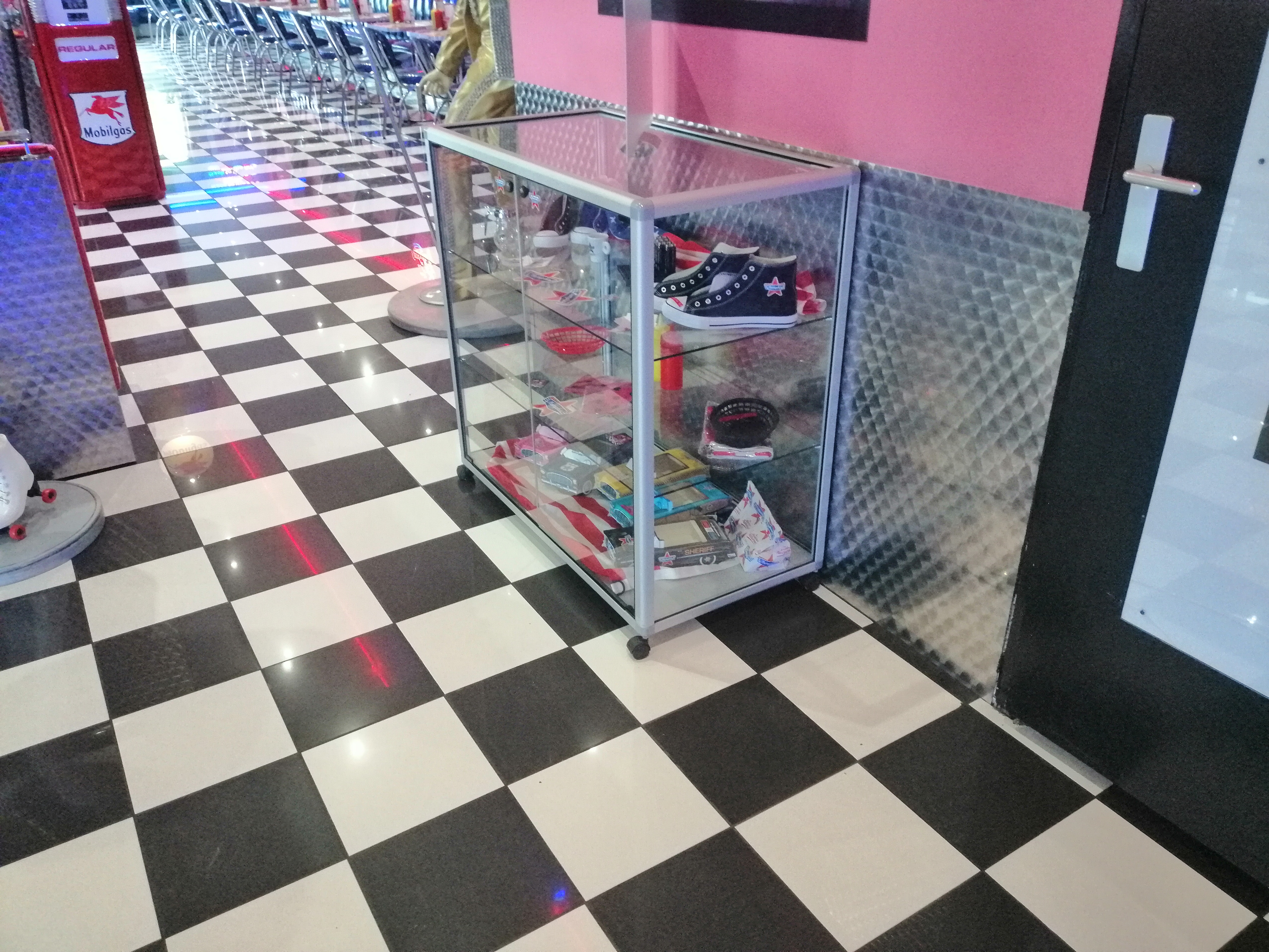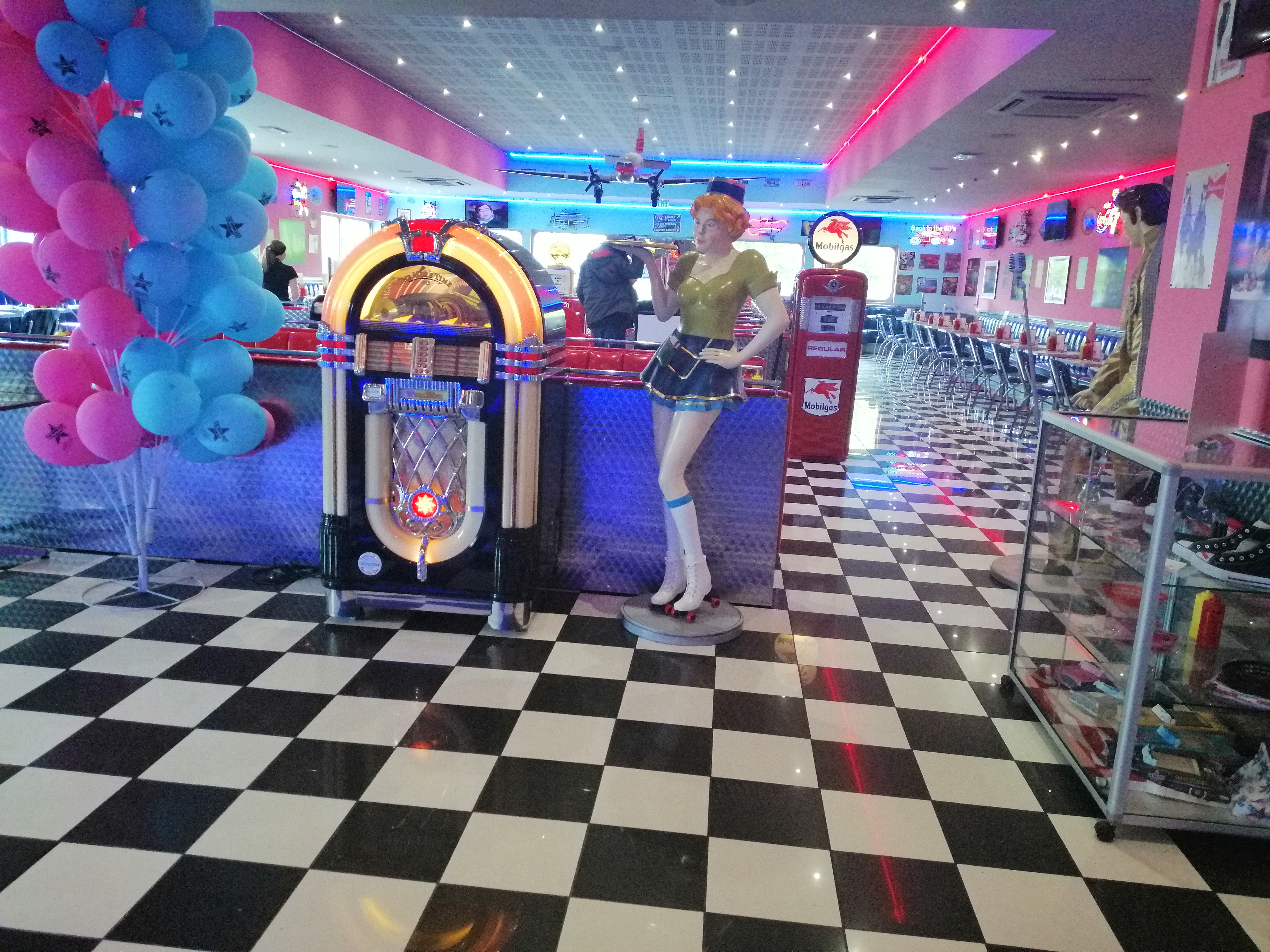 Décoration comme dans les années 50, assez rock'n'roll. D'ailleurs, j'ai mis 3 étoiles c'est juste pour la décoration. Première chaîne de restaurant qui ne fait pas de cuissons bleue concernant un steak haché ! J'ai été déçue ! De plus, j'ai eu la gastro 2 jours après (à savoir qu'elle a une incubation de 48 à 72 heures). Si vous voulez regarder les avis concernant les malades, faites-y avant d'y aller manger ! Inconvénient, le parking est trop petit !