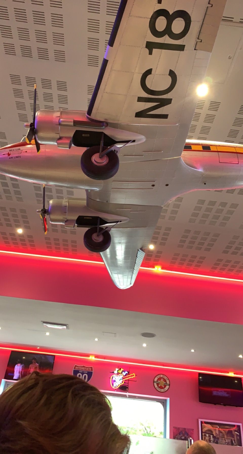 Ambiance et décoration américaine des années 50, super 👍🏻. Burger bon et prix correcte, beaucoup de choix à la carte, boisson à volonté... Ouvert non stop le week-end du déjeuner au dîner .👌😁