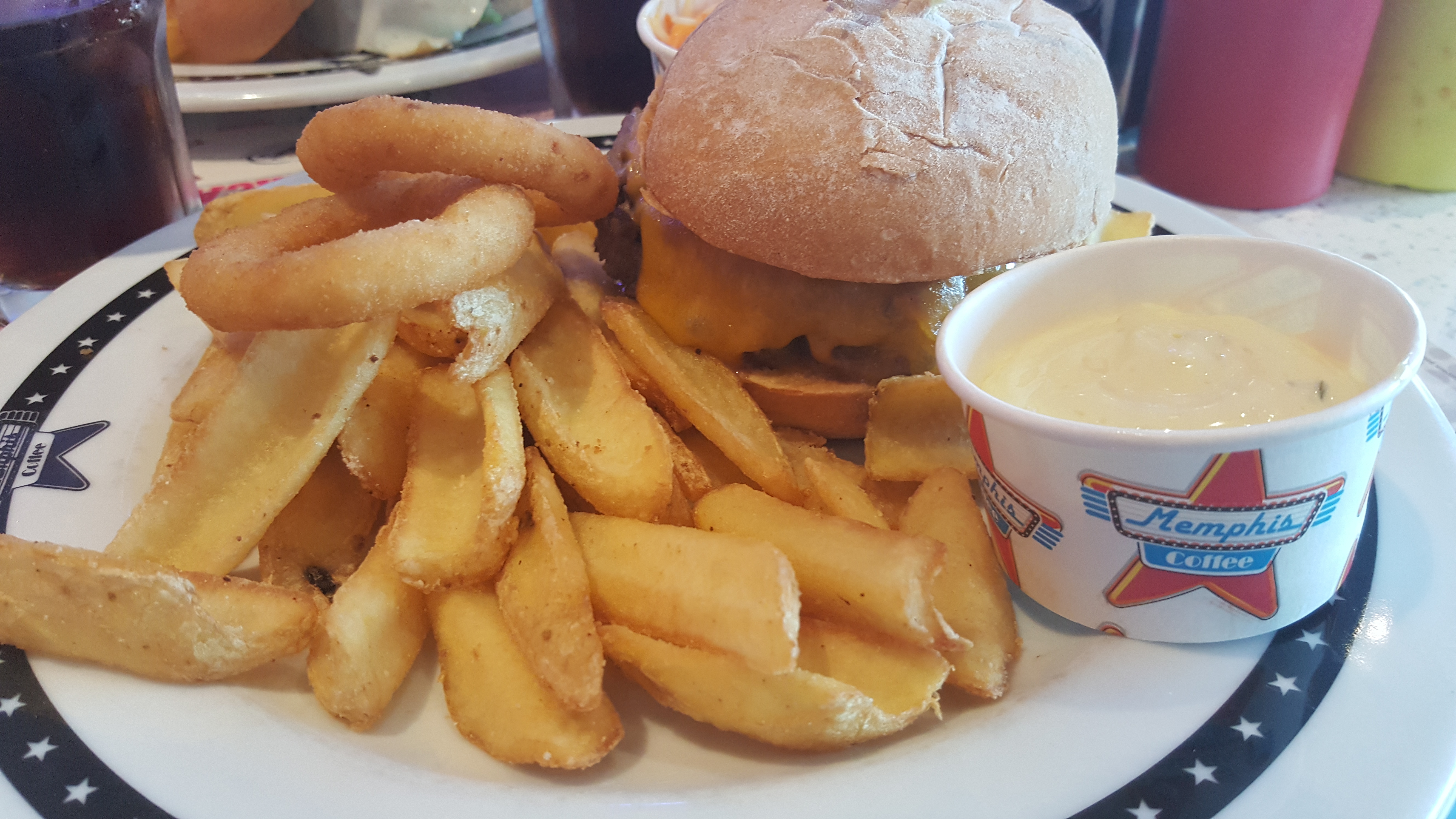 Nous sommes venus entre amis au menphis Le serveur était pressant alors qu'il n'y avait pas grand monde ... Je demande s'il y a bien du coleslaw avec les onions ring il me répond je ne sait pas mais je suis certain qu'il y en a avec les frites. Je prends donc les frites résultats pas de caleslaw dans mon assiette.... Le burger n'était pas bon et le guacamole à l'intérieur était passé !!! Pour finir le milkshake n'était juste qu'un lait au chocolat froid aucune glace dedans ... Nous ne reviendrons pas