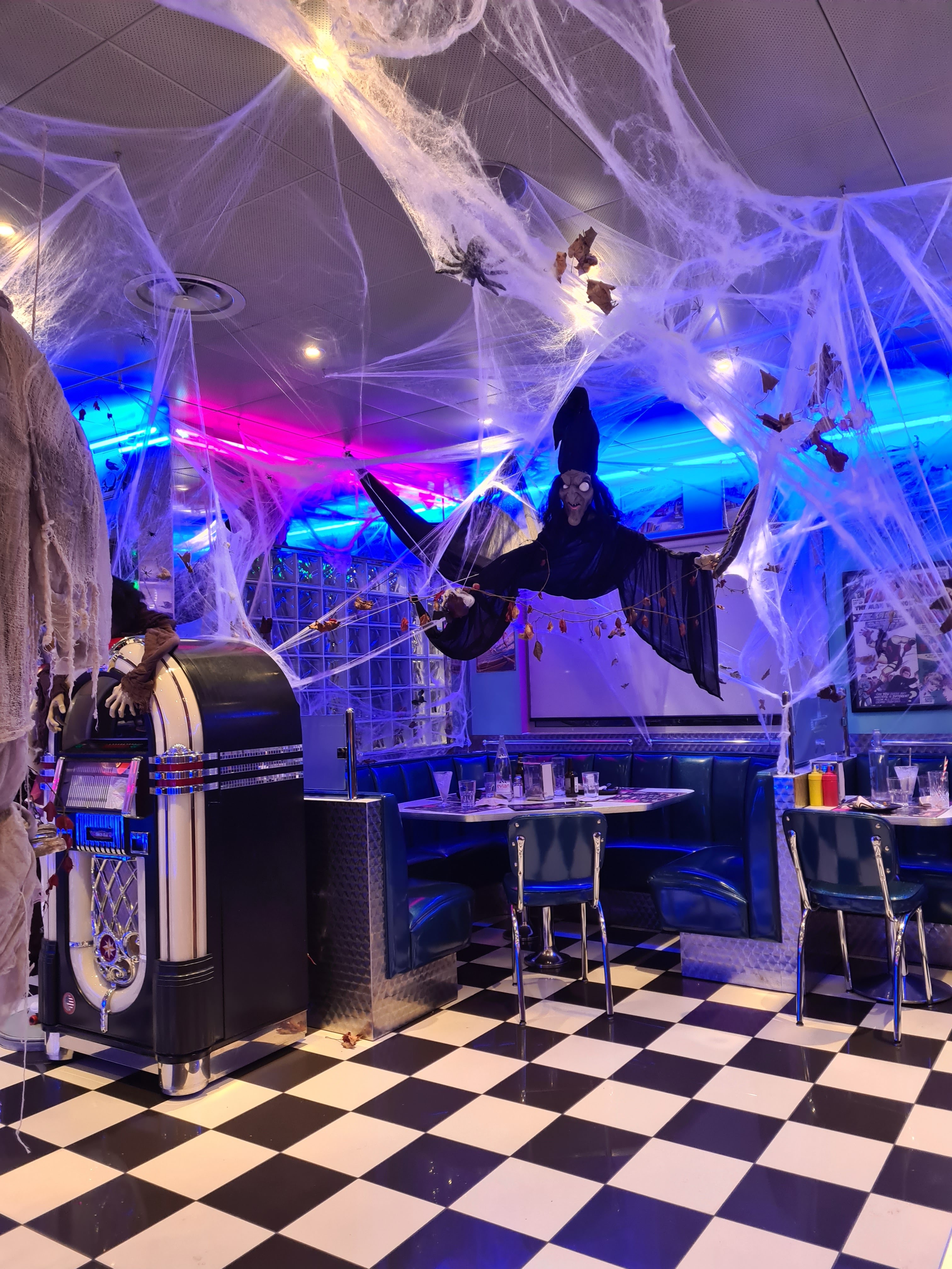 Déco que j'adore, tous les détails pour se plonger dans l'univers des années 60, et Happy Days sur les écrans 👍 que de souvenirs !!! Les serveurs sont très sympas et les menus variés, je recommande (par contre pour une famille de 7 comme nous c'est un budget !)