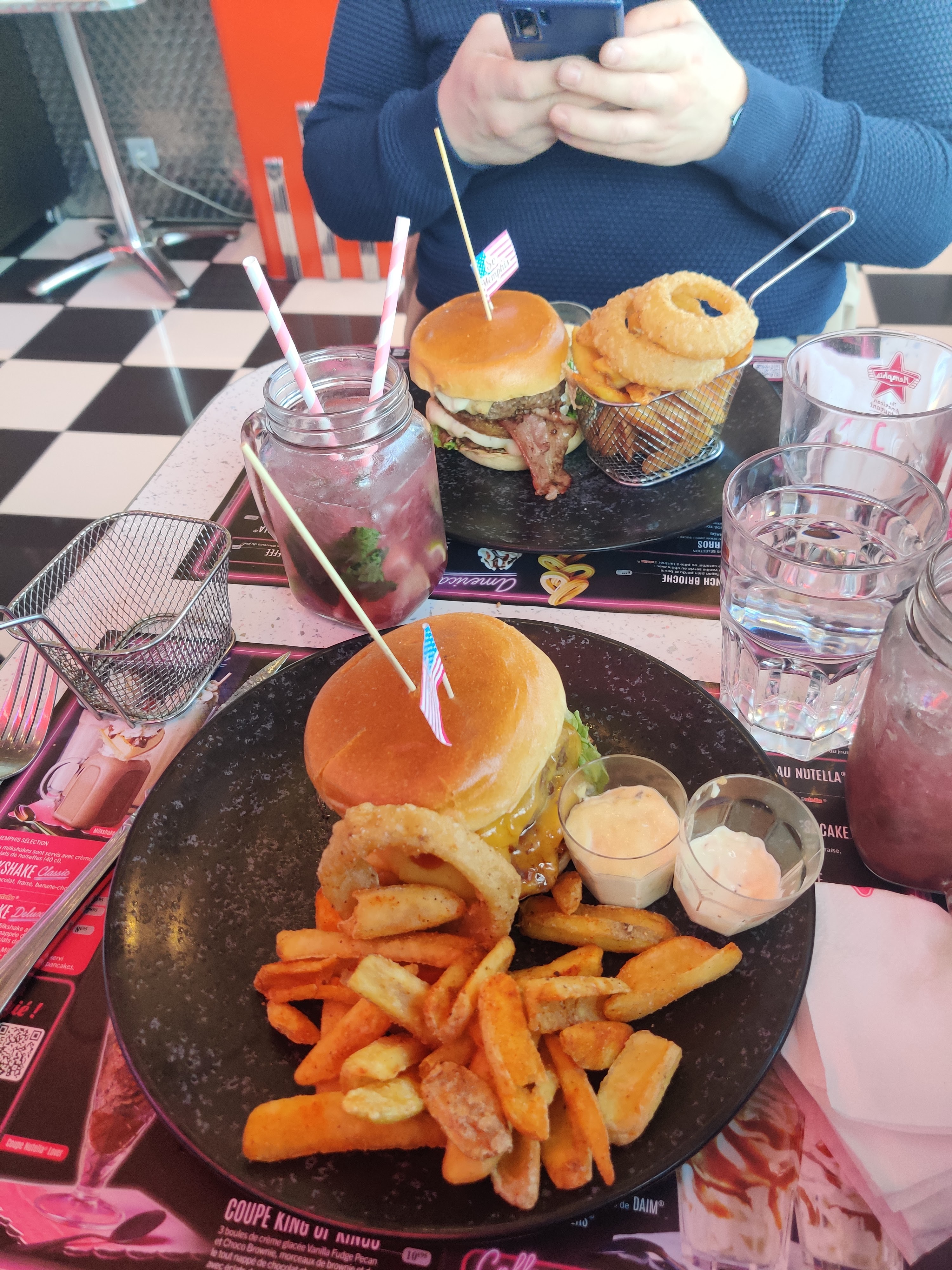 Très belle décoration américaine Beaucoup de choix à la carte Très bon accueil Le serveur Mickael très sympa et souriant Bonne cuisine et menus copieux