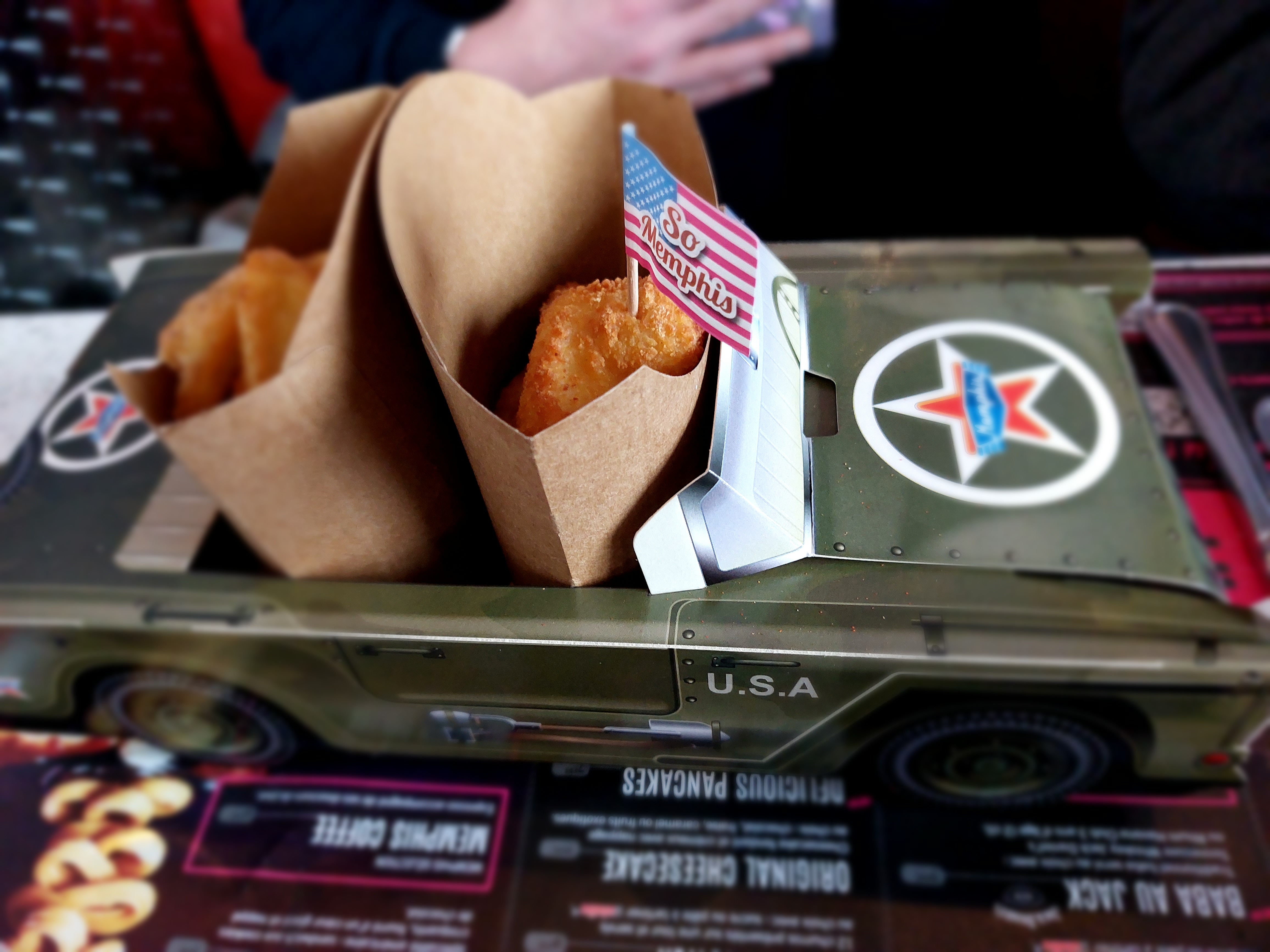 Barquette de potatoes à moitiée pleine, sur un dosage proche de 5 potatoes. Burger écrasé l’un sur l’autre pour passer dans le même sac. Pas fou. Finalement ne pas se fier au promo mais privilégier le bon. Un bar a burger…fera l’affaire ou autre commerce de burger. Mais pas ici. Dommage je connaissais memphis venant du nord sur le kinepolis. Ça c’était bien. Ici c’est pas ça …..