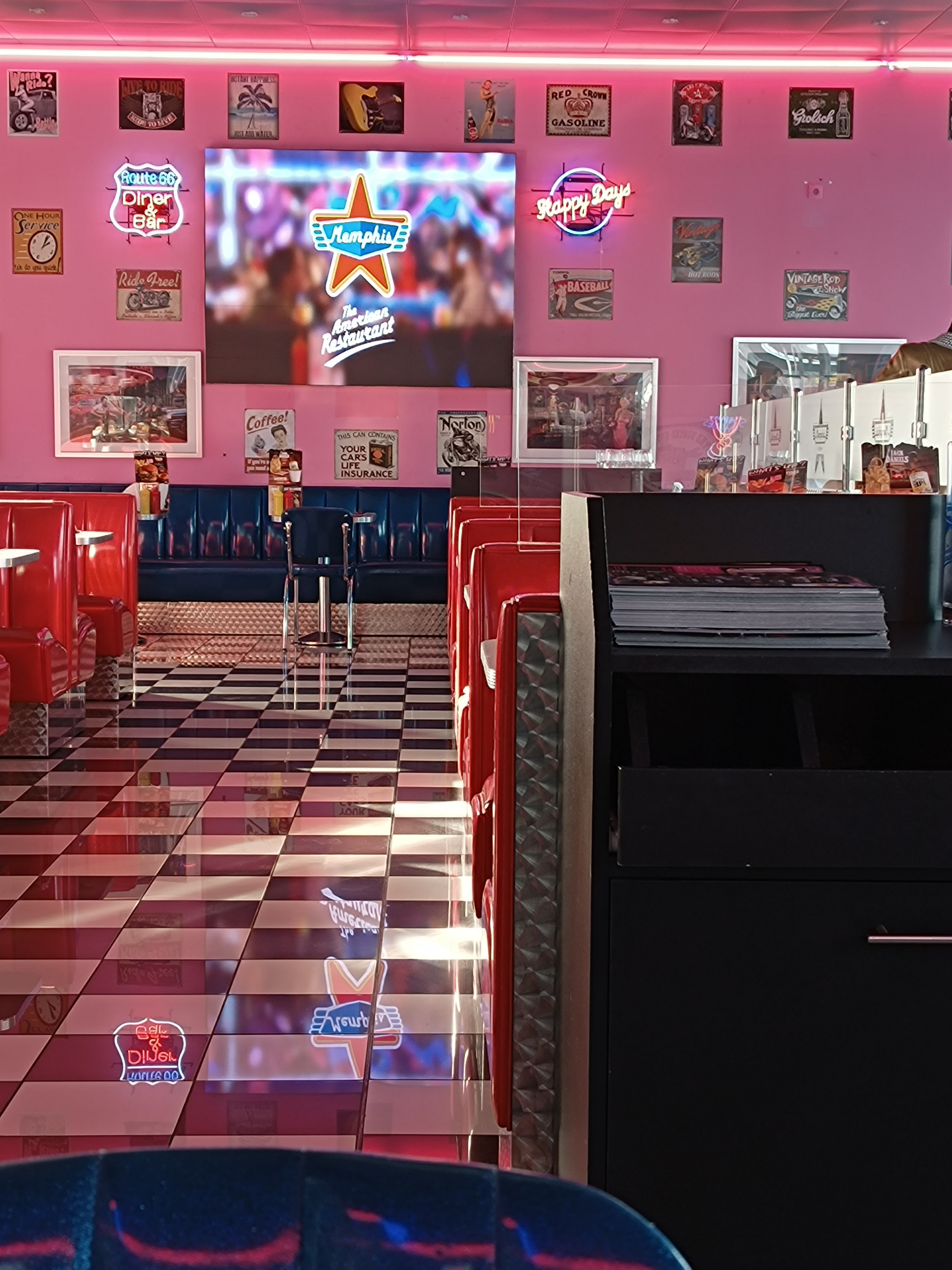 Le restaurant est très propre, l'ambiance amerique des années 60 est super avec pleins d'objet de décorations adéquate. Les plats proposés non rien a envier, ils sont typique américain et très très bon. Le seul bémol serais que la cuisson de nos viandes non pas vraiment été respectées. Le service est agréable et a été fait avec le sourire ce que je trouve très important. Par contre tout c'est bon point vaut son pesant d'argent, il faut prévoir un bon budget.