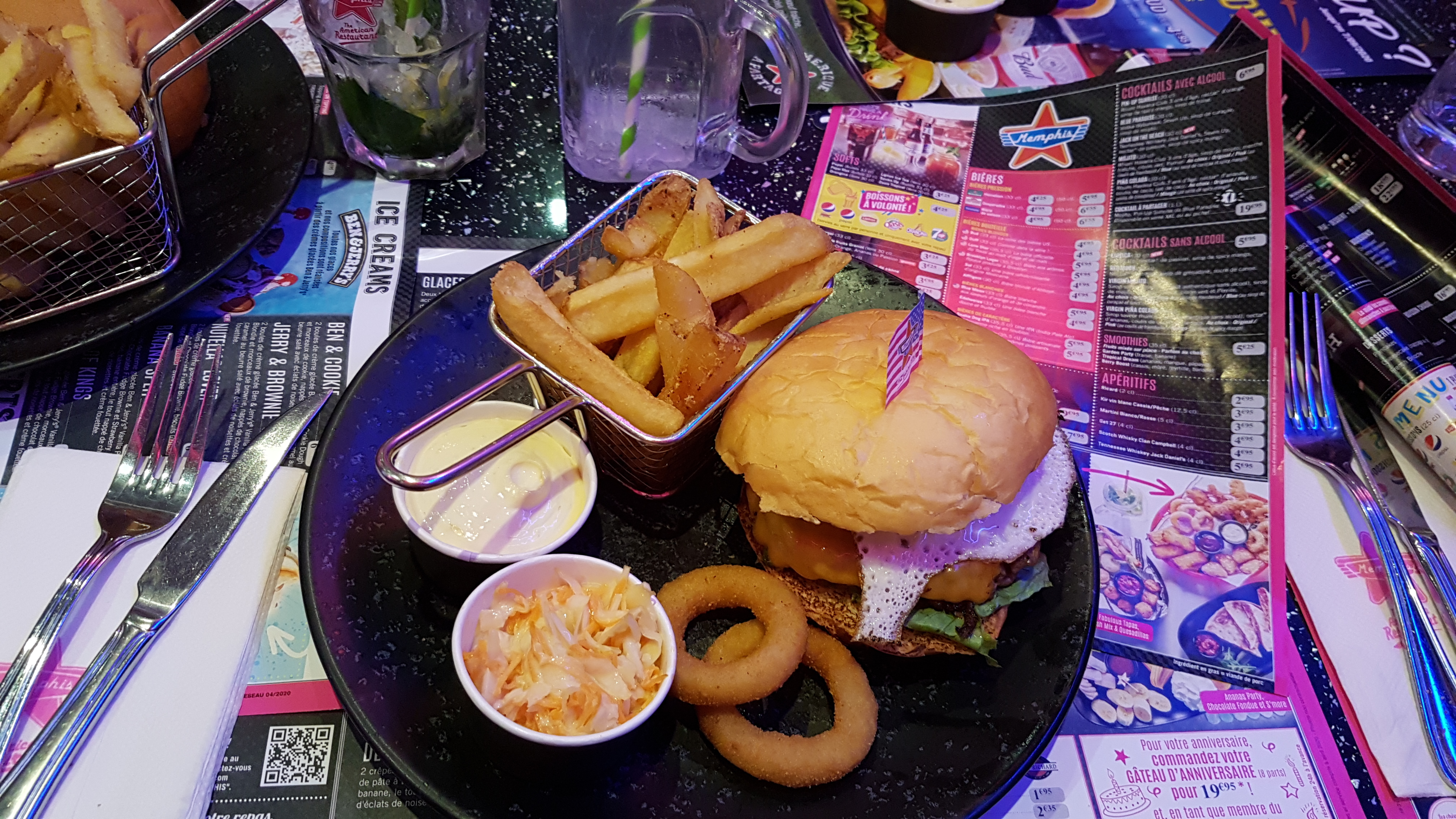 Ambiance au top, respect du port du masque et des gestes barrières. Personnel accueillant et sympathique. Repas délicieux et typique américain. Spécialités originales