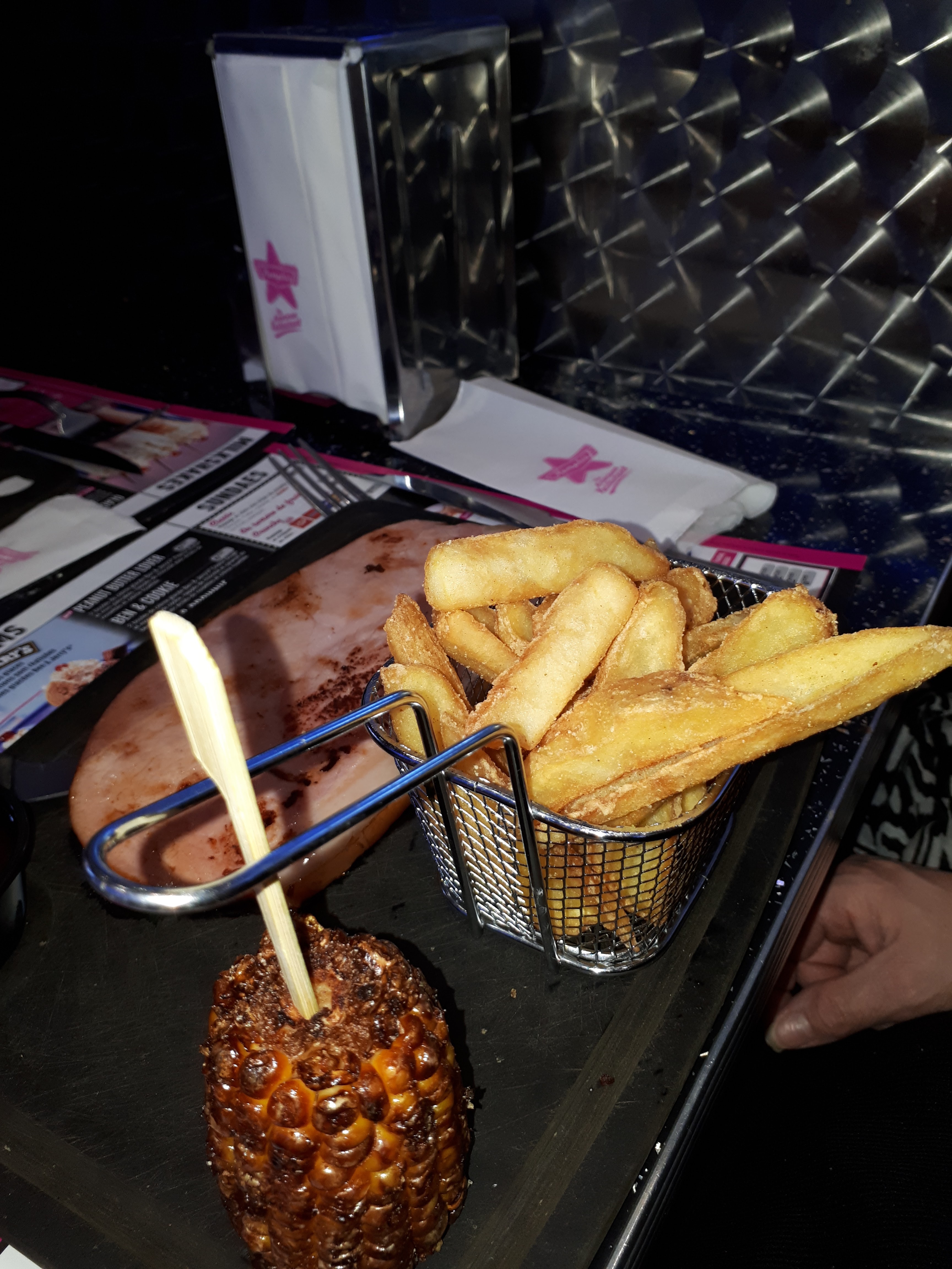 Fauteuil non aspiré donc encire plein de miettes, personnel très désagréable ( je commande une bouteille d eau et la réclame et la serveuse met en doute ma parole et ne s excuse même pas apres s être aperçue de son erreur! Pour l addition, nous avions une reduction mais nous pose la note sur la table sans reduction donc je le permets de lui signaler. C ette dernière me repond sèchement qu il faut aller au comptoir, qu elle n est pas caissière !). Certains ont commandé des ribs mais pas les 550g comme cela est noté sur la carte! Machine à sunday en panne... bref, très déçue....